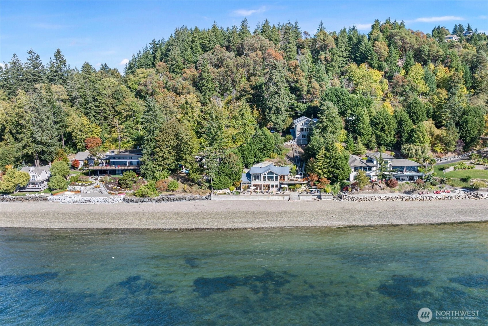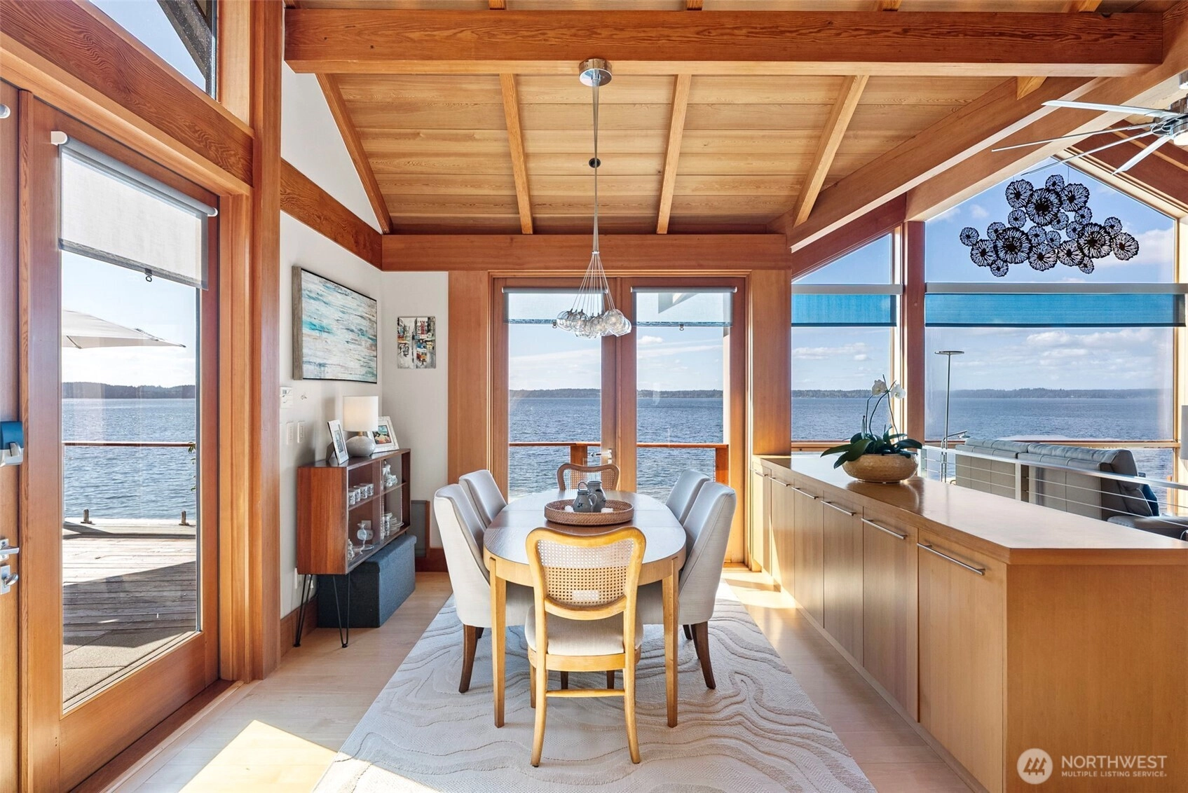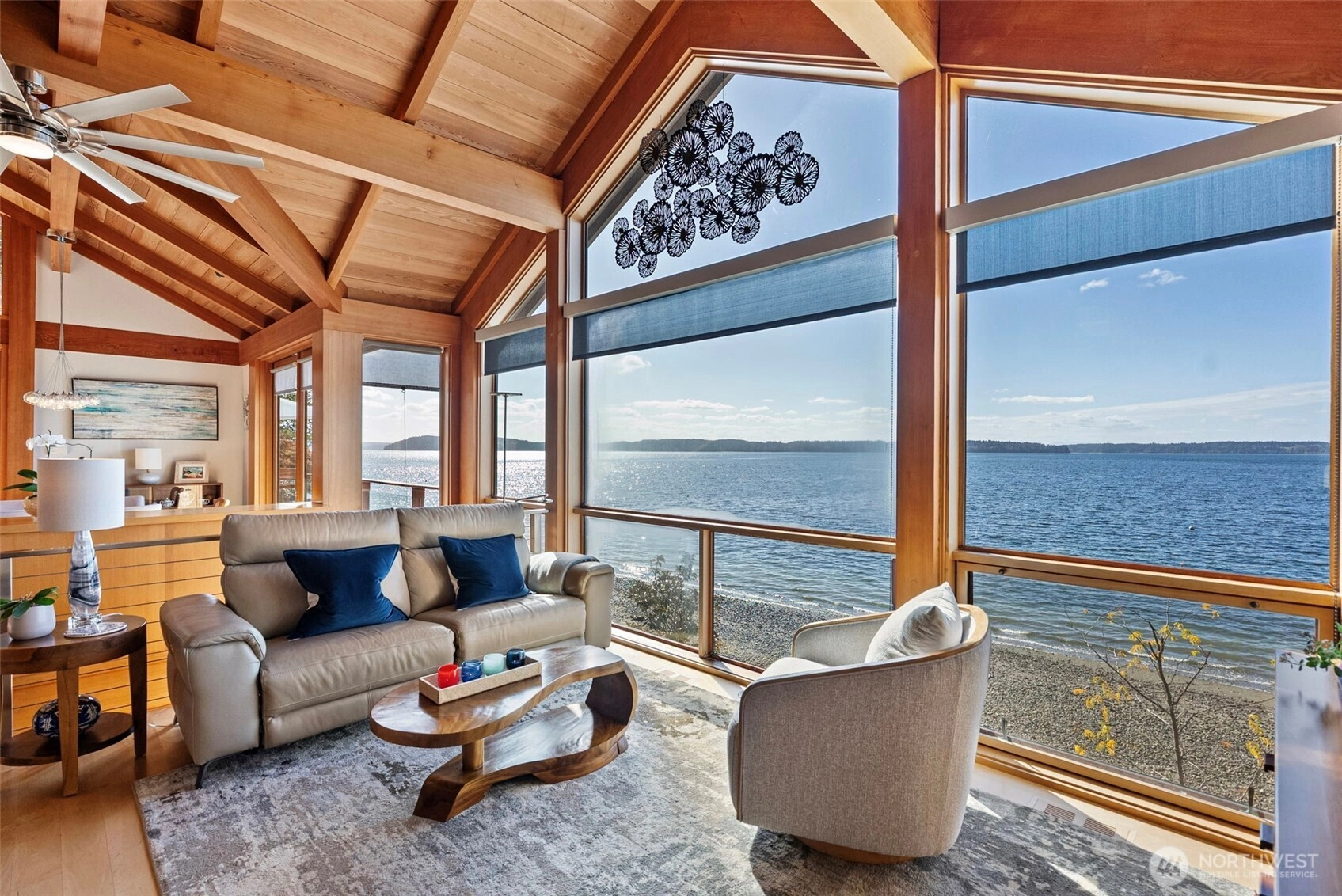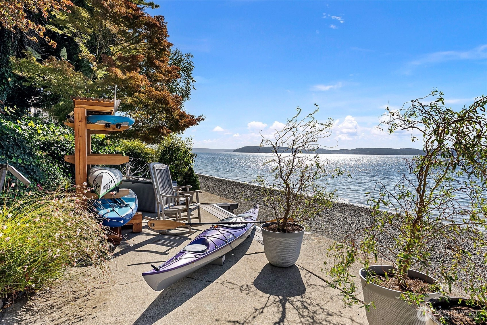 Epitome of waterfront living with panoramic water & mountain views plus year-round sunsets. 165' SW facing shoreline for boating, beach strolls, privacy & relaxation. Modern timber frame design showcases locally sourced VG Fir & river rock blending everyday life with natural beauty. View whales, eagles & sea life or entertain from sprawling waterside decks. Special features include wood-fired pizza oven, gourmet kitchen, steam shower, Murphy Bed, in-floor heating, concrete floors, tram, large garage. 1608 ft² add'l flex space for work/play includes studio loft above garage with bathroom & kitchenette. 5 miles to Uptown Gig Harbor. Arrive home via stairway or private tram where everyday life meets nature, sun & sea at your beachside resort.