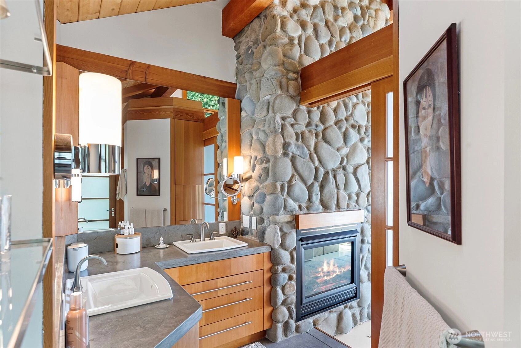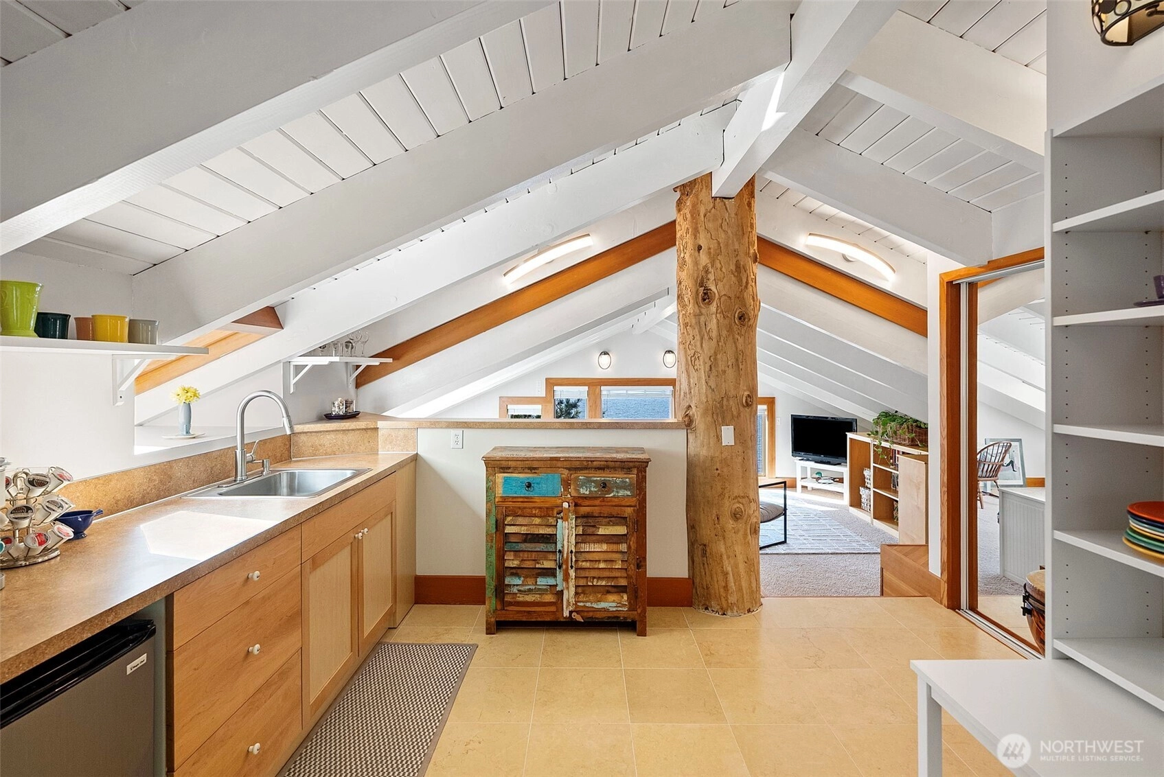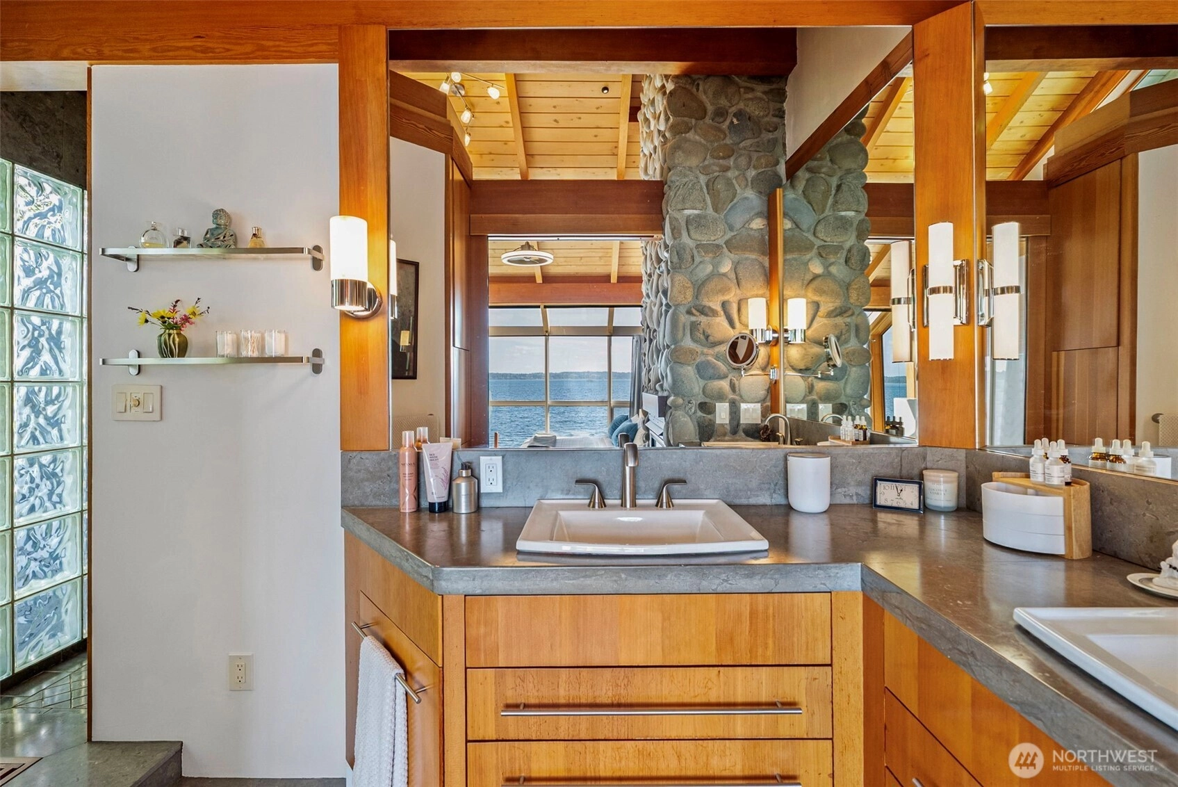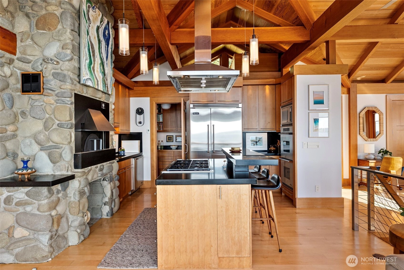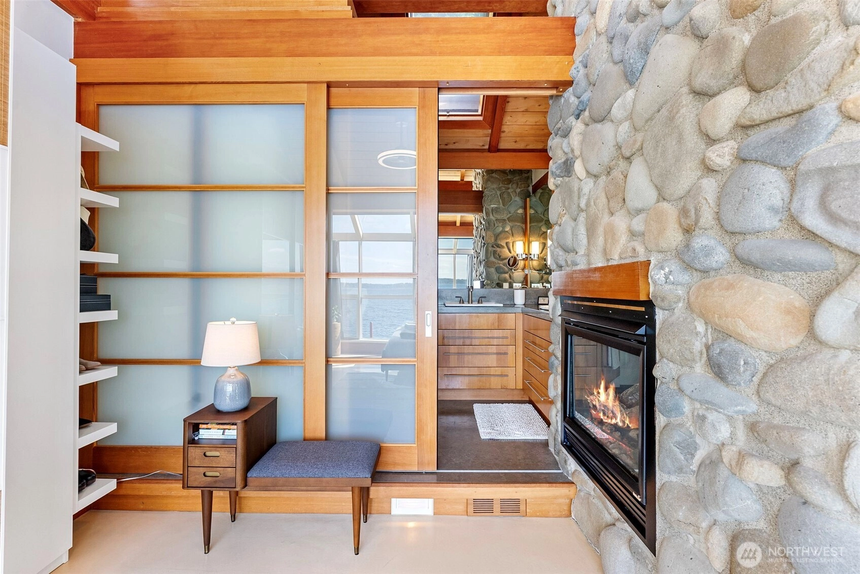 Epitome of waterfront living with panoramic water & mountain views plus year-round sunsets. 165' SW facing shoreline for boating, beach strolls, privacy & relaxation. Modern timber frame design showcases locally sourced VG Fir & river rock blending everyday life with natural beauty. View whales, eagles & sea life or entertain from sprawling waterside decks. Special features include wood-fired pizza oven, gourmet kitchen, steam shower, Murphy Bed, in-floor heating, concrete floors, tram, large garage. 1608 ft² add'l flex space for work/play includes studio loft above garage with bathroom & kitchenette. 5 miles to Uptown Gig Harbor. Arrive home via stairway or private tram where everyday life meets nature, sun & sea at your beachside resort.