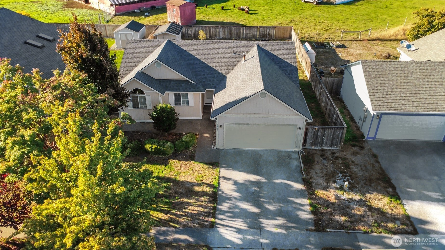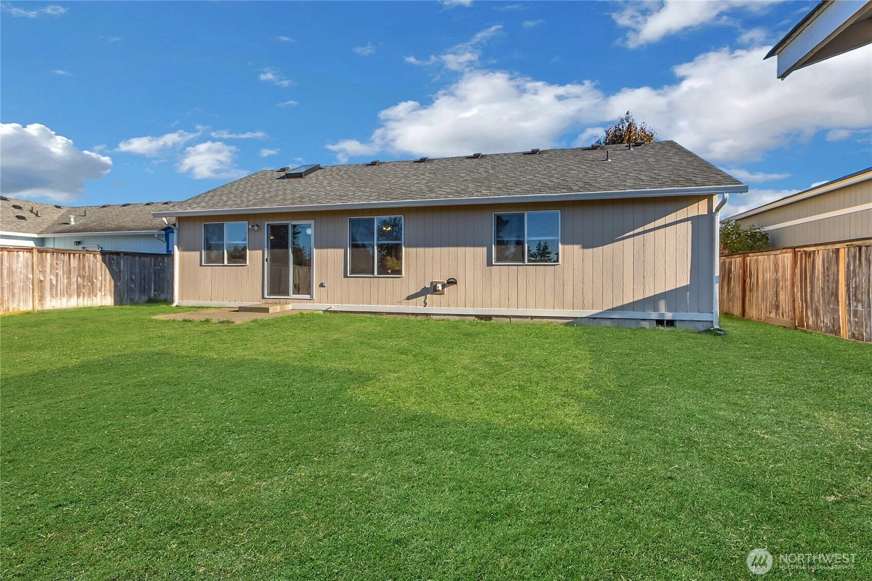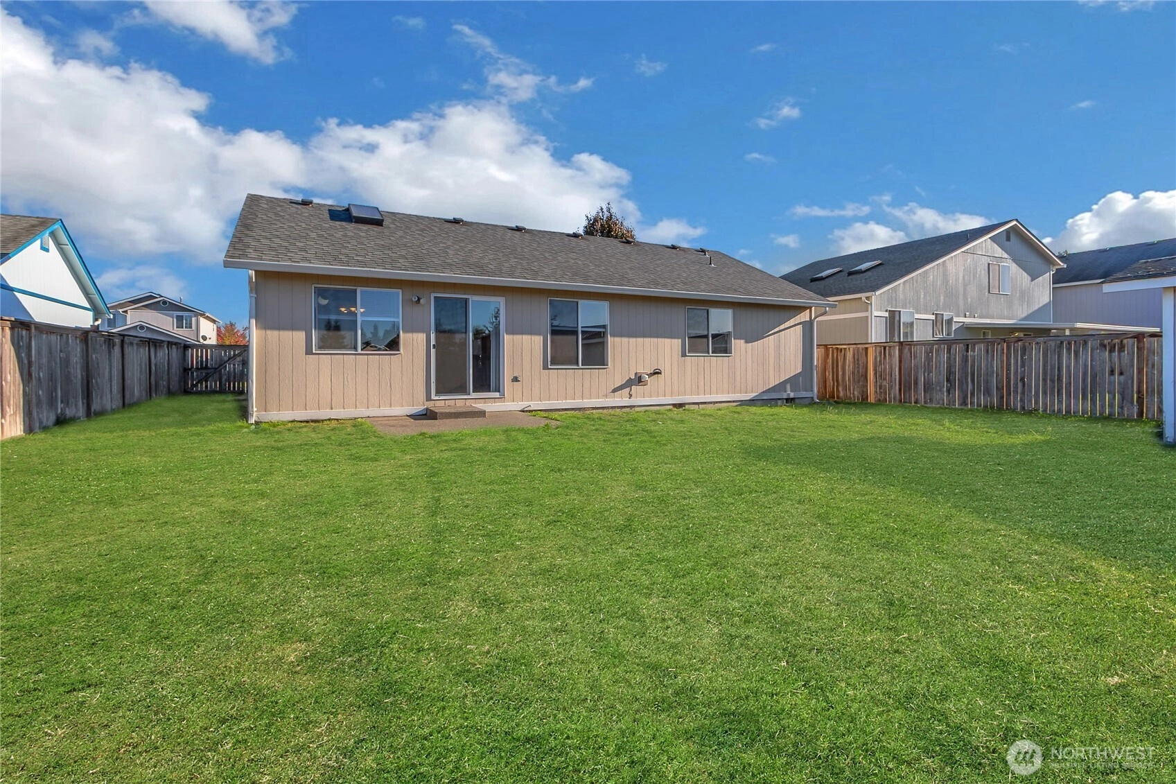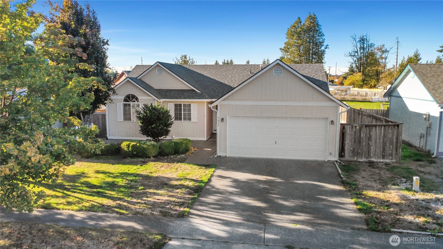 Move-in ready and perfectly situated in the heart of Yelm! This warm and comfortable 3-bedroom, 2-bath rambler offers a welcoming open floor plan filled with natural light, vaulted ceilings, and a skylight that enhances the airy feel. Enjoy peace of mind with a newer roof (2017) and brand-new carpet throughout. The spacious primary suite includes a walk-in closet and full bath. Step outside to a fully fenced backyard with a handy storage shed—ideal for relaxing, gardening, or play. Tucked away on a quiet cul-de-sac and conveniently located less than a mile from Fort Stevens Elementary, shopping, dining, and entertainment, with an easy commute to JBLM. Embrace small-town charm with big-city access—just 30–40 minutes to Olympia or Tacoma!