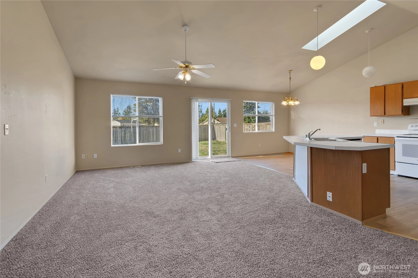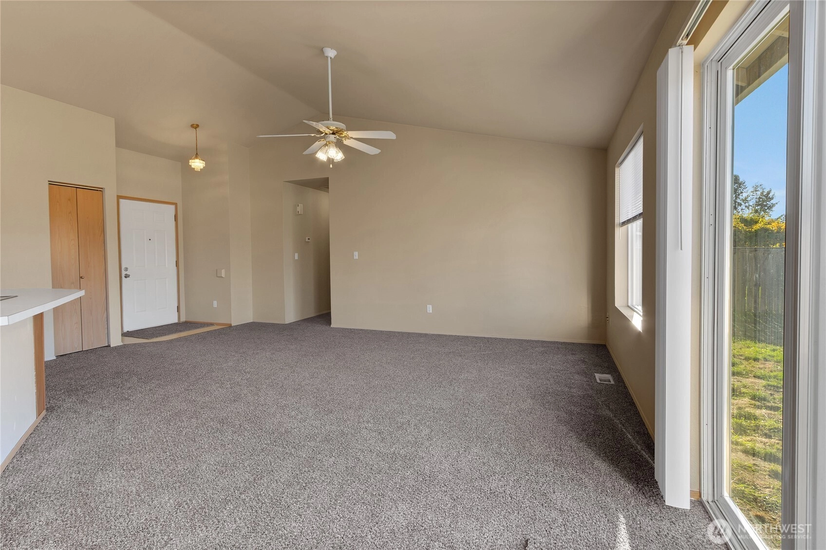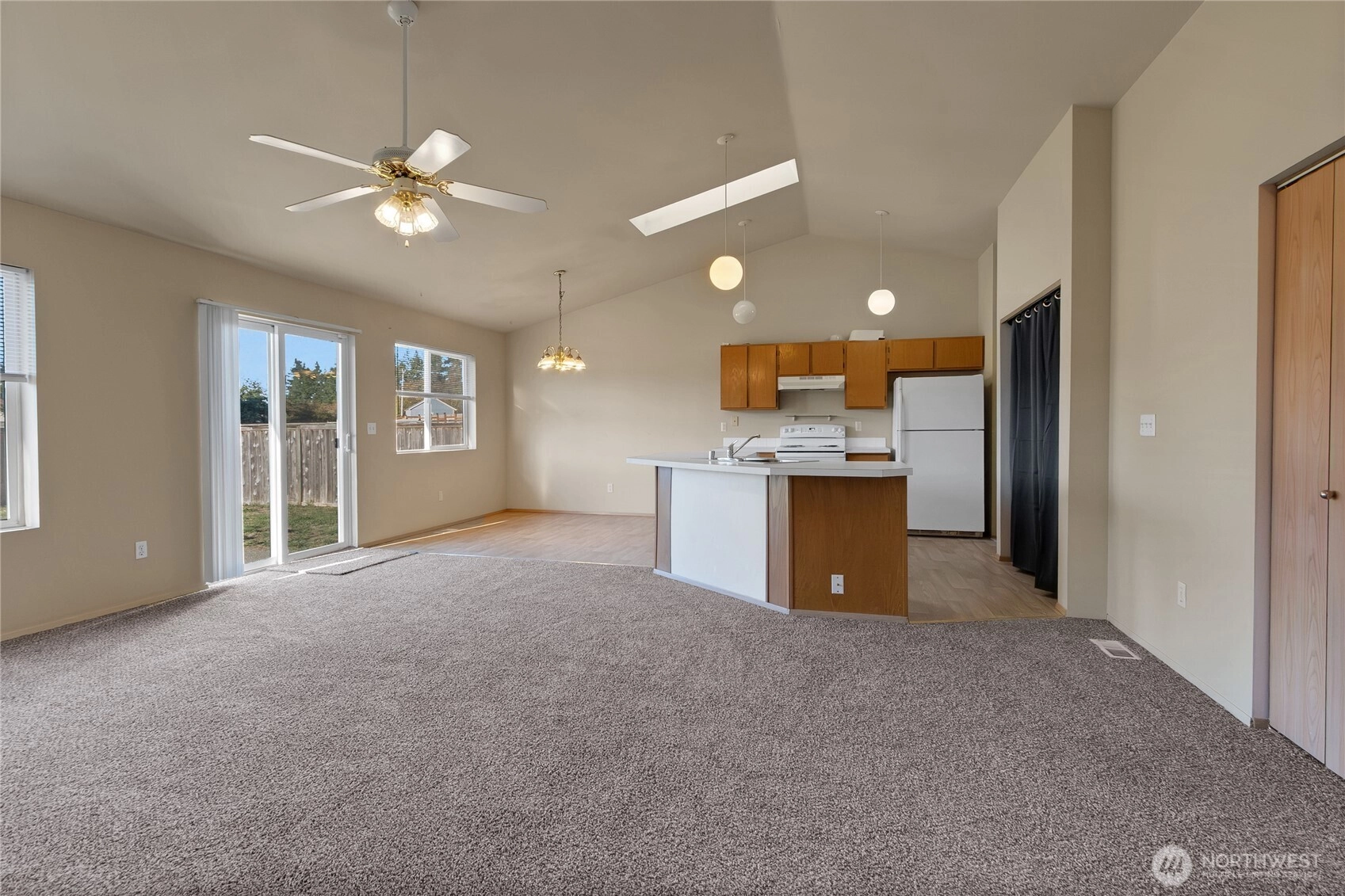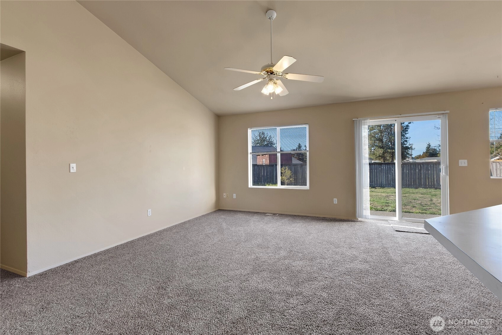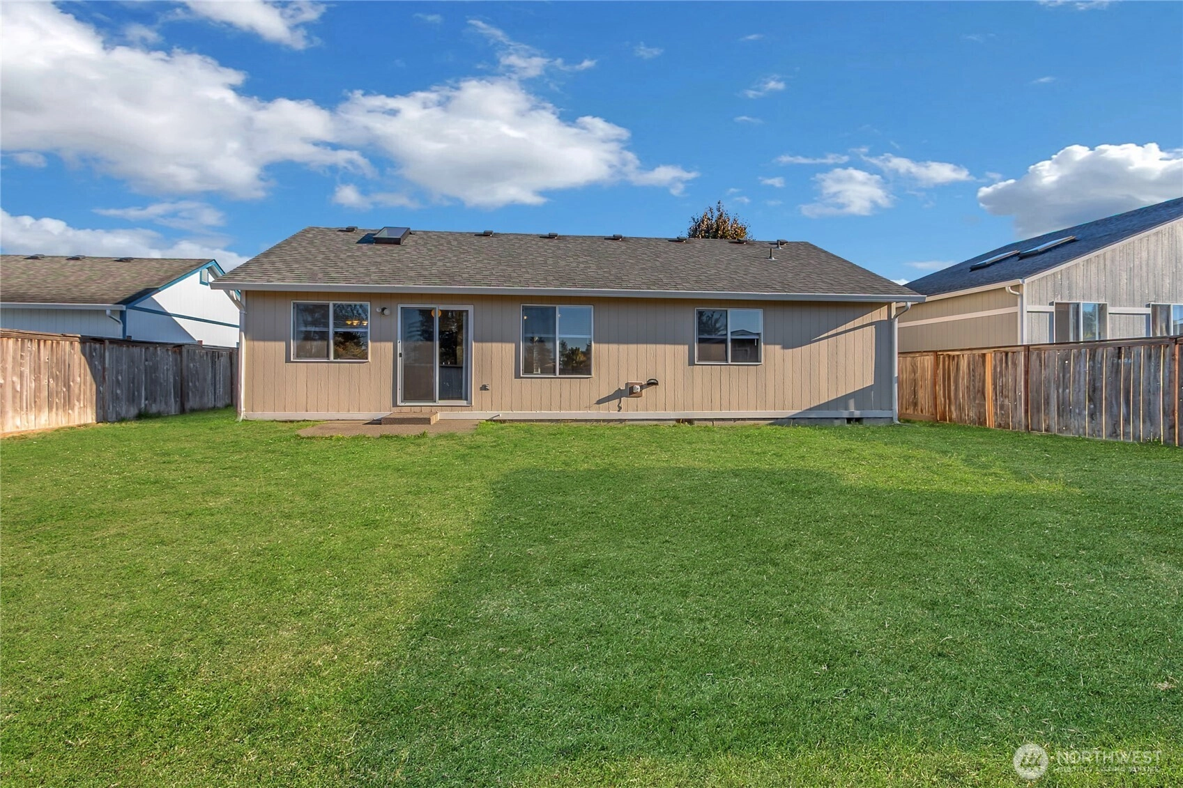 Move-in ready and perfectly situated in the heart of Yelm! This warm and comfortable 3-bedroom, 2-bath rambler offers a welcoming open floor plan filled with natural light, vaulted ceilings, and a skylight that enhances the airy feel. Enjoy peace of mind with a newer roof (2017) and brand-new carpet throughout. The spacious primary suite includes a walk-in closet and full bath. Step outside to a fully fenced backyard with a handy storage shed—ideal for relaxing, gardening, or play. Tucked away on a quiet cul-de-sac and conveniently located less than a mile from Fort Stevens Elementary, shopping, dining, and entertainment, with an easy commute to JBLM. Embrace small-town charm with big-city access—just 30–40 minutes to Olympia or Tacoma!