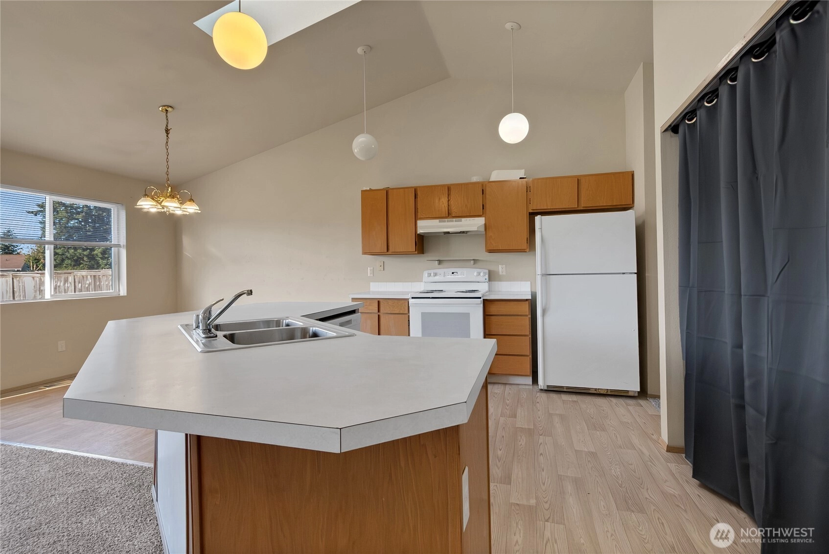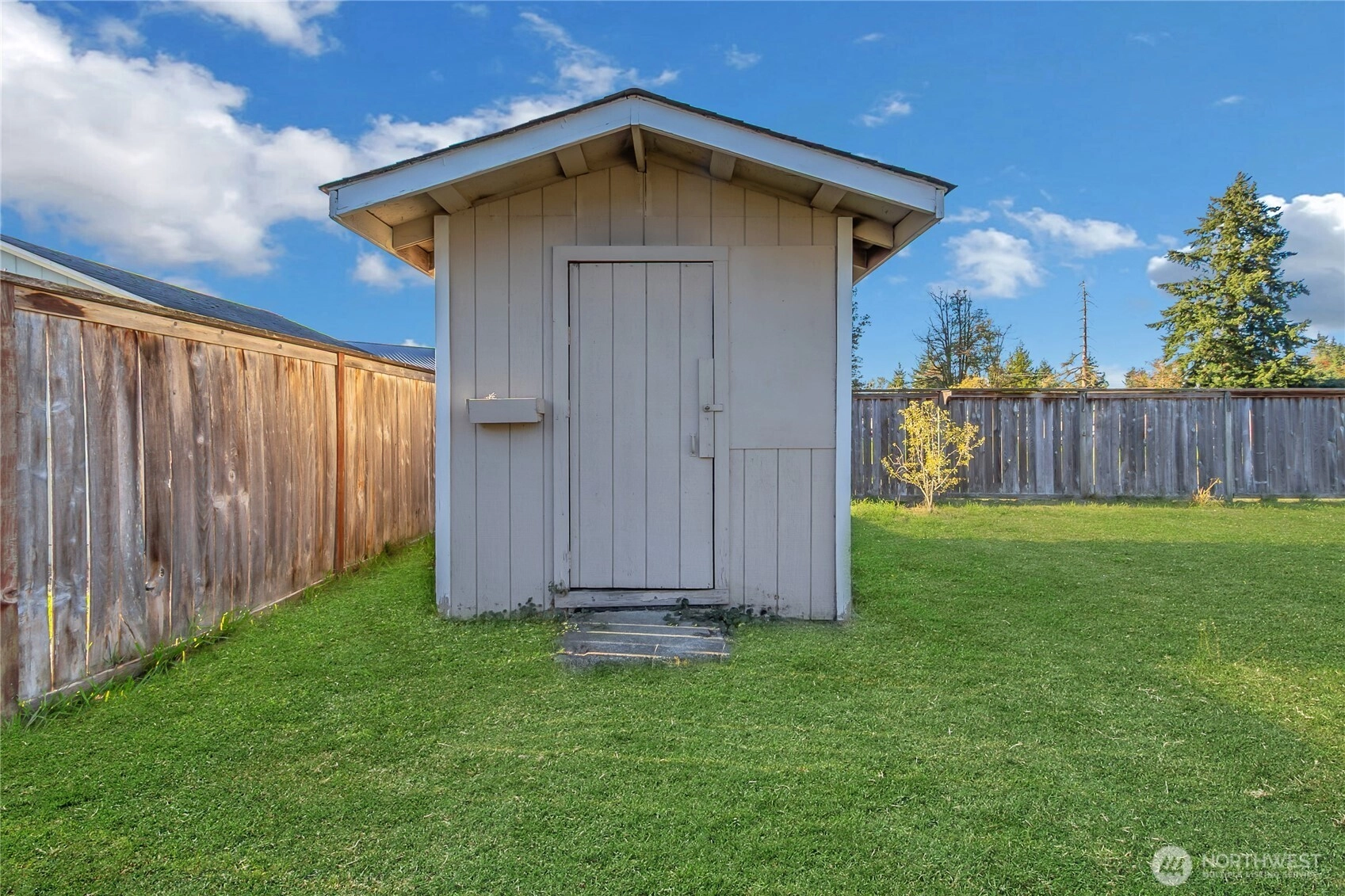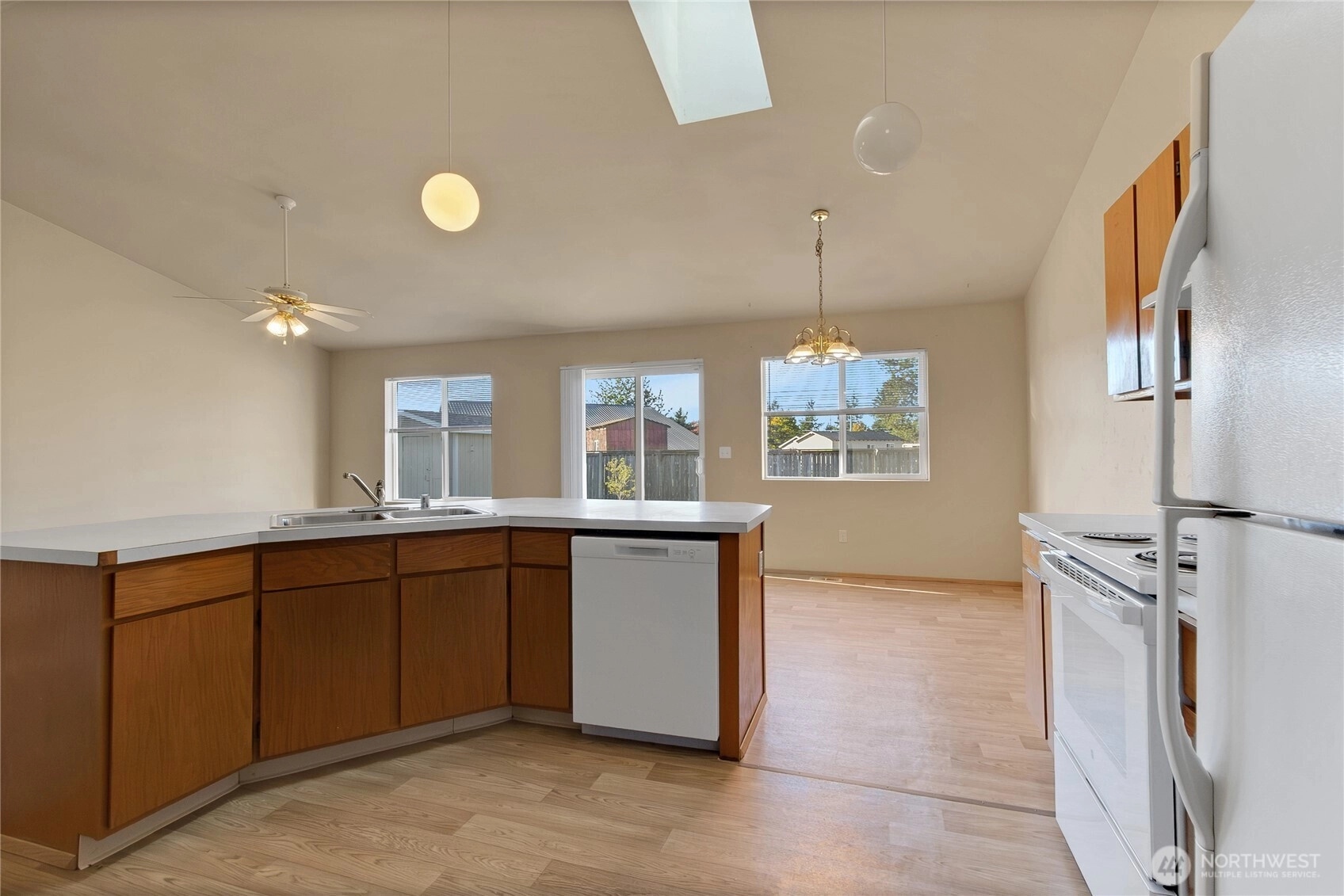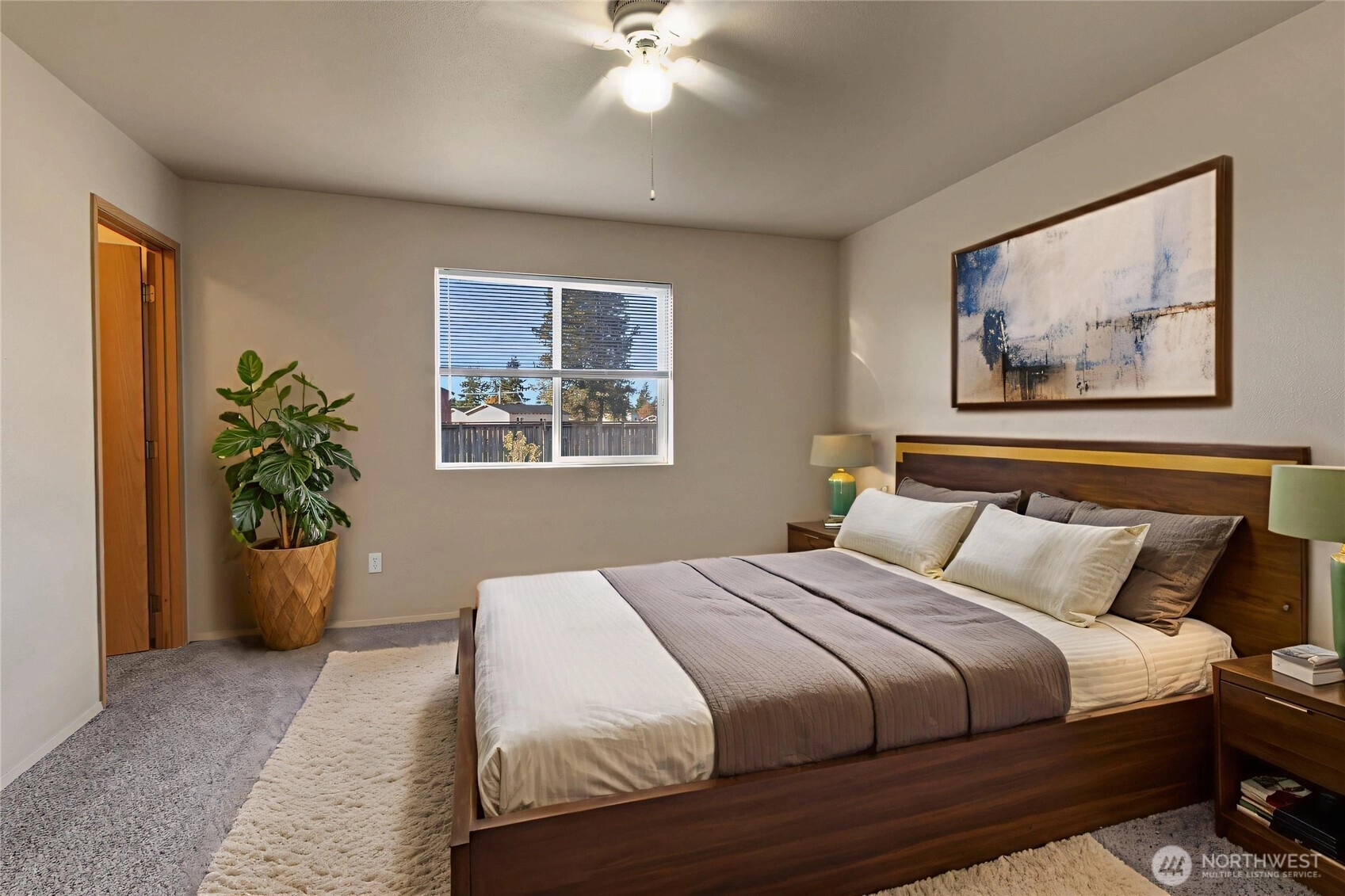 Move-in ready and perfectly situated in the heart of Yelm! This warm and comfortable 3-bedroom, 2-bath rambler offers a welcoming open floor plan filled with natural light, vaulted ceilings, and a skylight that enhances the airy feel. Enjoy peace of mind with a newer roof (2017) and brand-new carpet throughout. The spacious primary suite includes a walk-in closet and full bath. Step outside to a fully fenced backyard with a handy storage shed—ideal for relaxing, gardening, or play. Tucked away on a quiet cul-de-sac and conveniently located less than a mile from Fort Stevens Elementary, shopping, dining, and entertainment, with an easy commute to JBLM. Embrace small-town charm with big-city access—just 30–40 minutes to Olympia or Tacoma!