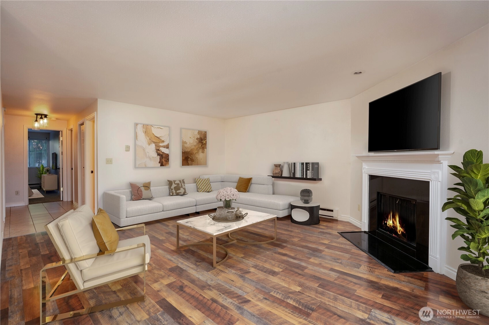 Lovely, convenient, and affordable! This beautifully maintained condo offers stylish laminate hardwood floors, modern fixtures, and welcoming open layout. You'll love the spacious primary suite, dedicated laundry room, and private balcony with bonus storage closet. Also features a private tandem garage along with extra finished room for storage space. Enjoy the many amenities of the fabulous Sunset Plaza community—including a pool, tennis court, clubhouse, gym, and more! The location can’t be beat—right next to War Memorial Park and just blocks from Geiger Montessori, Pao’s Donuts, and quick SR-16 access for an easy, breezy commute. Gated entry adds peace of mind, and HOA dues include water, sewer, garbage!