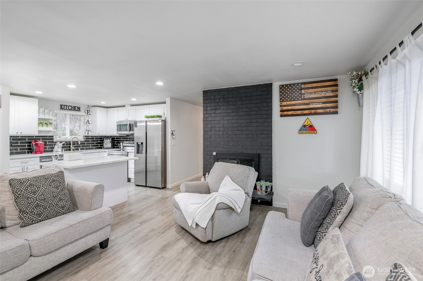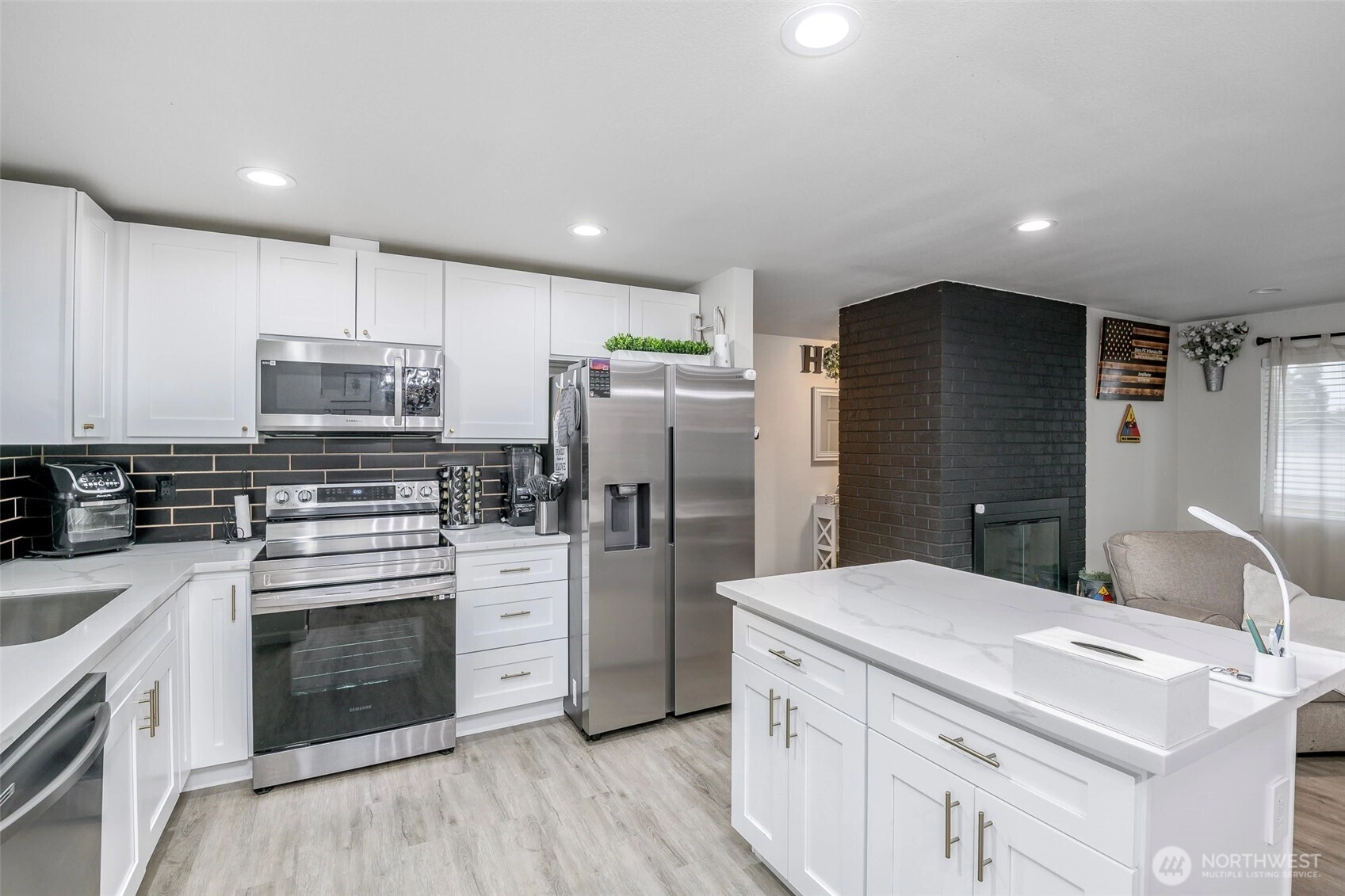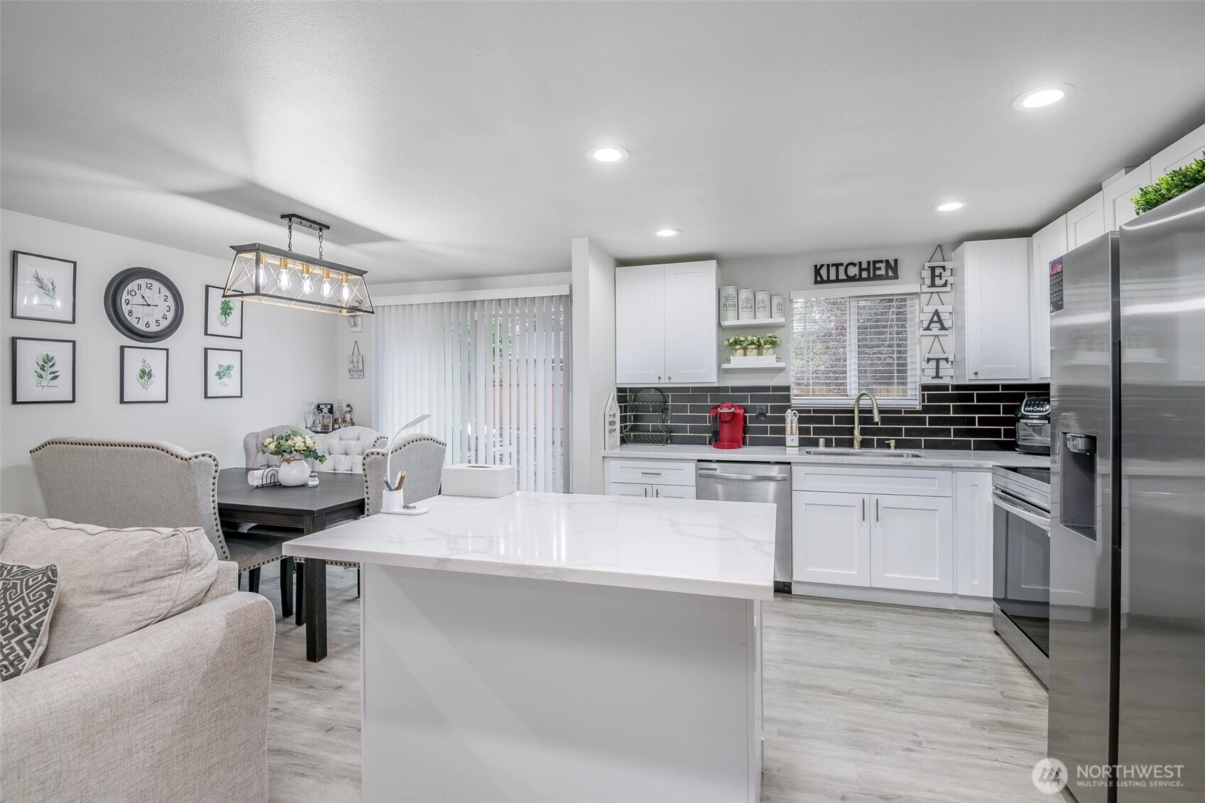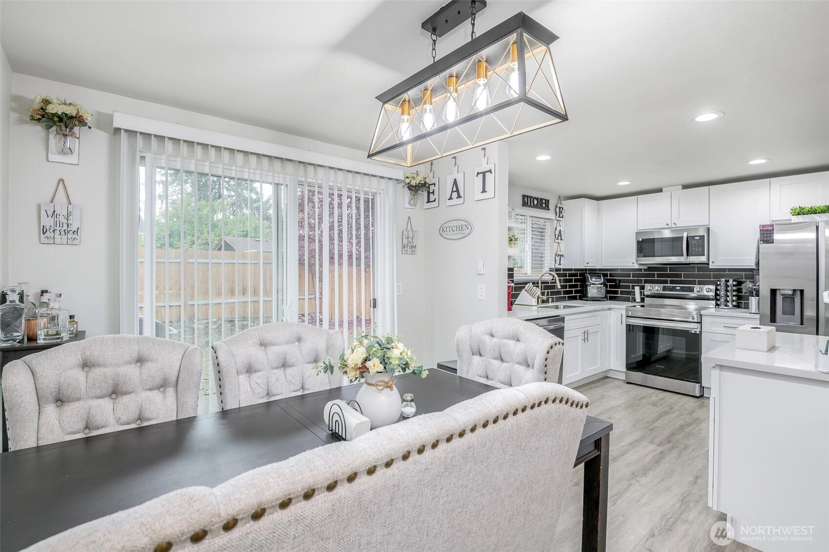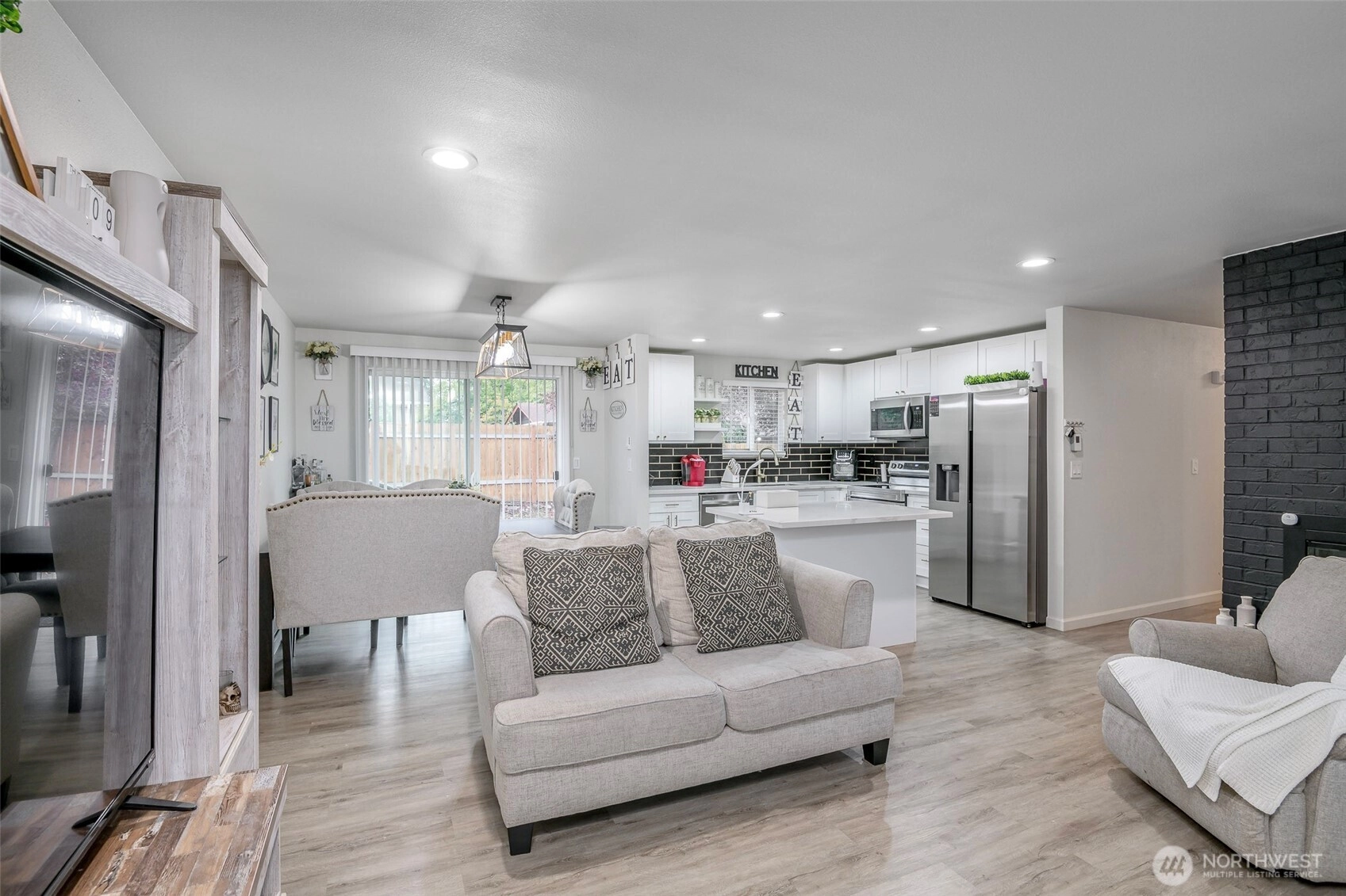 Beautifully remodeled 3 bedroom one story home! Walk inside to this light & bright open concept living with island kitchen, newer cabinets, quartz countertops, stainless steel appliances, gorgeous fireplace, newer flooring and a dining room right off the kitchen! Spacious living area for entertaining, good size secondary bedrooms, nice size primary & a beautifully updated bathroom! Outside features a large fully fenced yard, 2 car garage & RV parking! Convenient commute to JBLM, schools, parks & shopping with NO HOA! This home has it all - don't miss this one!