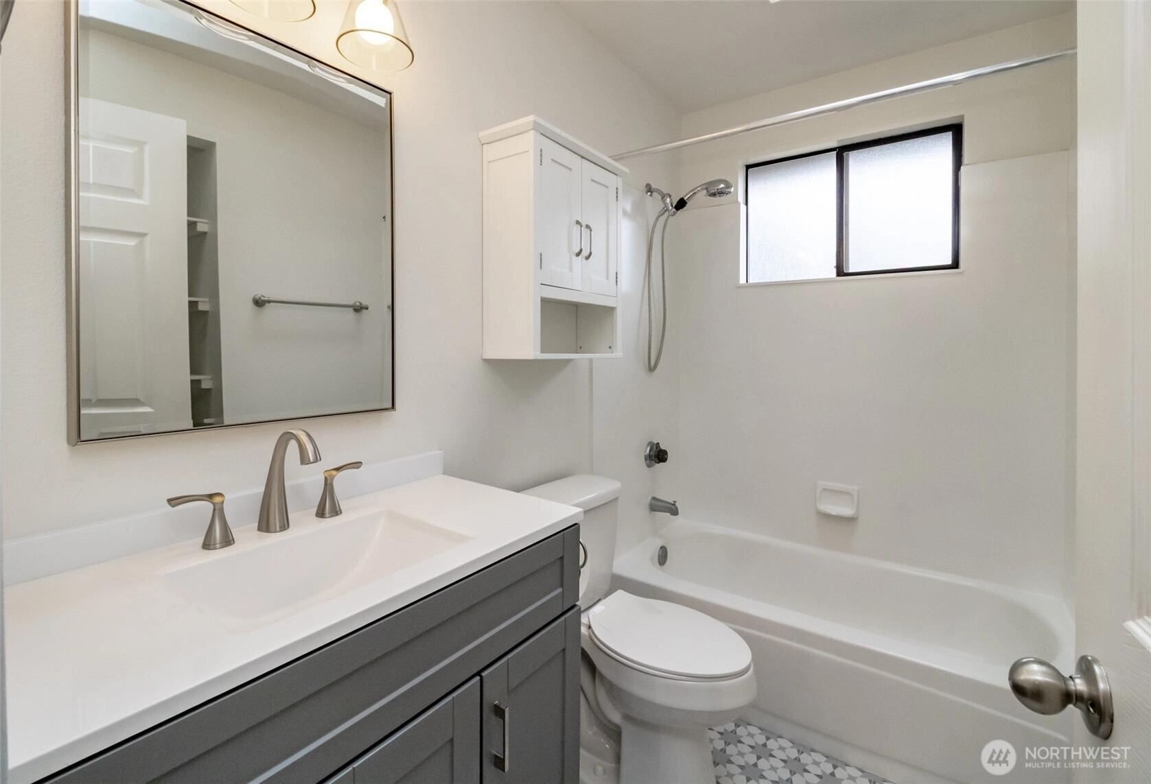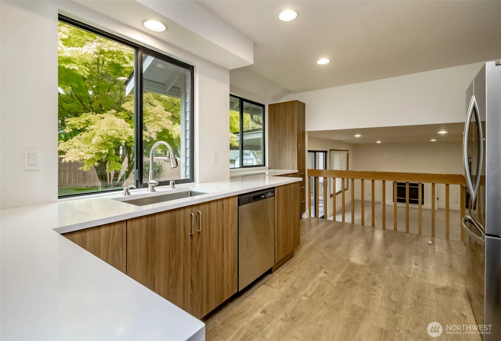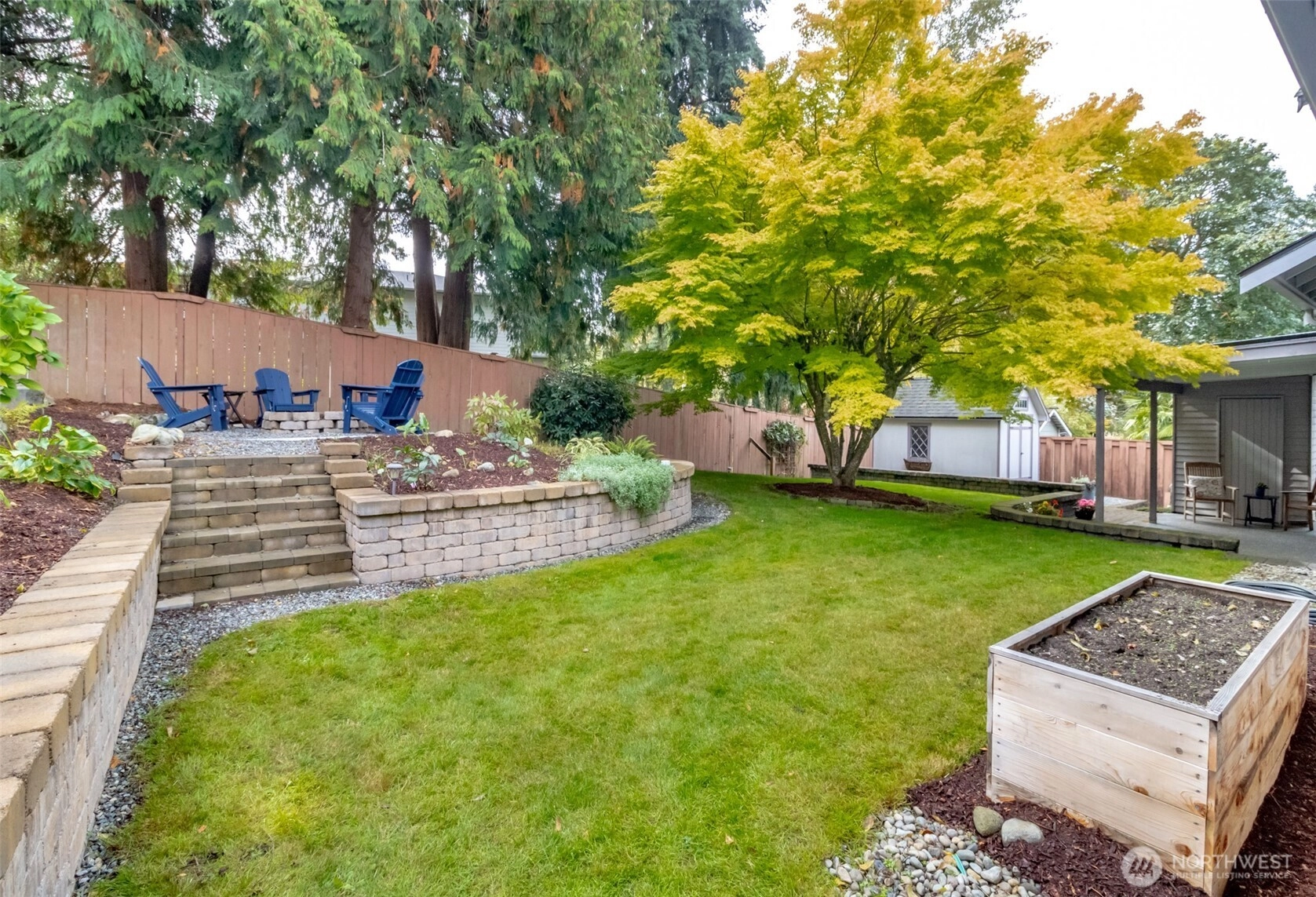 Nicely updated tri-level with modern touches throughout. Move-in ready with soaring ceilings accenting the large living and dining areas. Kitchen remodel in 2024. Primary bedroom highlighted by a large ¾ bath ensuite and spacious walk-in closet. Flexible floorplan offers a guest bedroom and full bath on the lower level. All bedrooms with closet systems. New water heater. Vinyl plank flooring, 50-year architectural roof. Private backyard features covered patio, mature landscaping, firepit for cozy evenings, garden shed, fig and blueberry bushes - perfect retreat for entertaining, BBQs and relaxation. Located on quiet cul-de-sac in desirable Sterling Park, a great find for your next home!