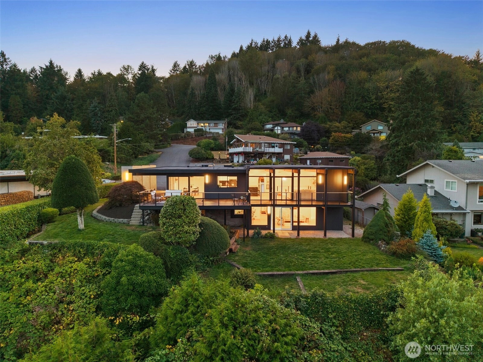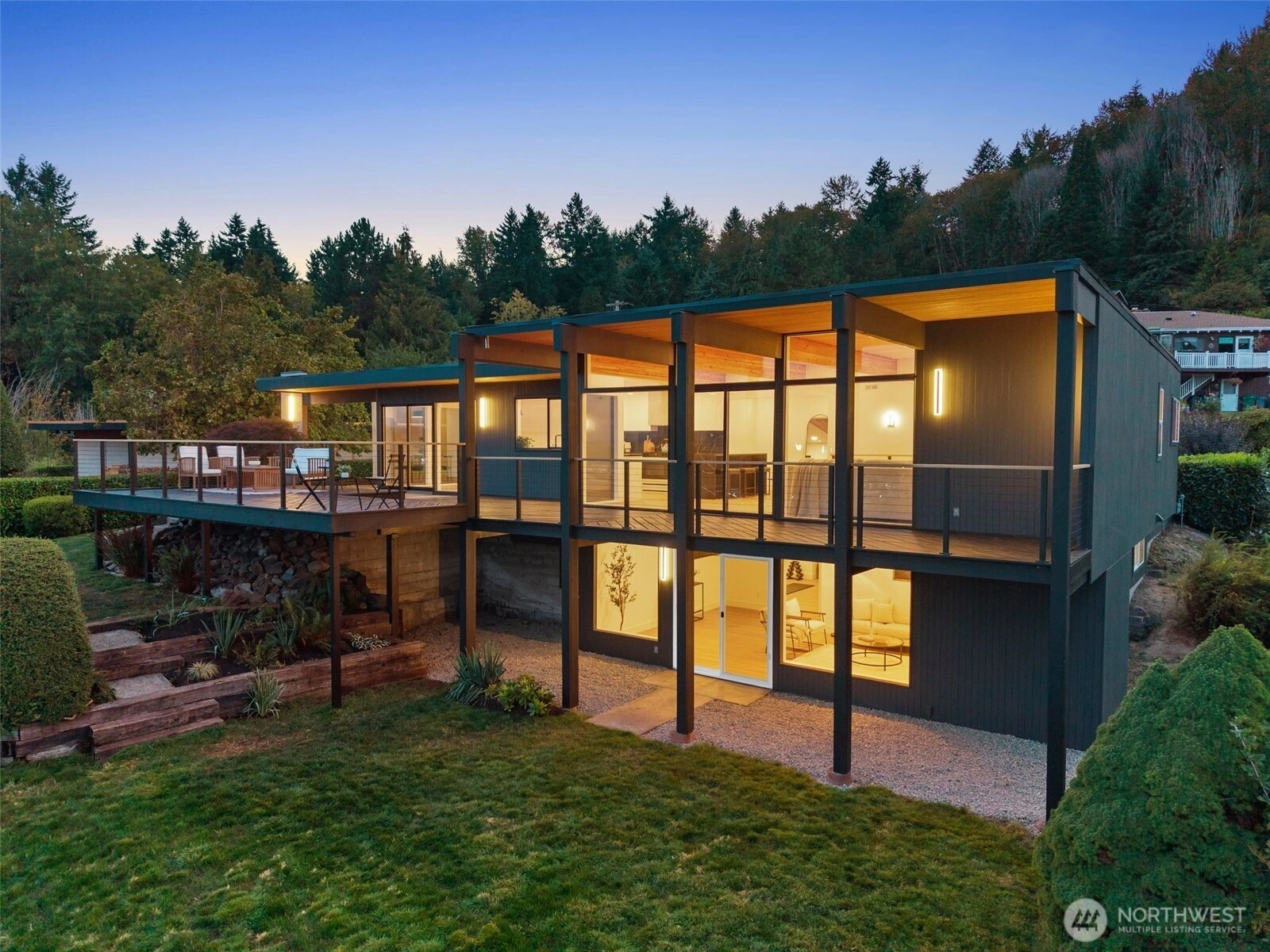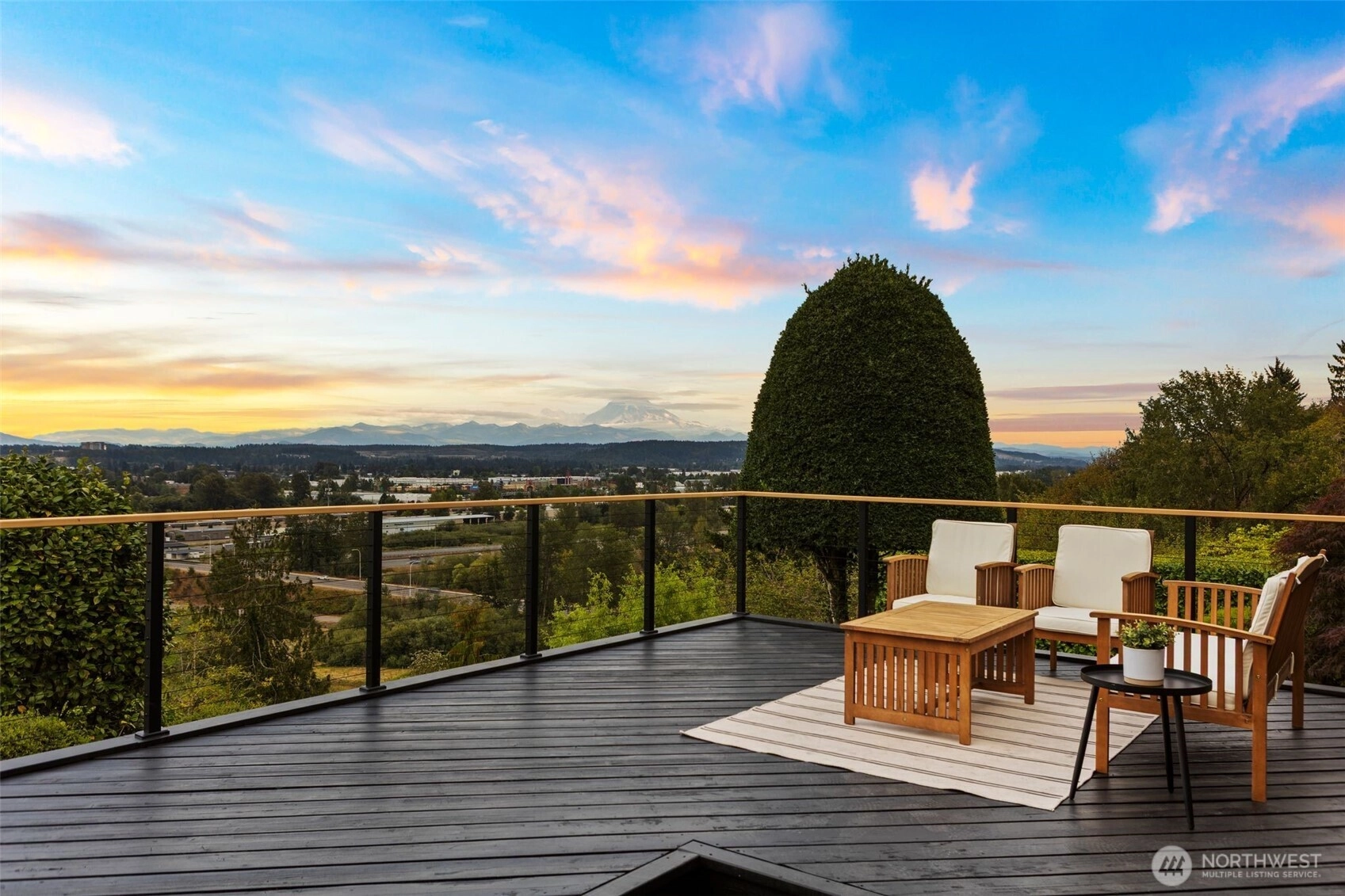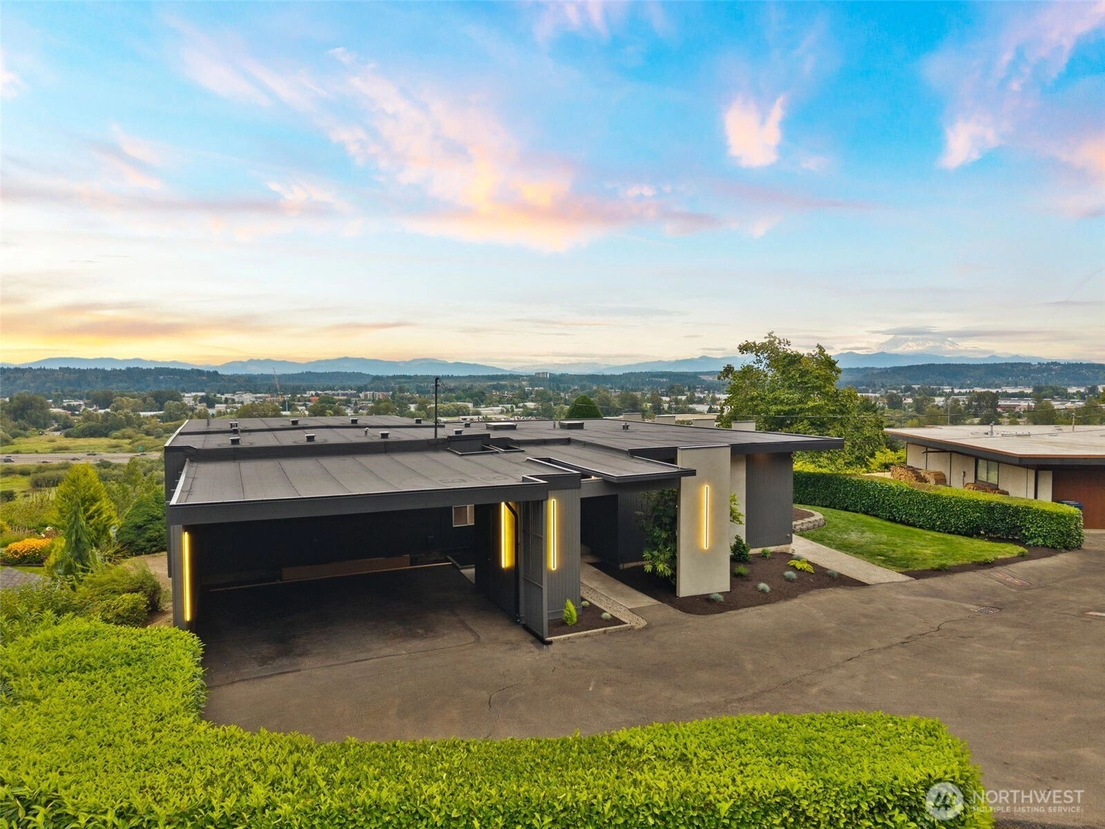 Introducing a rare mid century modern estate perched atop Hi Crest. A reimagined architectural masterpiece with panoramic views of the valley, Cascades and Rainier. Step through covered wood porches with symmetrical columns. Expansive windows and a natural palette of colors curate the perfect blend for the PNW lifestyle. Chefs kitchen features minimalist cabinetry, quartz countertops, and large peninsula. The spacious deck is ideal for entertaining or relaxing with mountain vistas. Main floor features kitchen, dining room, family room, a master bed with en-suite bath, 2 beds & a full bath. Basement features an additional bed, great room w/ bar, large laundry & space for a home gym. This residence is designed to live inspired and impress.