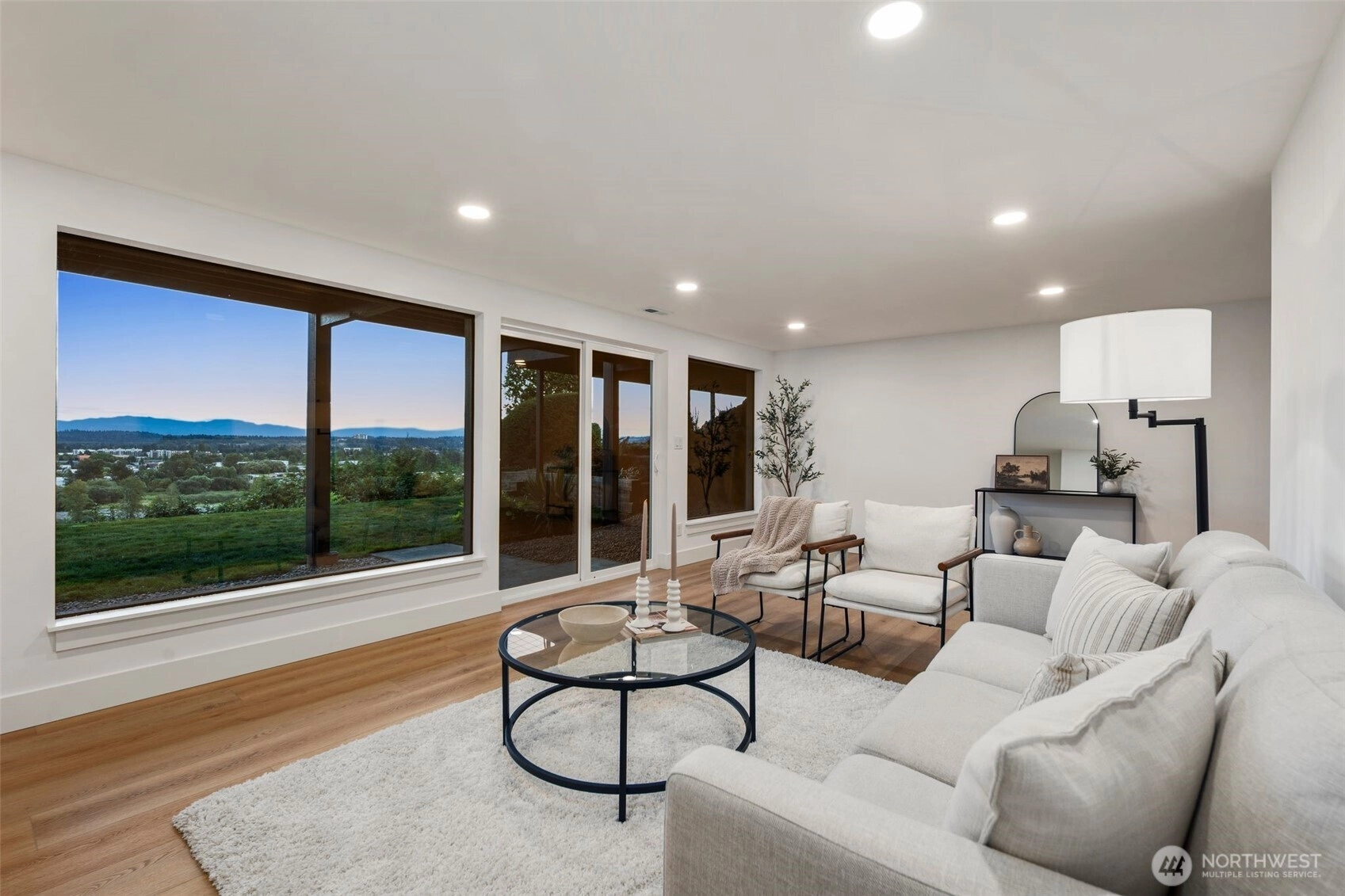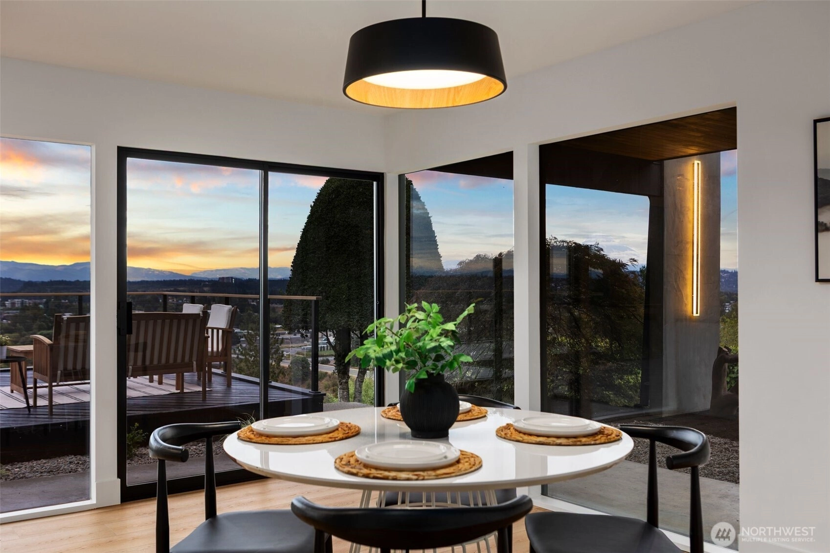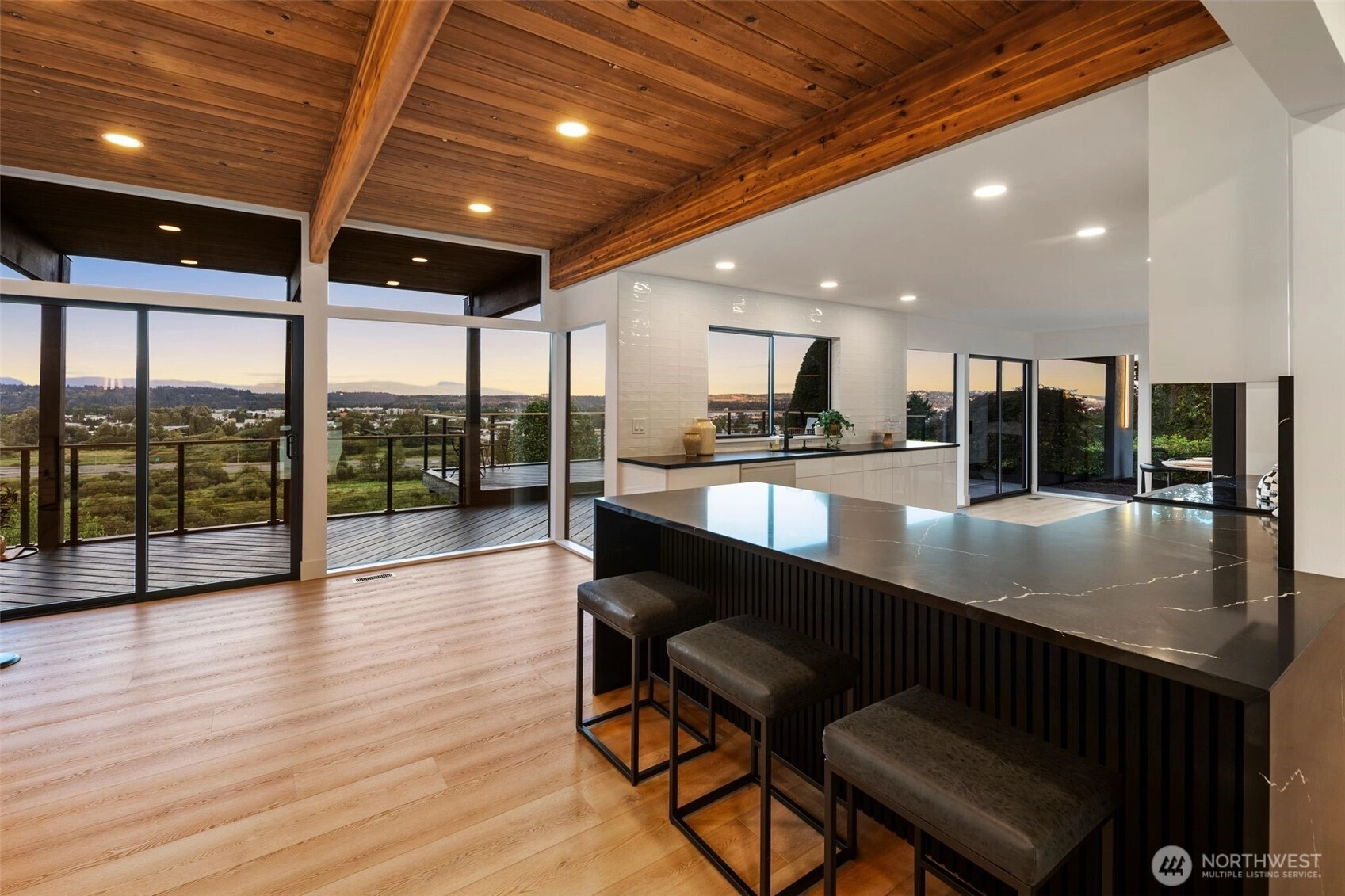 Introducing a rare mid century modern estate perched atop Hi Crest. A reimagined architectural masterpiece with panoramic views of the valley, Cascades and Rainier. Step through covered wood porches with symmetrical columns. Expansive windows and a natural palette of colors curate the perfect blend for the PNW lifestyle. Chefs kitchen features minimalist cabinetry, quartz countertops, and large peninsula. The spacious deck is ideal for entertaining or relaxing with mountain vistas. Main floor features kitchen, dining room, family room, a master bed with en-suite bath, 2 beds & a full bath. Basement features an additional bed, great room w/ bar, large laundry & space for a home gym. This residence is designed to live inspired and impress.