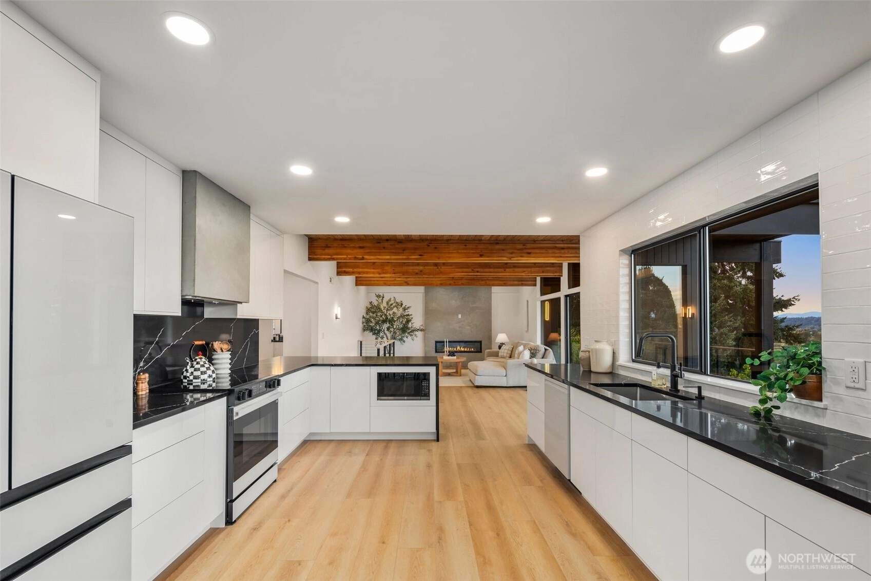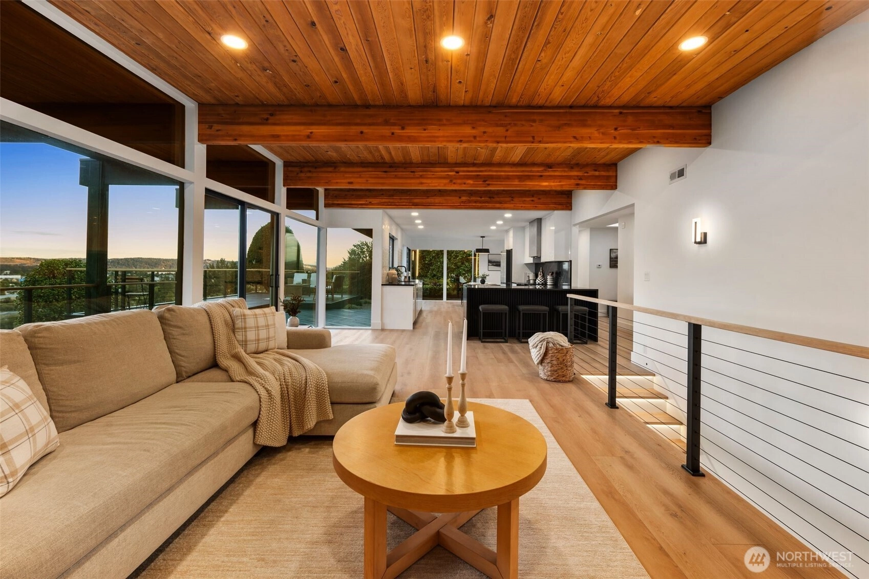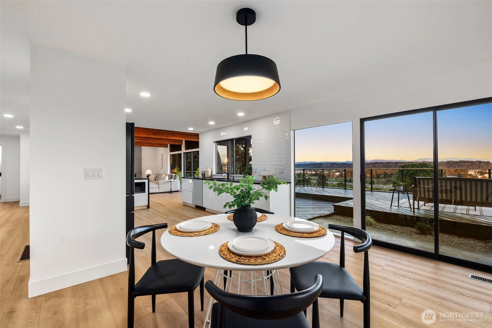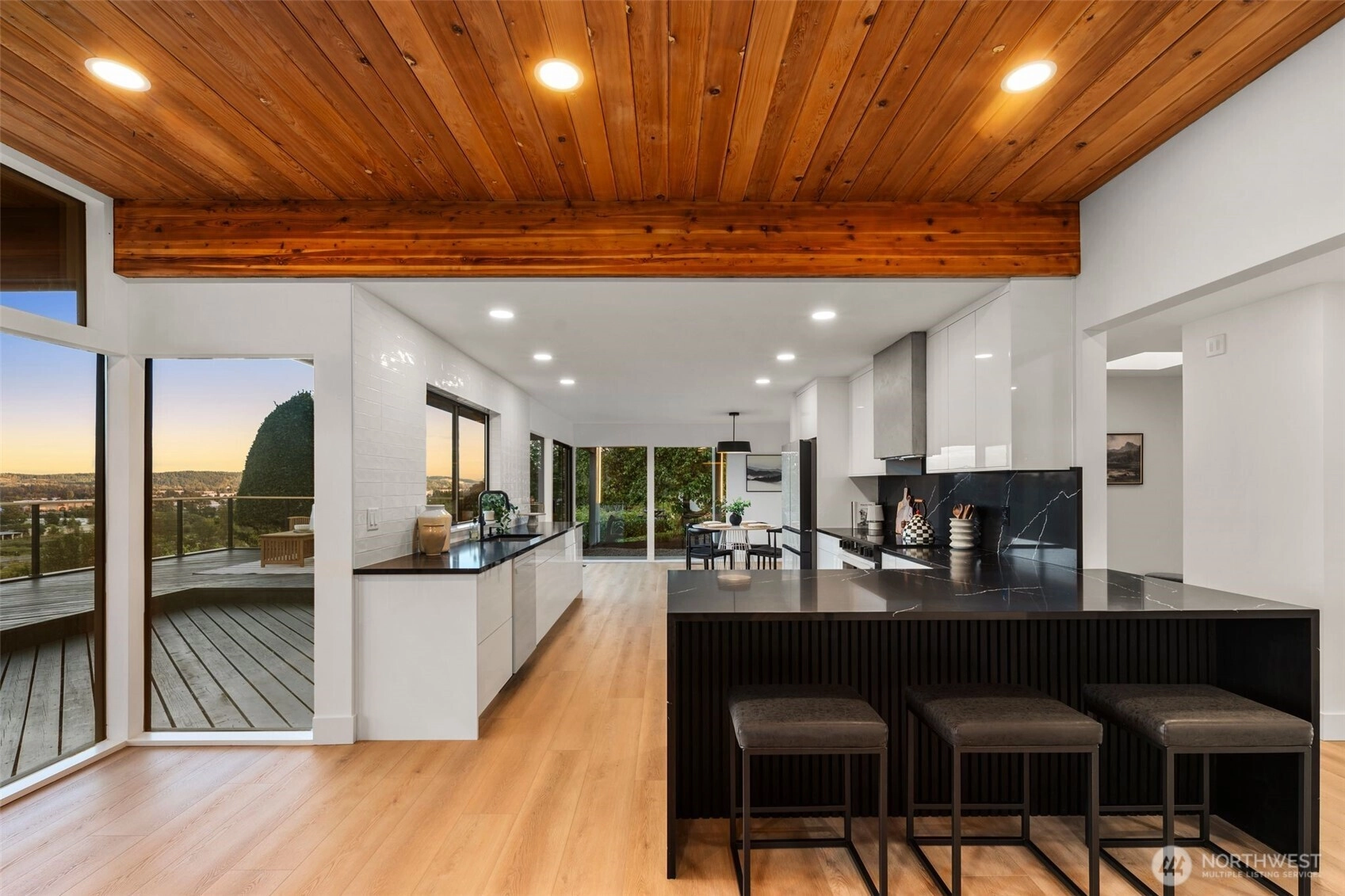 Introducing a rare mid century modern estate perched atop Hi Crest. A reimagined architectural masterpiece with panoramic views of the valley, Cascades and Rainier. Step through covered wood porches with symmetrical columns. Expansive windows and a natural palette of colors curate the perfect blend for the PNW lifestyle. Chefs kitchen features minimalist cabinetry, quartz countertops, and large peninsula. The spacious deck is ideal for entertaining or relaxing with mountain vistas. Main floor features kitchen, dining room, family room, a master bed with en-suite bath, 2 beds & a full bath. Basement features an additional bed, great room w/ bar, large laundry & space for a home gym. This residence is designed to live inspired and impress.