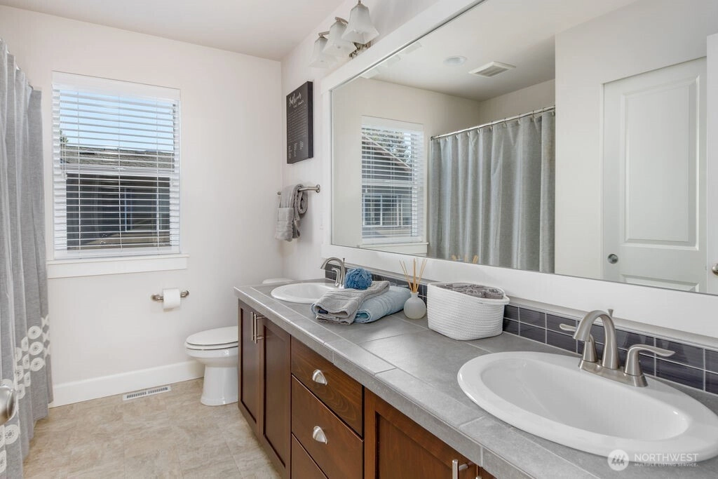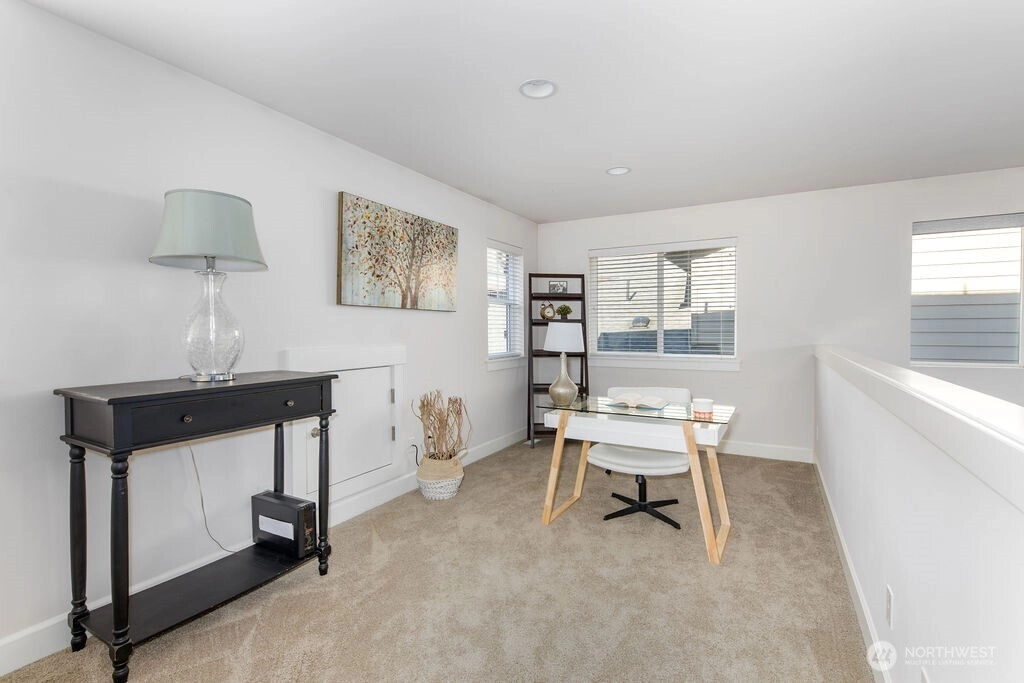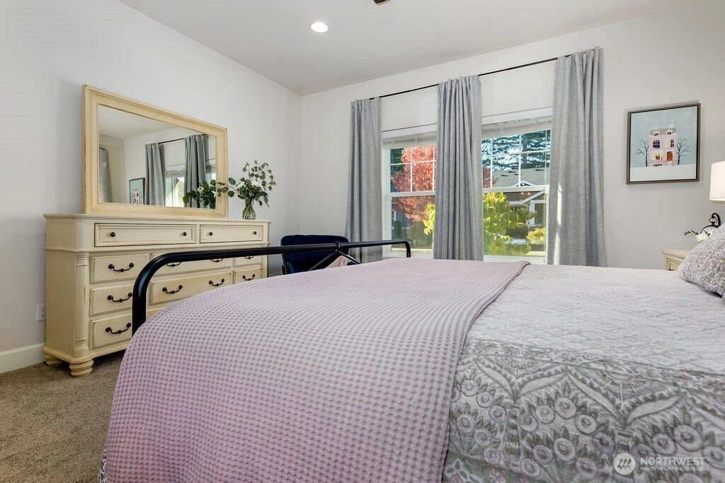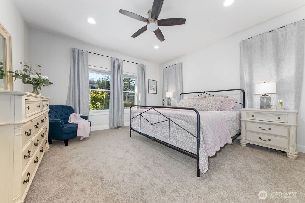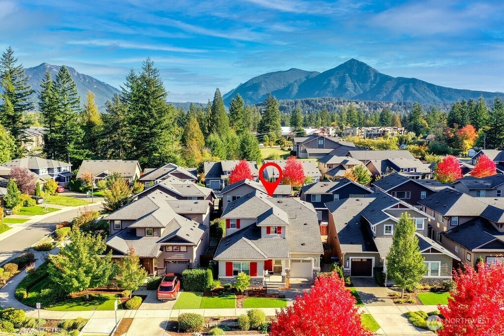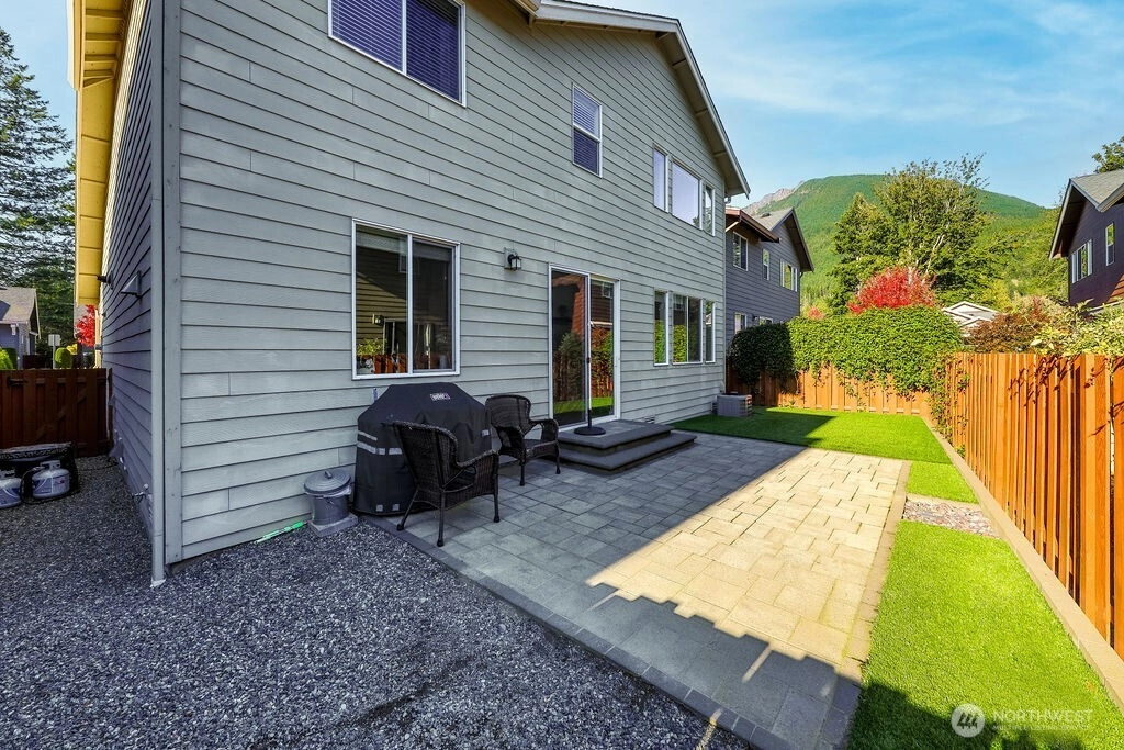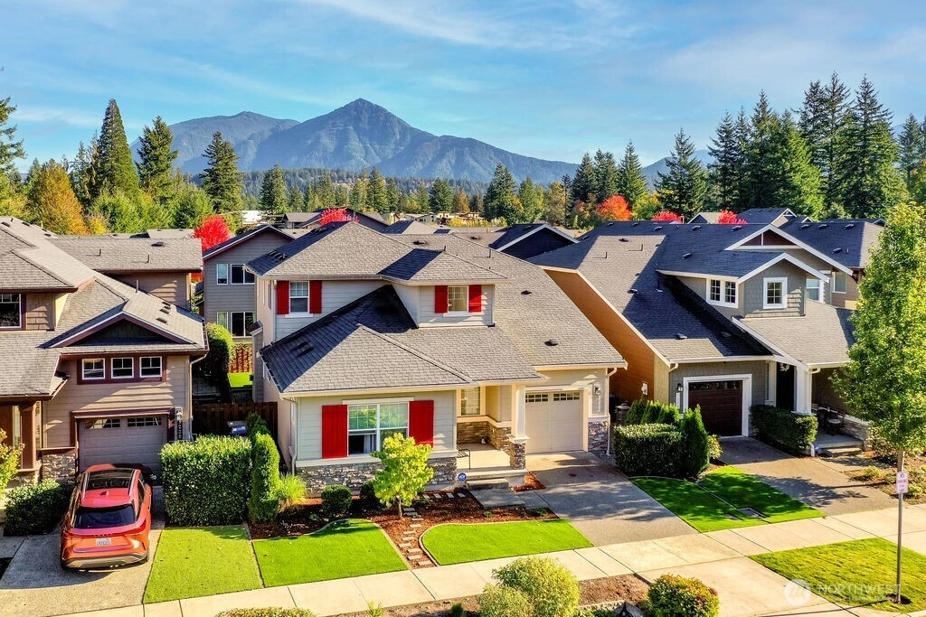 Beautiful North Bend home w/stunning Mt. Si views! The open concept great room features a cozy gas fireplace that opens to the kitchen & eating area. The main-level primary suite offers a spacious 5-piece en suite bath, oversized walk in closet, new carpet & lots of storage. Upstairs you'll find a 2nd bedroom w/full bath & a loft/office easily converted to a 3rd bedroom — many neighbors have done the same. Enjoy eco-friendly turf in front & back yard, amazing landscaping, large tio (umbrella & base stay, generator hook-up, & electric window shades on upper windows for ease. Fully fenced yard, central A/C, efficient HVAC, & just 2 minutes to downtown North Bend. Nestled in a quaint, relaxing neighborhood w/incredible mountain views.