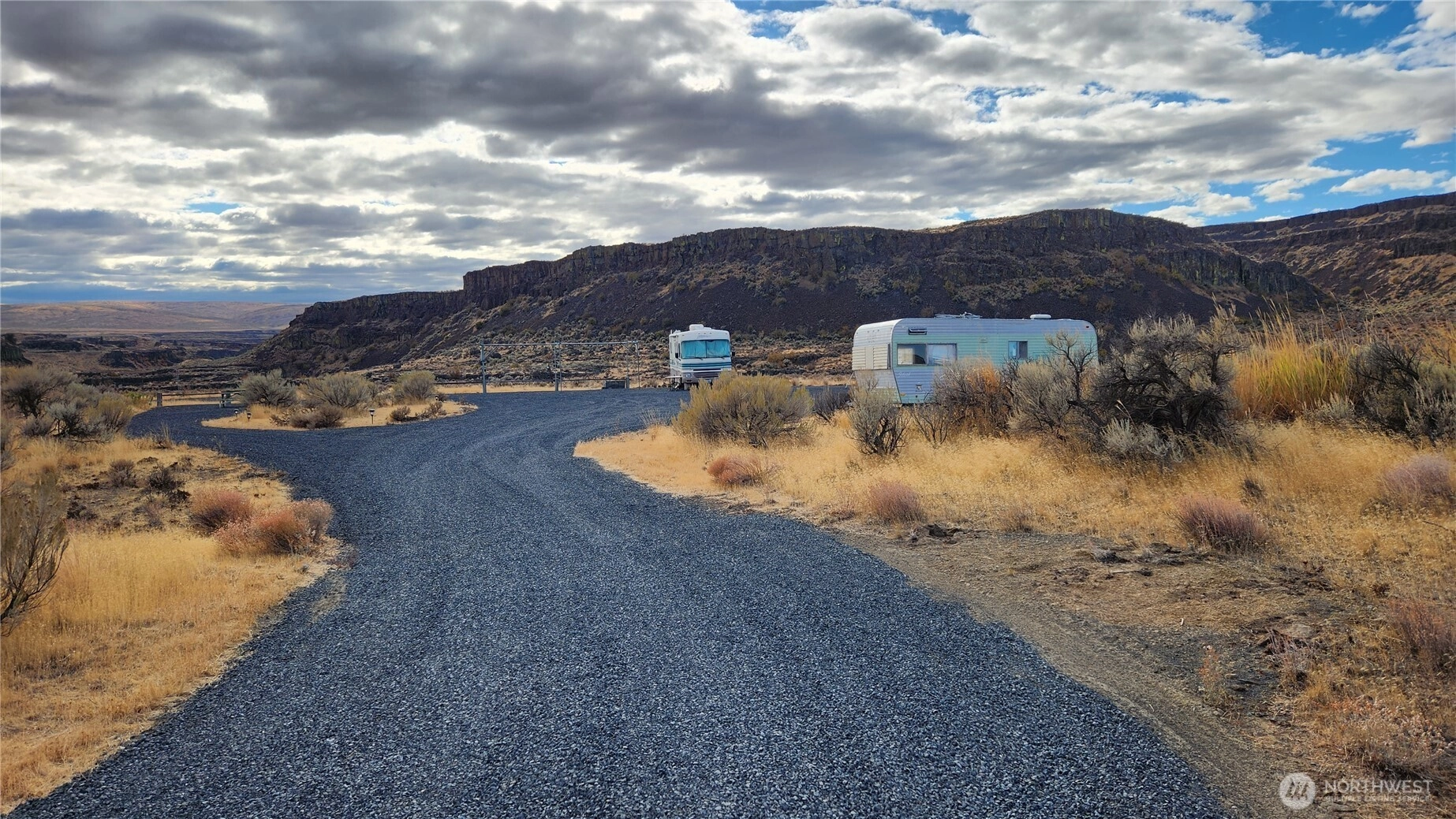 3.22 acres of HIGHLY DESIRABLE lots w/stunning views overlooking the beautiful McCartney Crk, Palisades, & Moses Coulee Canyon. This off-grid property is secluded, very peaceful & gorgeous! It features a gated entry, cleared & heavily graveled terrain, fencing, a metal solar-lit gazebo, and a 30’ SW Storm RV. Practice golf shots from 3 grass T-boxes to a graveled flag area, 2 bow target shooting areas, 2 graveled firepit areas, & lots of room for friends. The sunsets are mesmerizing & the stars at night are breathtaking. Rimrock's amenities include a swimming pool, horseshoes, playground, BBQ & picnic areas. Clubhouse offers a rec-room w/TVs, games, movies, ping pong, vending machines, a kitchen, restrooms, & laundry.
