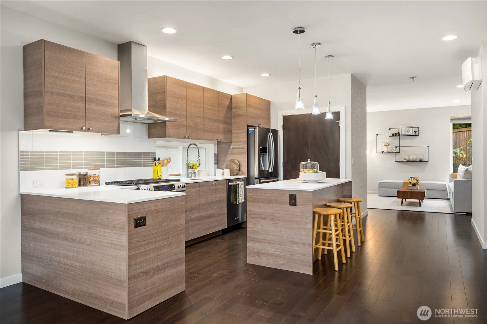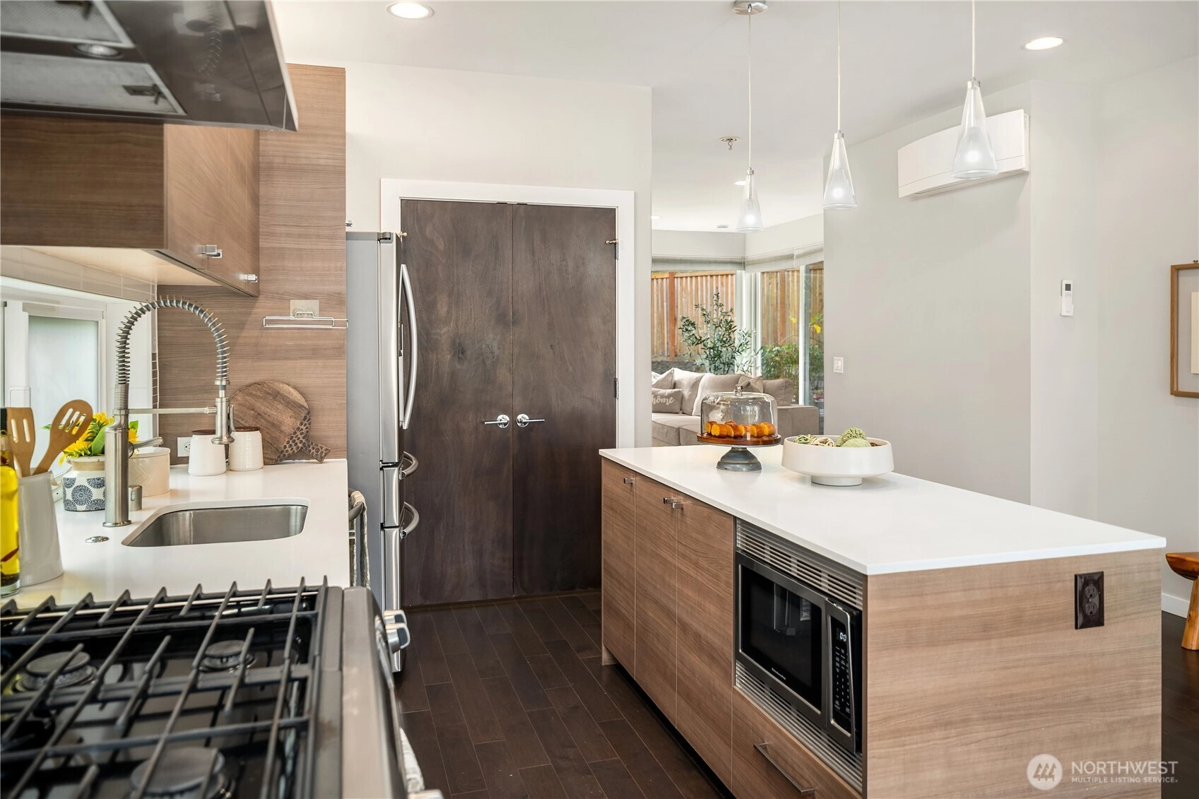 Impeccably maintained 3 BD + loft modern home by Isola Homes in the desirable City 26 community. This 3-Star Built Green residence features an open great room with floor-to-ceiling windows, gas fireplace, and hardwood floors. Gourmet kitchen boasts European-style Abodian cabinets, quartz counters, walk-in pantry, and high-efficiency stainless appliances. Spacious primary suite with spa-inspired bath, soaking tub, and walk-in closet, . Enjoy ductless mini-splits (AC/heat), HRV system, Greenguard insulation, fiber optics, fenced yard with patio, and 2-car garage. Fresh new paint and new carpet. Minutes to future light rail & top schools.