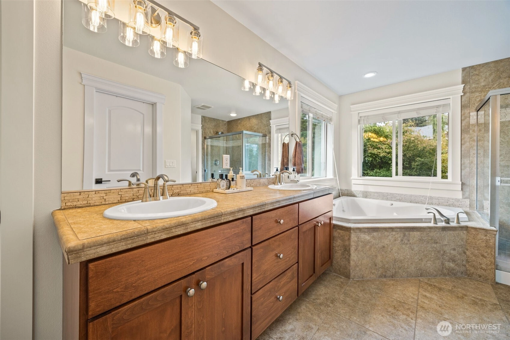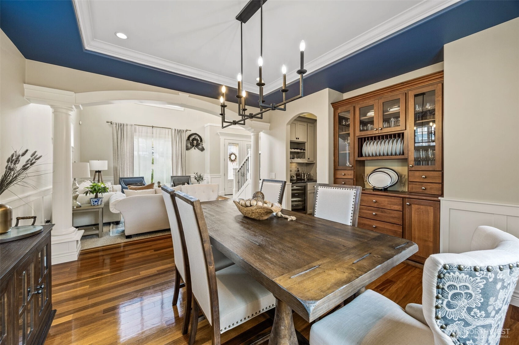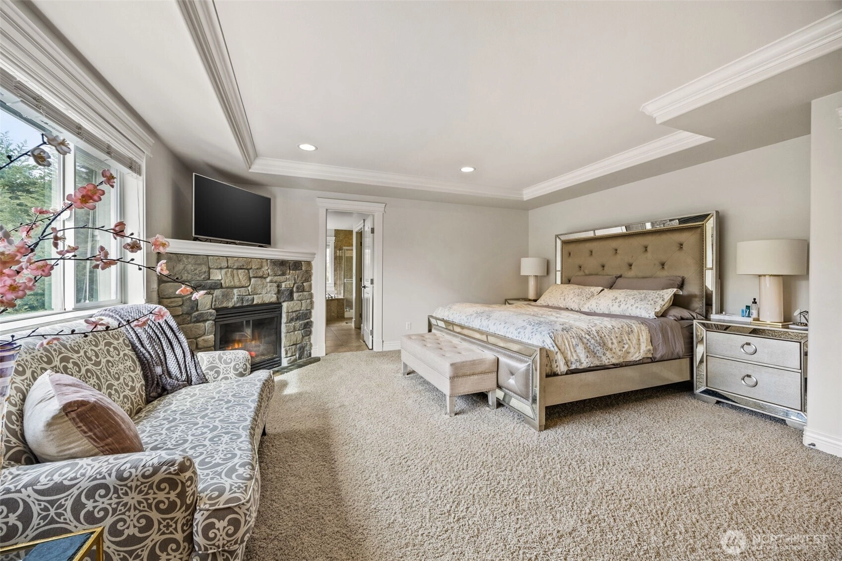 Luxury craftsmanship meets timeless elegance in a cul-de-sac of Meadow Lake Highlands This beautifully updated 4-bedroom + office + bonus room home sits on nearly ¾ acre with a serene natural backdrop. Features include Brazilian hardwoods, designer lighting, marble finishes, remodeled butler’s pantry, and freshly painted interior/exterior. The primary suite offers a cozy fireplace, sitting area and large walk-in closet, 5-piece spa-like bath. Enjoy outdoor living with a covered deck, fire-pit, and fenced backyard. Includes A/C and MyQ-compatible 3-car garage. Wired for EV charger. Conveniently located minutes to downtown Snohomish and Monroe.
