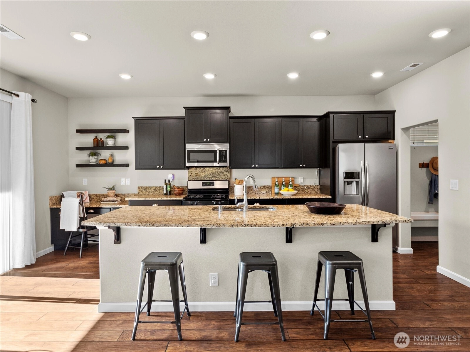Welcome to this beautifully maintained 3-bedroom, 2.5-bath home offering over 2,700 sq ft of thoughtfully designed living space in NE Lacey’s Meridian Campus. The main level features a spacious open-concept layout that connects the living, dining, and kitchen areas with a large island—ideal for everyday living or entertaining. Upstairs includes all spacious bedrooms, an oversized laundry room, and a versatile bonus room perfect for an office, playroom, or media space. Fully fenced backyard with patio, 2-car garage, and close to parks, schools, Hawks Prairie shopping, and I-5.