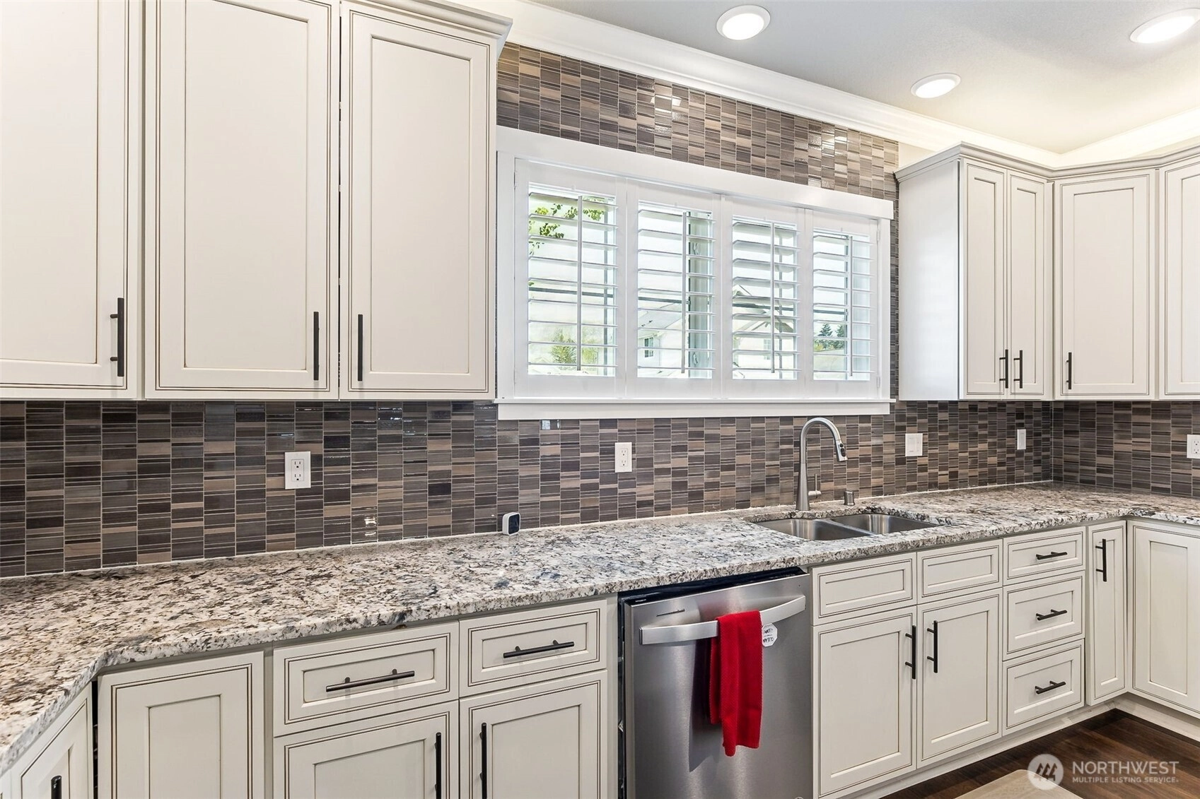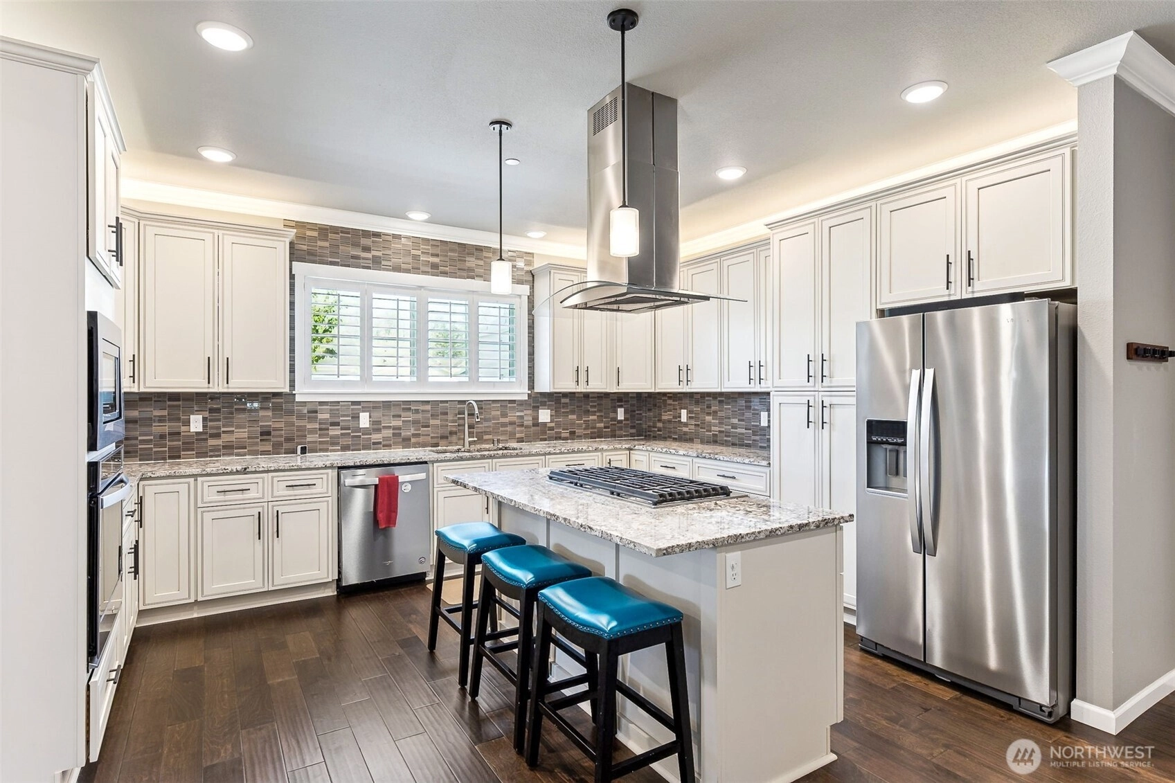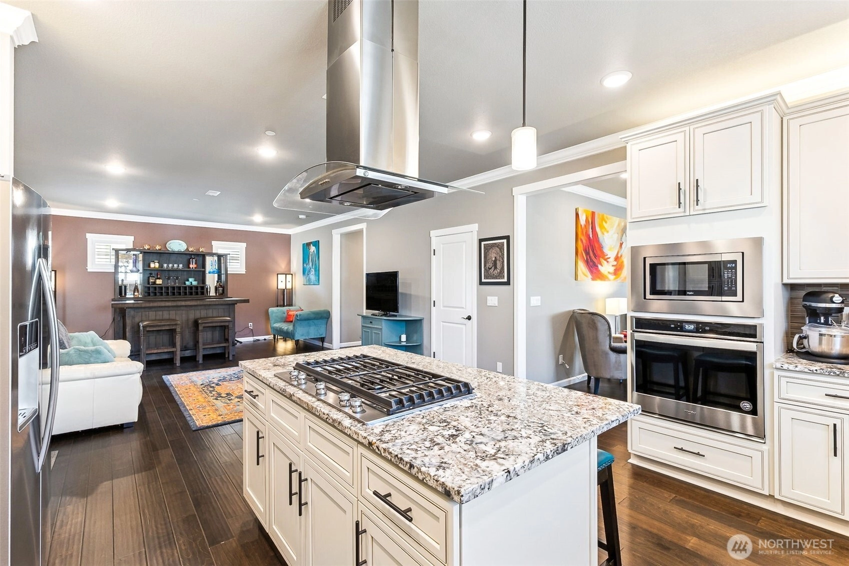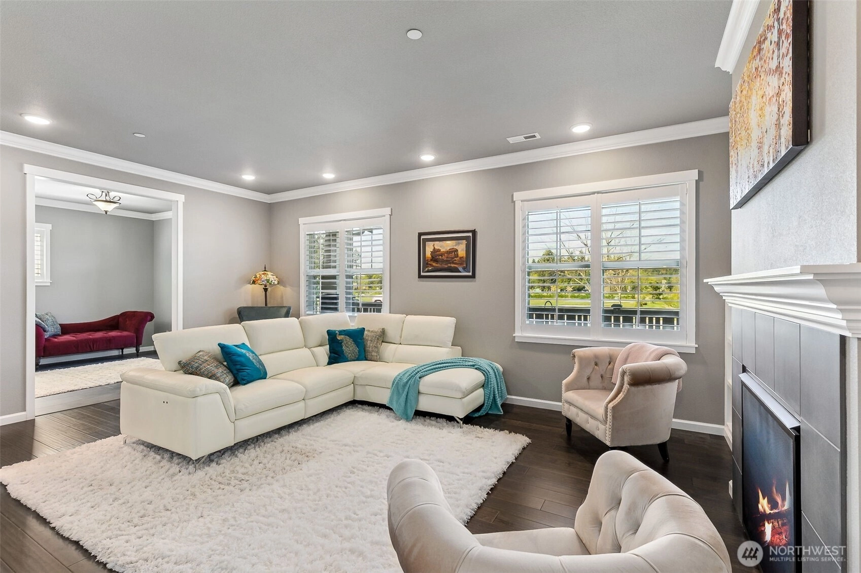 Gracious Living on Corner Lot in Mill Pond! Everyone gets their own space in this stunning home offering 4 bedrooms, (primary suite and also junior suite), formal liv room + huge bonus (pool table negotiable) + flex living space off kitchen! Gorgeous kitchen, lighting above/below cabs, granite surfaces, gas range, double oven. 10' ceilings on main floor, gas fireplace, office/den w/French doors, formal entry. Love the wrap around patio w/French doors off the dining room! Fenced yard. Primary suite w/ gas fireplace, sweet built in window cubbies, vaulted ceilings. Electronic black out blinds in primary, junior suite and bonus room. Oversized garage, on demand water heater, neighborhood parks, access Chehalis Western Trail!
