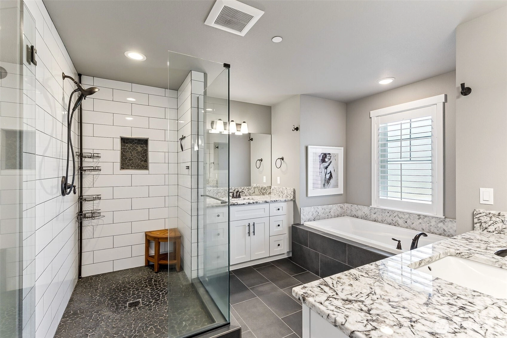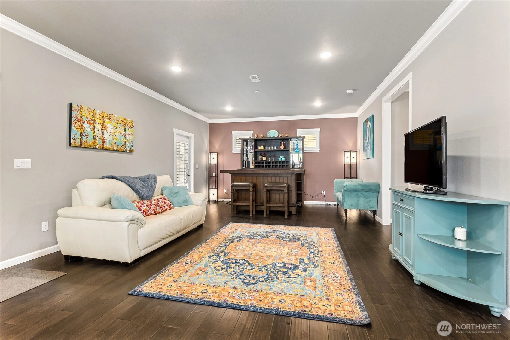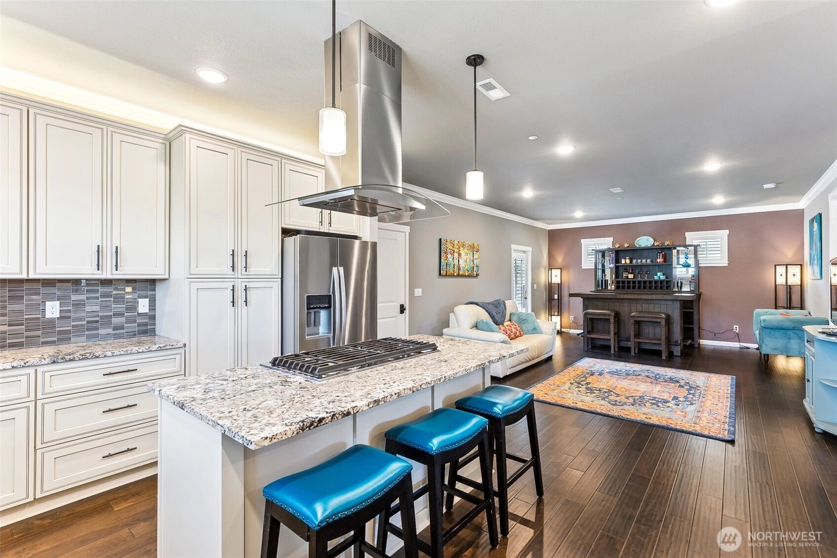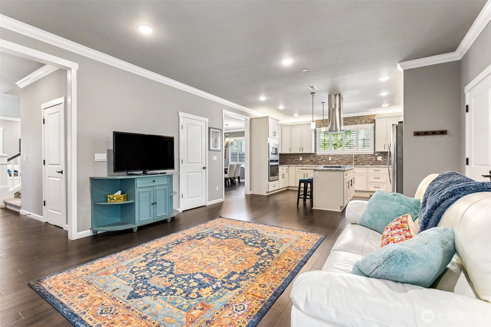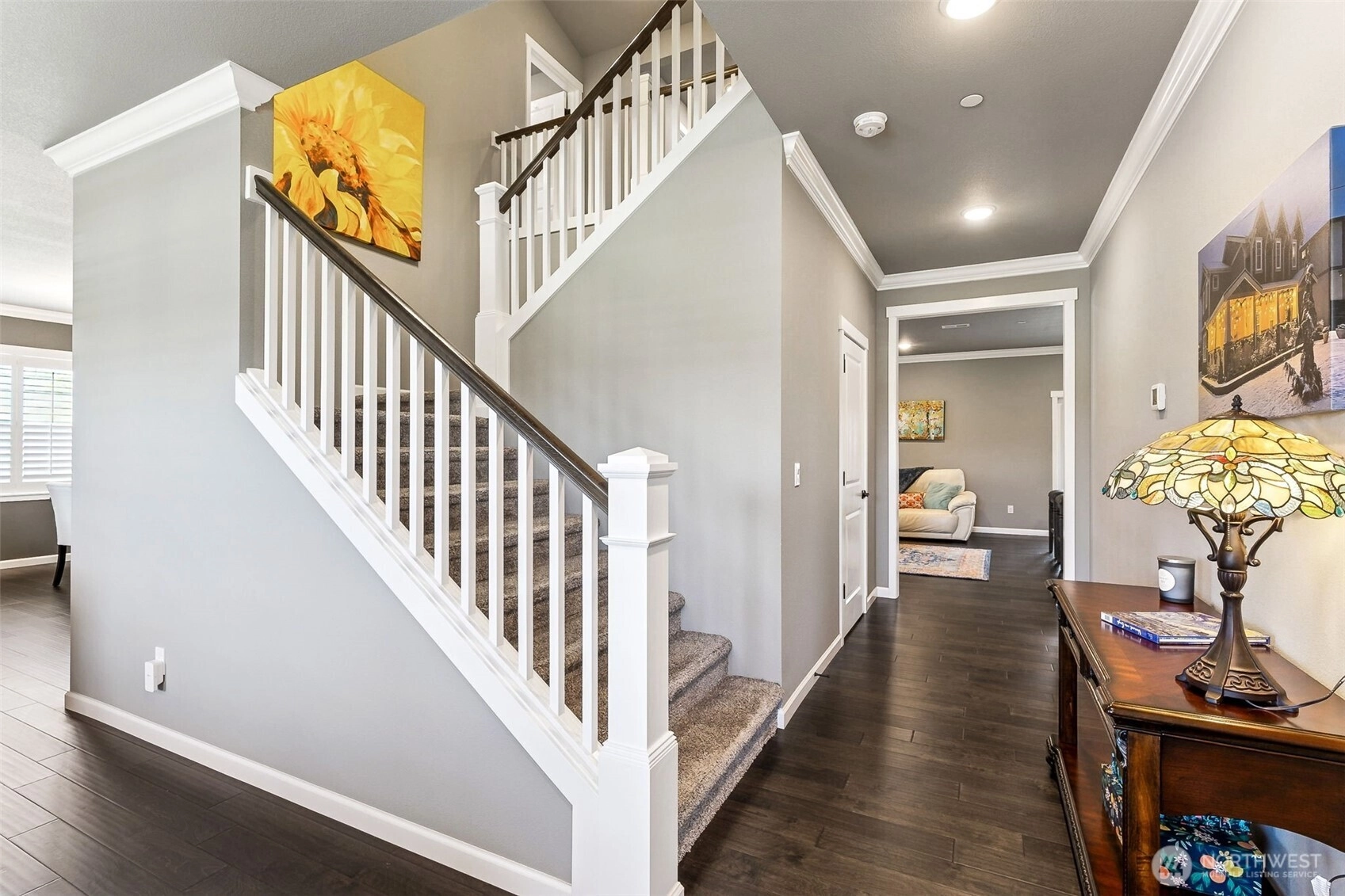 Gracious Living on Corner Lot in Mill Pond! Everyone gets their own space in this stunning home offering 4 bedrooms, (primary suite and also junior suite), formal liv room + huge bonus (pool table negotiable) + flex living space off kitchen! Gorgeous kitchen, lighting above/below cabs, granite surfaces, gas range, double oven. 10' ceilings on main floor, gas fireplace, office/den w/French doors, formal entry. Love the wrap around patio w/French doors off the dining room! Fenced yard. Primary suite w/ gas fireplace, sweet built in window cubbies, vaulted ceilings. Electronic black out blinds in primary, junior suite and bonus room. Oversized garage, on demand water heater, neighborhood parks, access Chehalis Western Trail!