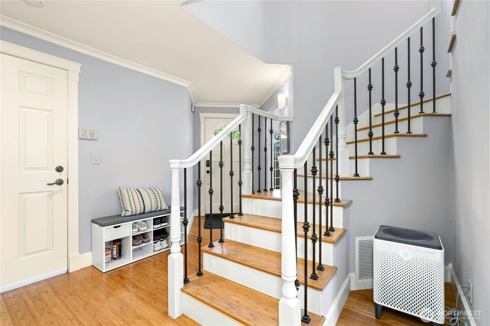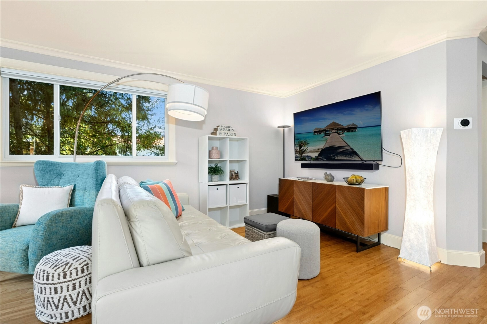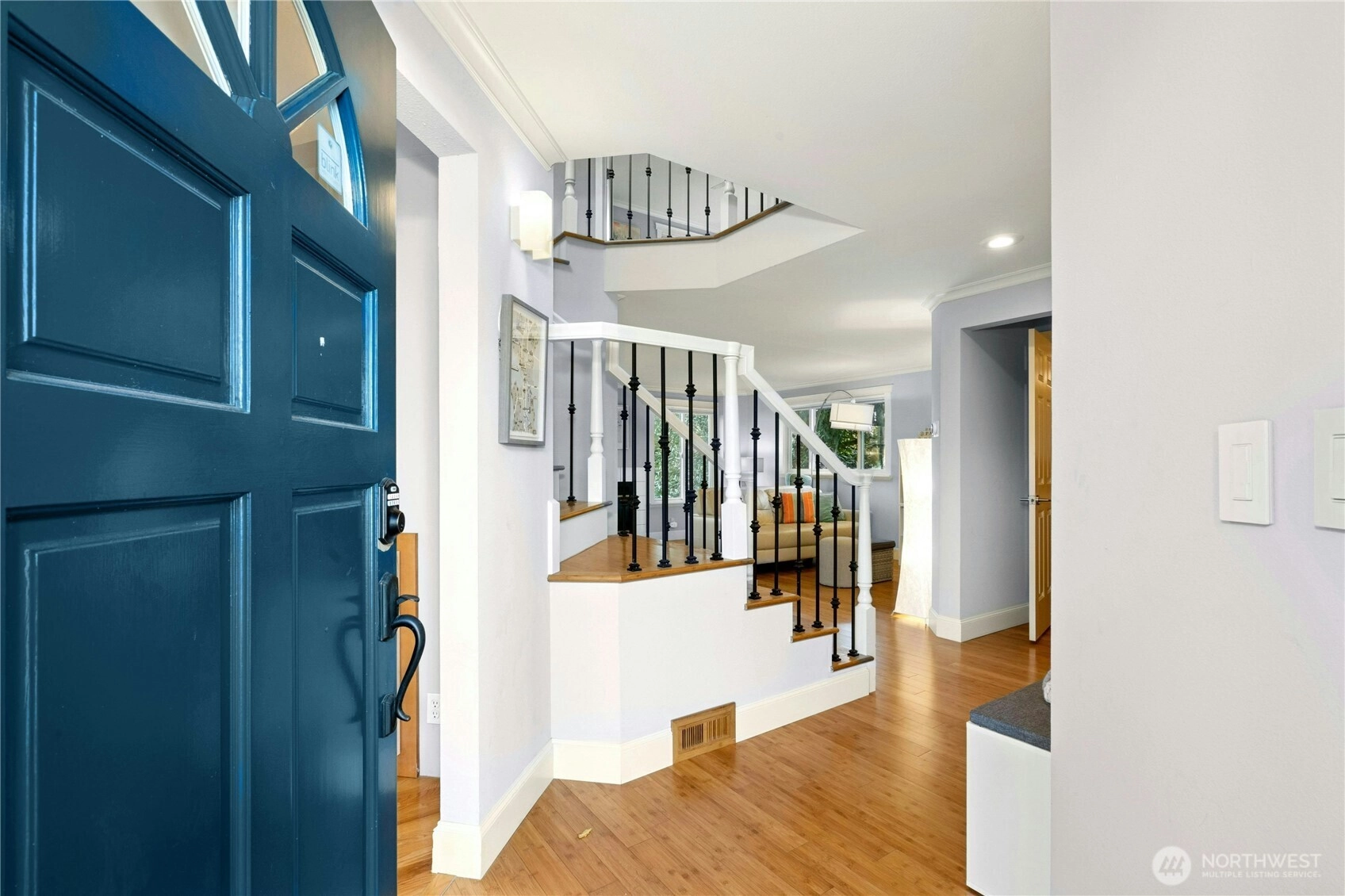 Smartly situated near Crossroads, Microsoft & the heart of the Tech corridor, this exceptional Fox Borough end-unit offers all the comforts of home with the ease of townhouse living. Step inside to stunning hardwoods, including eco-friendly bamboo flooring and a contemporary, tastefully updated kitchen featuring SS appliances/quartz surfaces. Spa-inspired bathrooms boast stylish tile work, while soaring ceilings & skylights flood the home with nurturing, natural light. Enjoy cozy evenings by the gas fireplace or the comfort of Central A/C. Two spacious walk-in closets, two private decks, plus attached two car garage with storage, complete this thoughtful layout. Easy access to parks, shopping, freeways, light rail & Downtown. Bellevue SD.