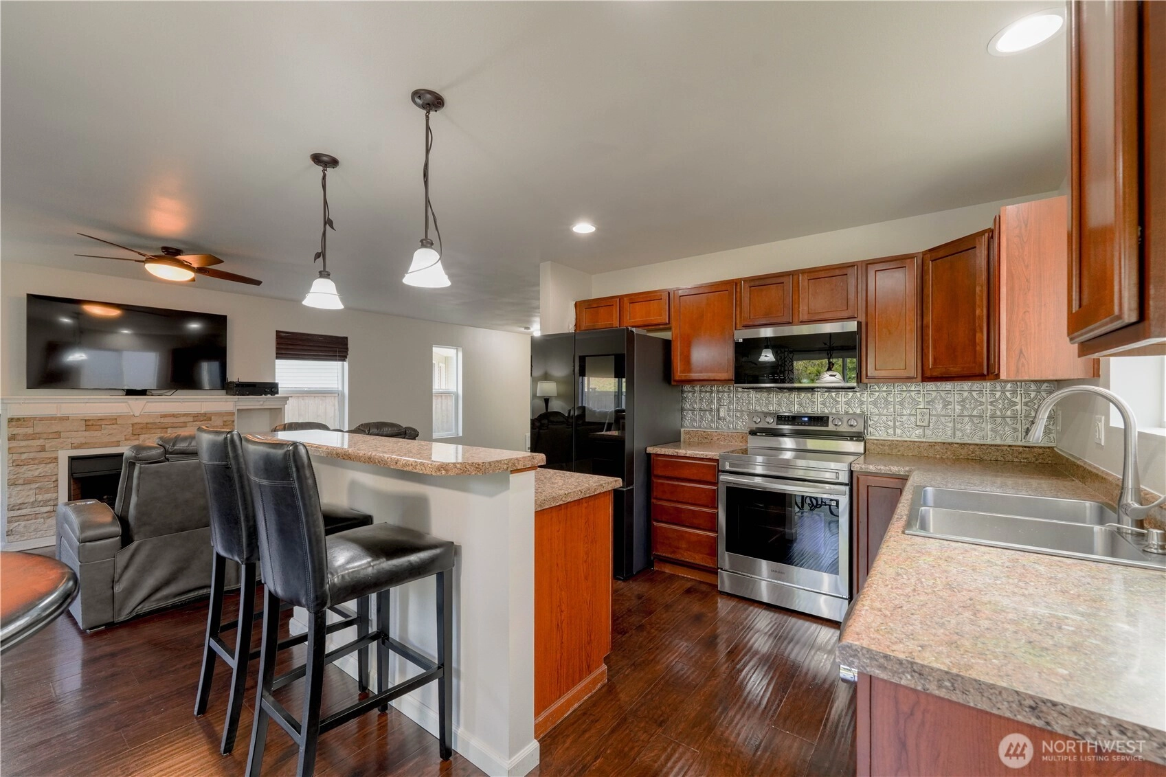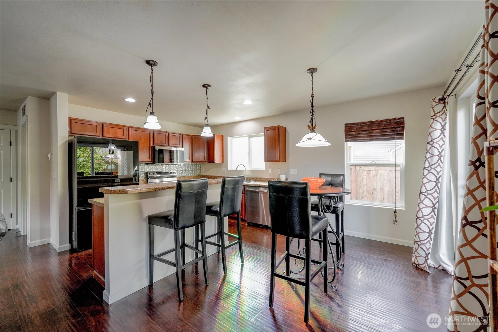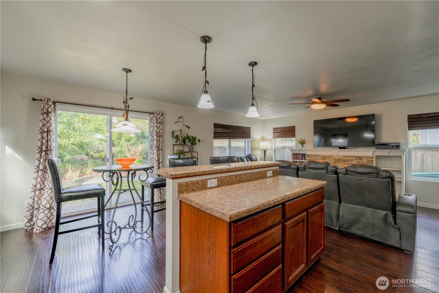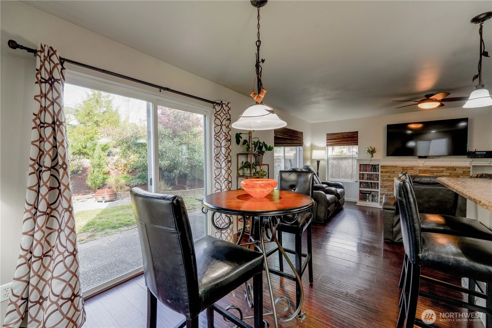 This beautiful home has an open floor plan downstairs and 3 generous rooms (all w WICs) and loft upstairs. Home boasts beautiful hardwood floors, gorgeous millwork, stunning fireplace with built in bookshelves, but that’s not all. Home has a new roof with solar, new water heater & new appliances. Garage has a new door, radiant heating and electrical work to allow for more electrical needs (EV, fridge, equipment?)! Outdoors you'll find an expanded patio, newer front porch, professionally landscaped yard with French drain. Neighborhoods trails & parks, dog park coming soon. Close to schools, food, shopping, and busline