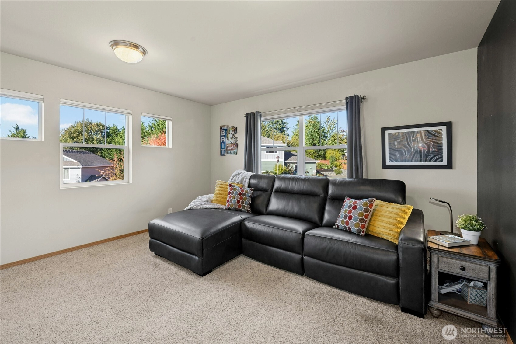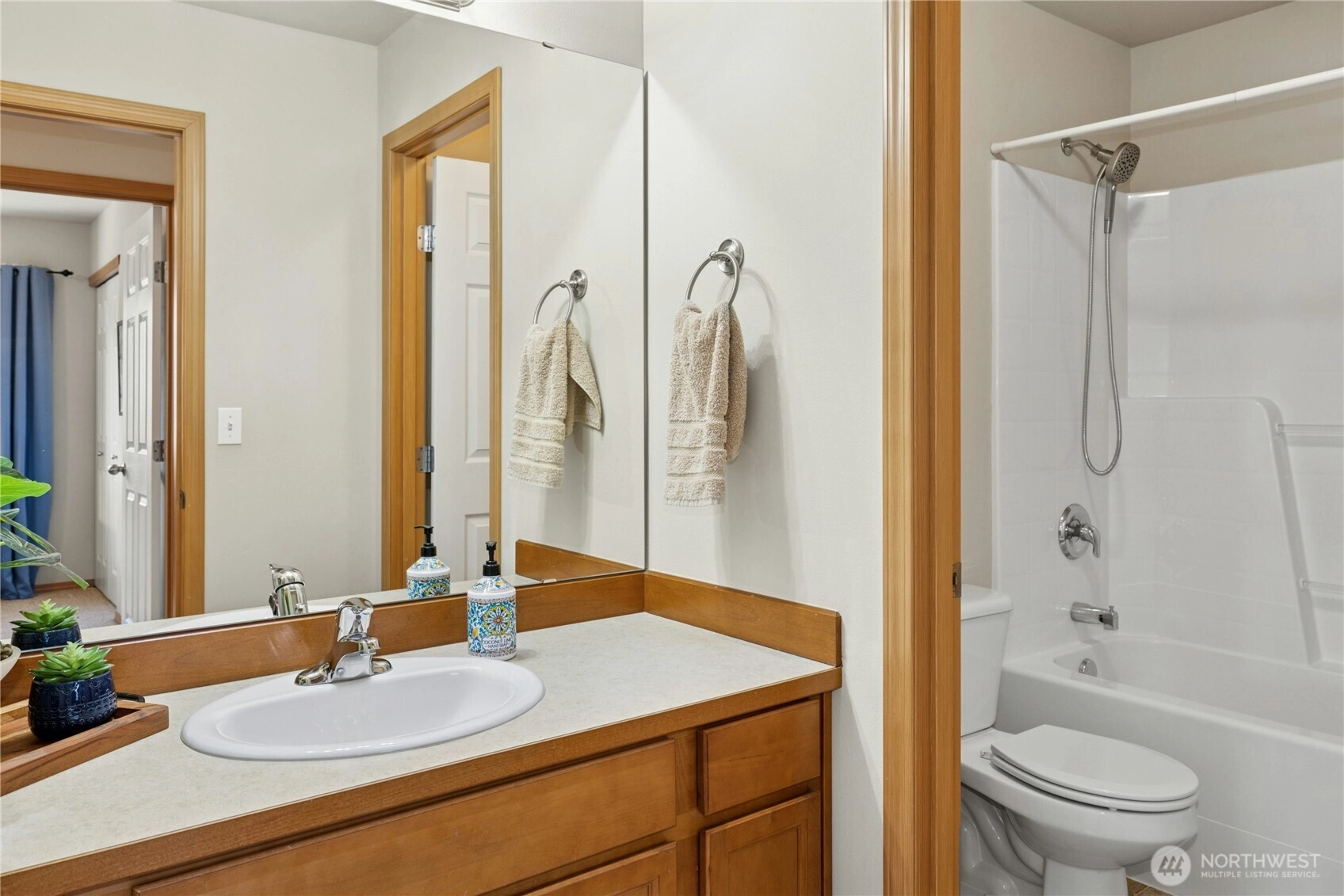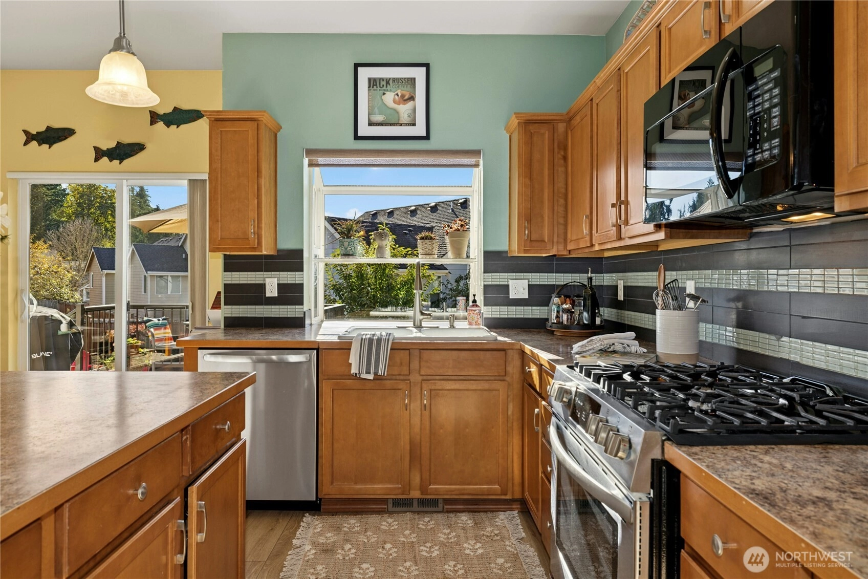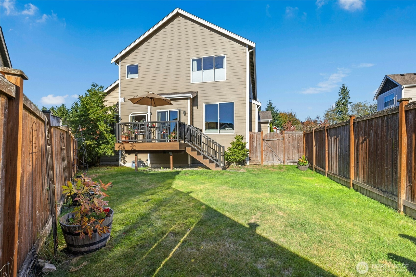 Located at the end of a quiet cul-de-sac right in the heart of Poulsbo, this home lives large, with vaulted ceilings, open living areas and a 14’ x 16’ upstairs Bonus Room. Thoughtful updates throughout - Air Conditioning, Custom Blinds, LVP Flooring and Composite Decking all make for ease and comfort in home ownership. Enjoy extended outdoor living on the recently updated deck with access to fully fenced backyard. Oversized Garage, with space for two full-size vehicles and racks of storage. Walk to schools, community parks and downtown Poulsbo from this central location. 19663 Rosebud Place - Welcome home!
