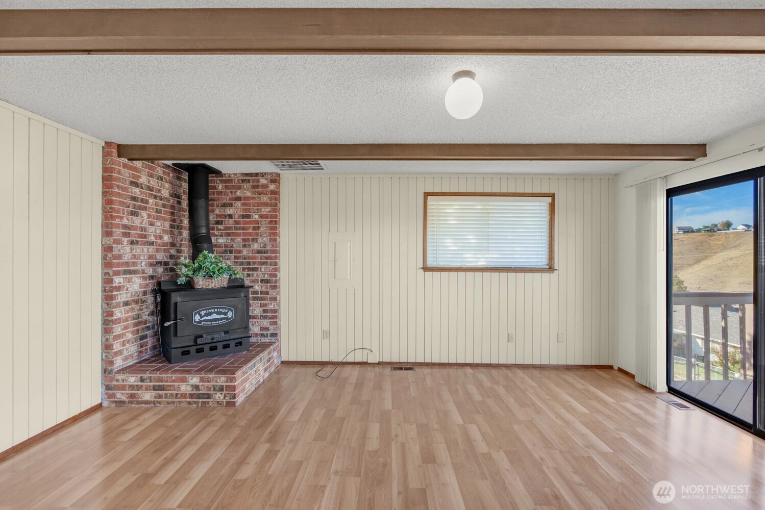 Stunning residence w/ gorgeous city and mountain views. 3 bedrooms & 2 full baths. Newly painted large deck for morning coffee. Fully fenced backyard w/ terraced lawn, powered storage shed on foundation & space for a garden. Home has laminate wood flooring in main space & vinyl in bathrooms, making it great for pets or allergy-friendly living. Formal living room w/ wood-burning fireplace. Family room w/ wood stove. Kitchen w/ island, pantry & built-in desk for working from home. Dining w/ sliders to deck. Primary suite w/ dual walk-in closets, private bath w/ jetted tub, double sinks, shower & water closet. Circular drive w/ RV space & 1,000 sqft loft above garage for storage, gym or studio. New gas furnace in Dec. 2024 for efficiency.