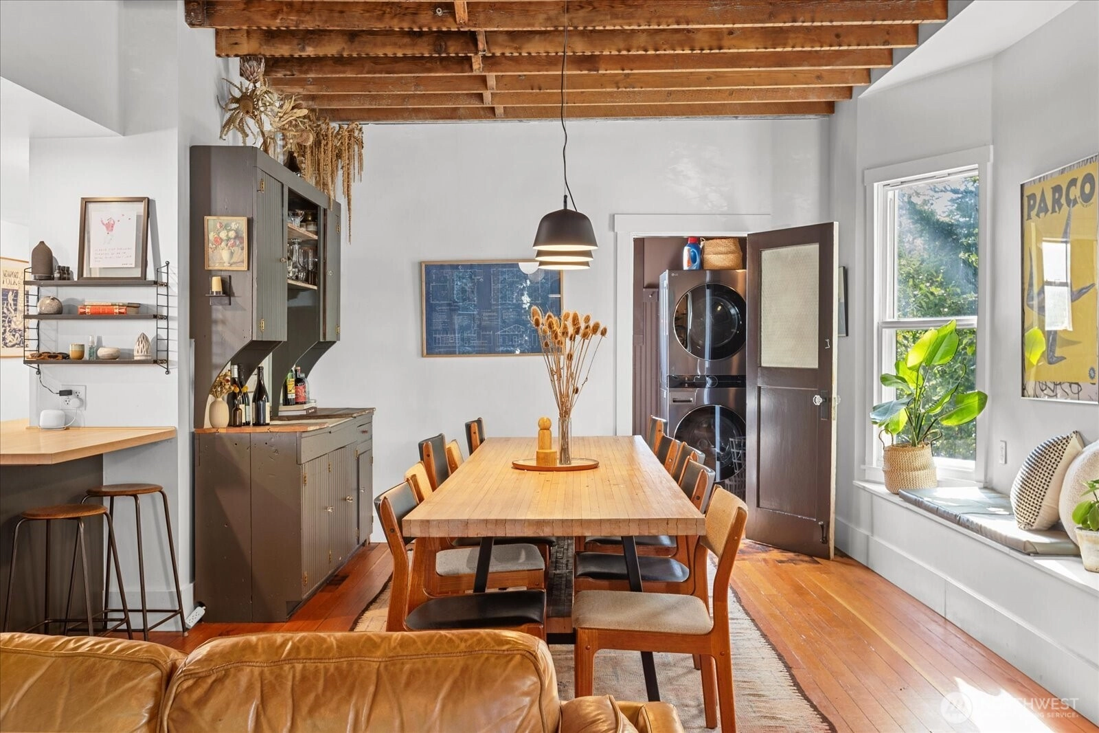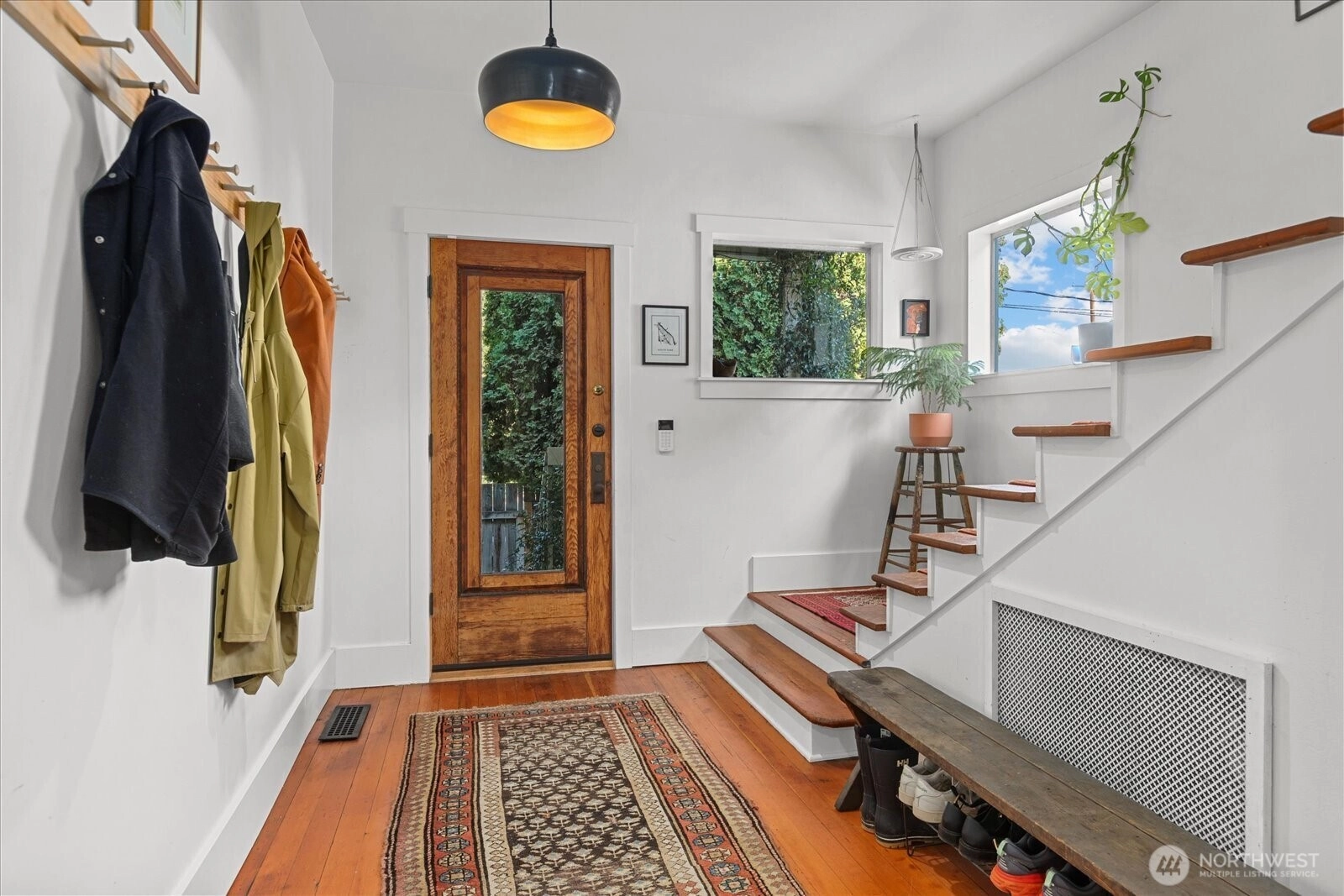 A rare gem in South Park—this modernized Foursquare is a private retreat tucked behind a tree-lined gate. Step inside to a warm, character-rich home w/ a spacious foyer & wide staircase leading to four upstairs bedrooms & beautifully remodeled bath. The primary features a built-in closet & bed alcove. The main level was reimagined with care & timeless design: exposed ceilings, salvaged fir floors, cozy window bench, reimagined bathroom, custom kitchen cabinets, maple butcher block counters, & walk-in pantry. Outside, enjoy a brand-new roof, entertaining deck, raised garden beds & generous backyard w/ alley access. A truly special home, thoughtfully revived—just around the corner from local restaurants & minutes from downtown & the airport.