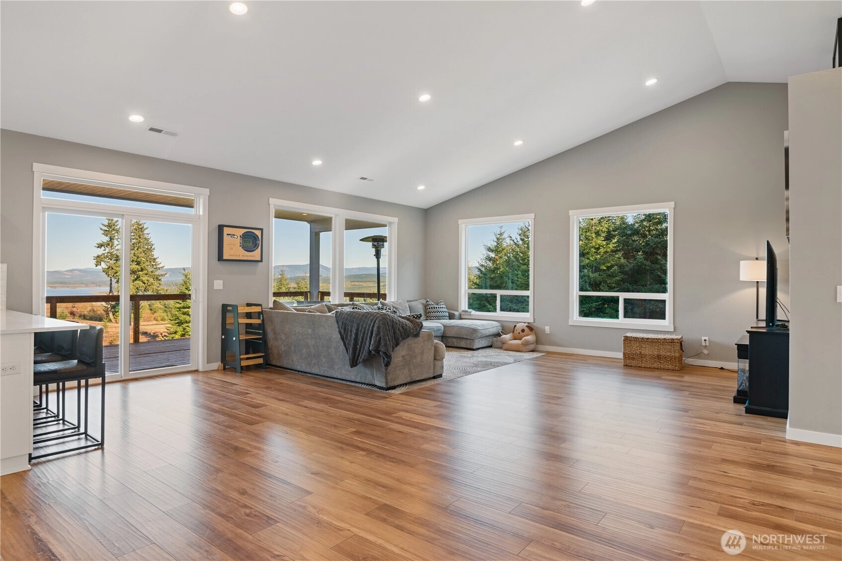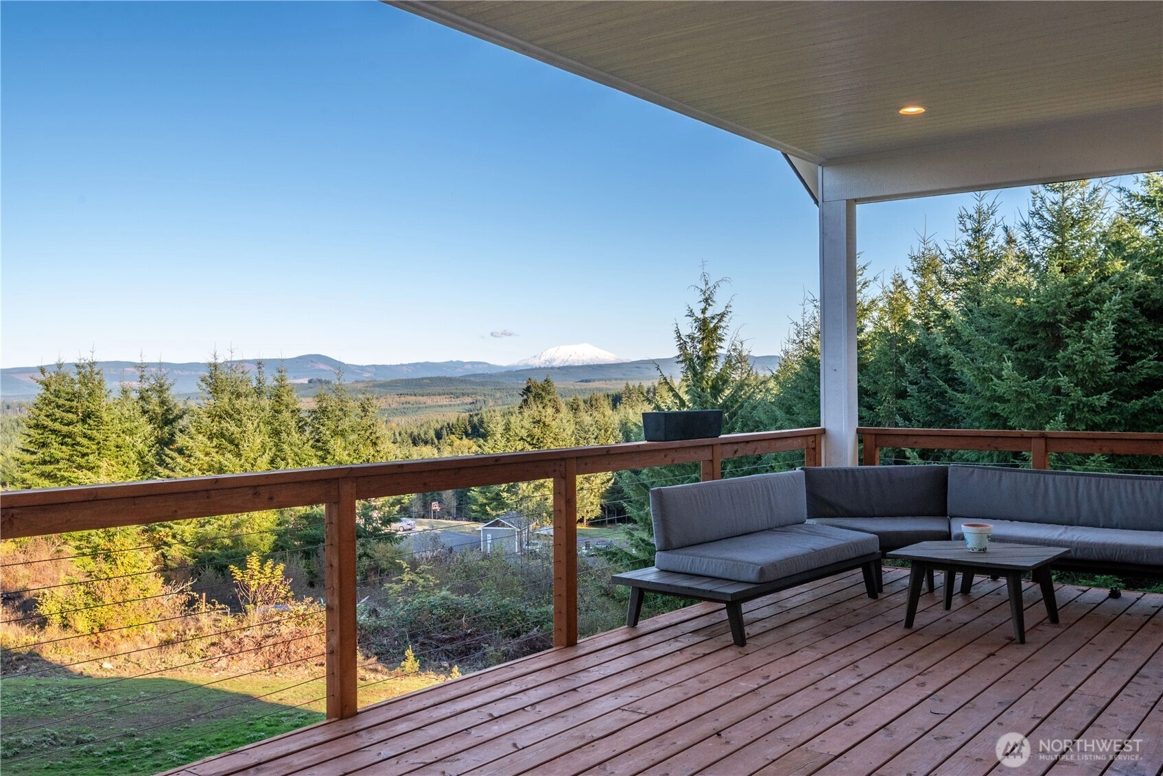 Stunning custom-built single-level home in a desirable gated community, perfectly positioned to capture panoramic views of Silver Lake, Mt St. Helens, and Mt Rainier. This 3-bed, 2-bath offers an open and inviting layout designed for both comfort and entertaining. Expansive windows fill every room with natural light and frame breathtaking views in every direction. The kitchen flows seamlessly into the living room creating the perfect gathering space. Relax in the primary suite featuring en-suite bath and serene outlooks of the lake and mountains. Enjoy peaceful mornings or vibrant sunsets from the covered patio overlooking the picturesque landscape. Experience the best of PNW living—privacy, luxury, and scenery that never gets old.