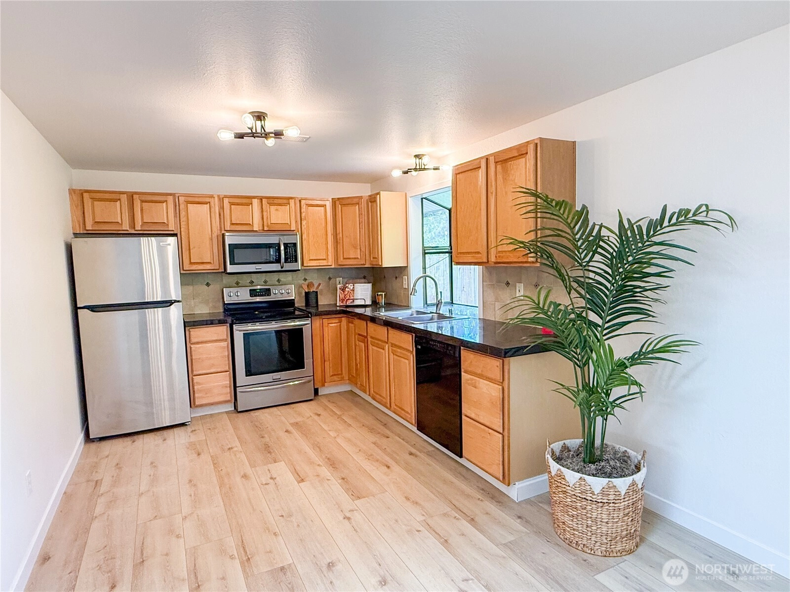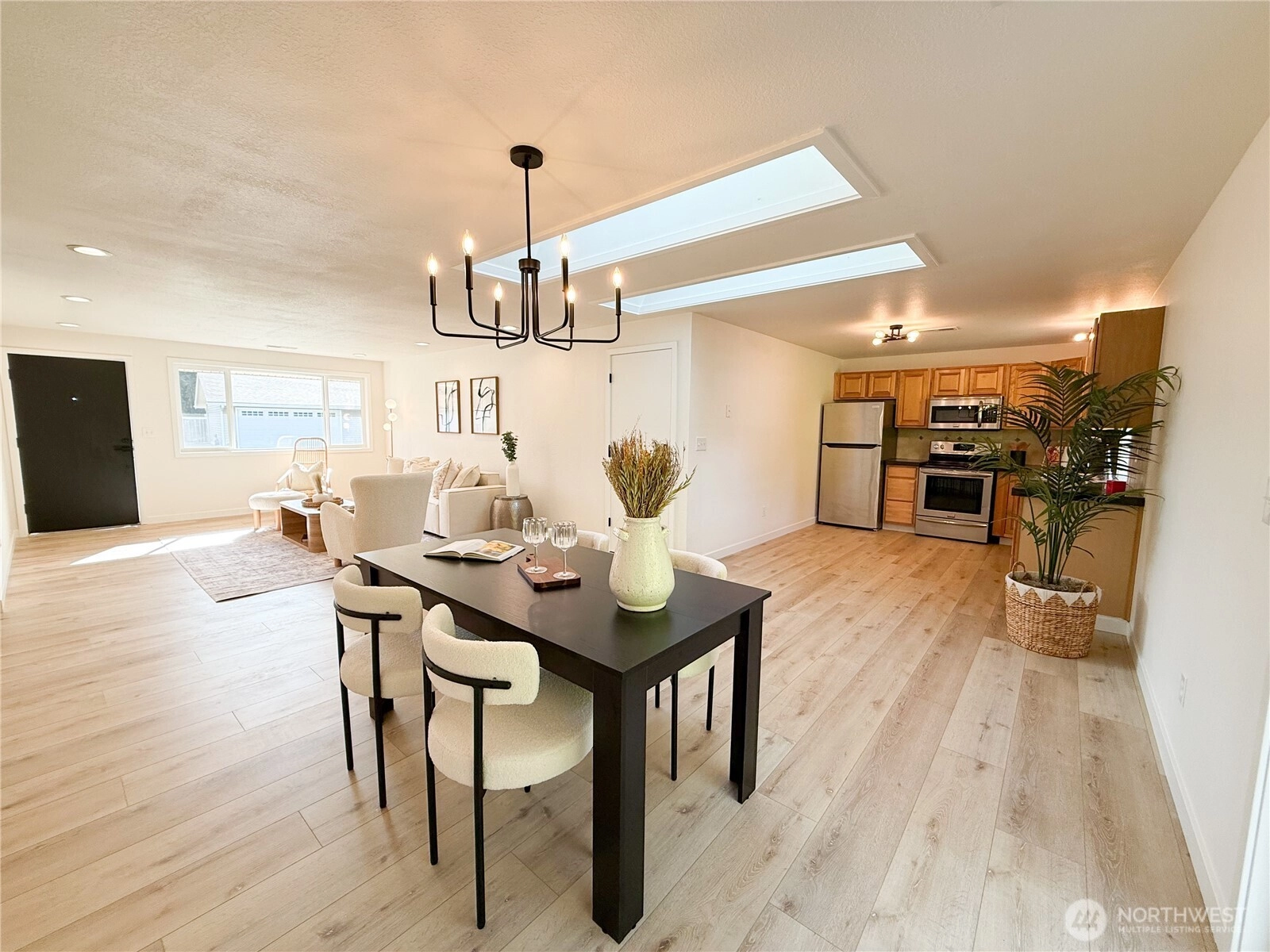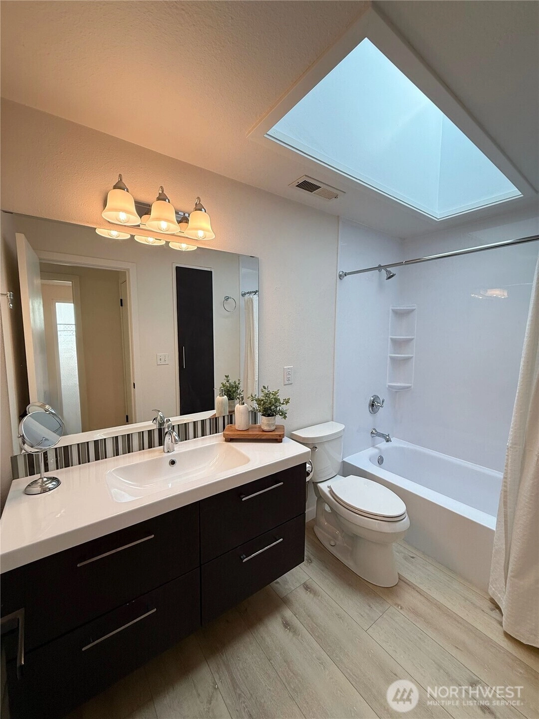 Newly renovated rambler tucked away in a quiet Puyallup cul-de-sac! This move-in ready 3-bed, 1.75-bath home blends modern comfort with modern charm. Step inside to a bright, open layout featuring new LVP flooring throughout, fresh interior paint, and skylights that fill the space with natural light. Updated kitchen offers quartz countertops, ample cabinetry for storage. The primary suite showcases stylish modern fixtures and finishes. Two additional bedrooms provide flexibility for guests, office, or hobbies. New roof adds peace of mind, and the s garage includes drop down ladder for extra storage and don't miss extra room in garage for? Enjoy outdoor living in the private backyard! And for summer you have RV parking and AC in the house