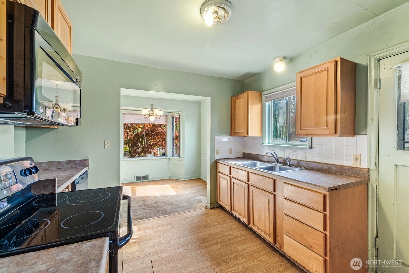 Bring your vision! Unlock the potential of this North Seattle property on a large, level 8,160 sq ft lot. The 1,930 sq ft home features two fireplaces, two bedrooms and main living area upstairs, a spacious utility/laundry room, and a lower level with two non-conforming bedrooms and a generous family room. The home needs work but offers exceptional upside for remodelers, investors, or builders. Fully fenced yard with private driveway. Remodel, expand, or explore redevelopment opportunities—endless possibilities await (buyer to verify).