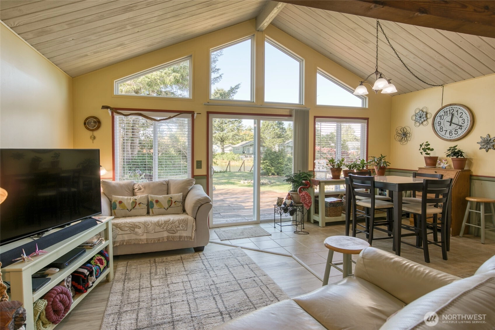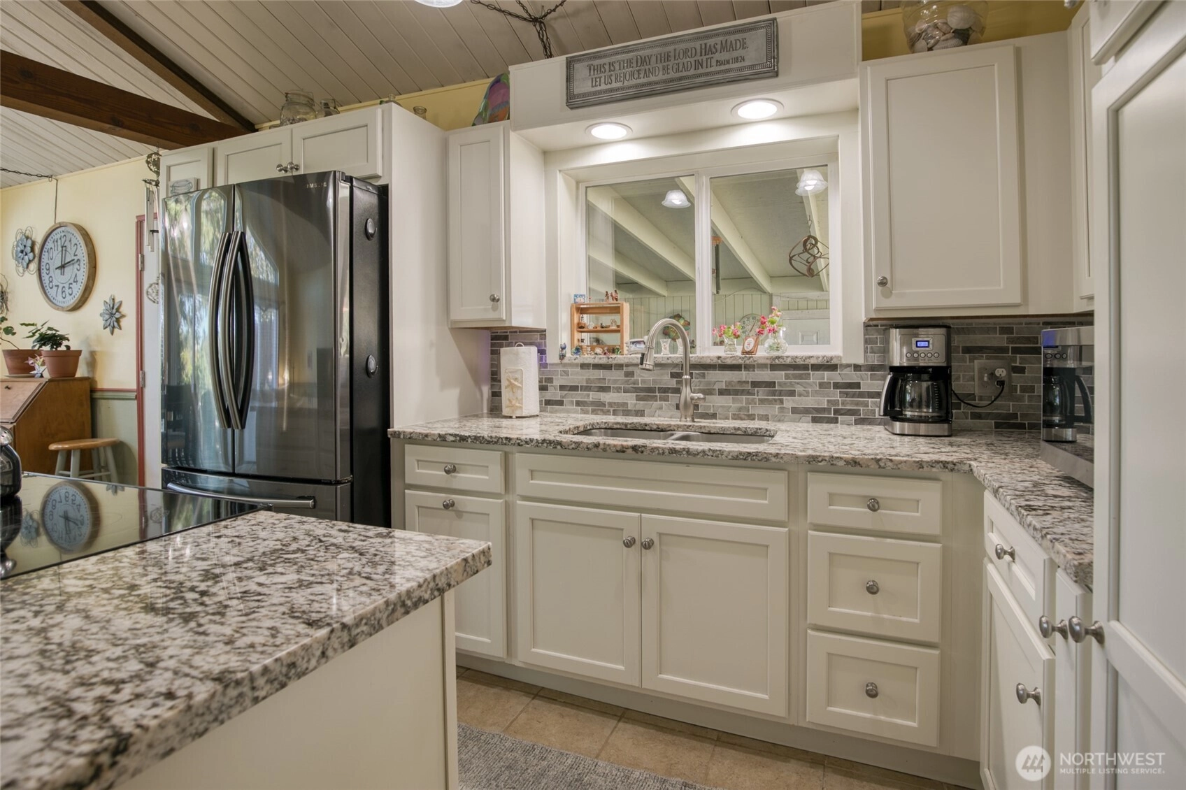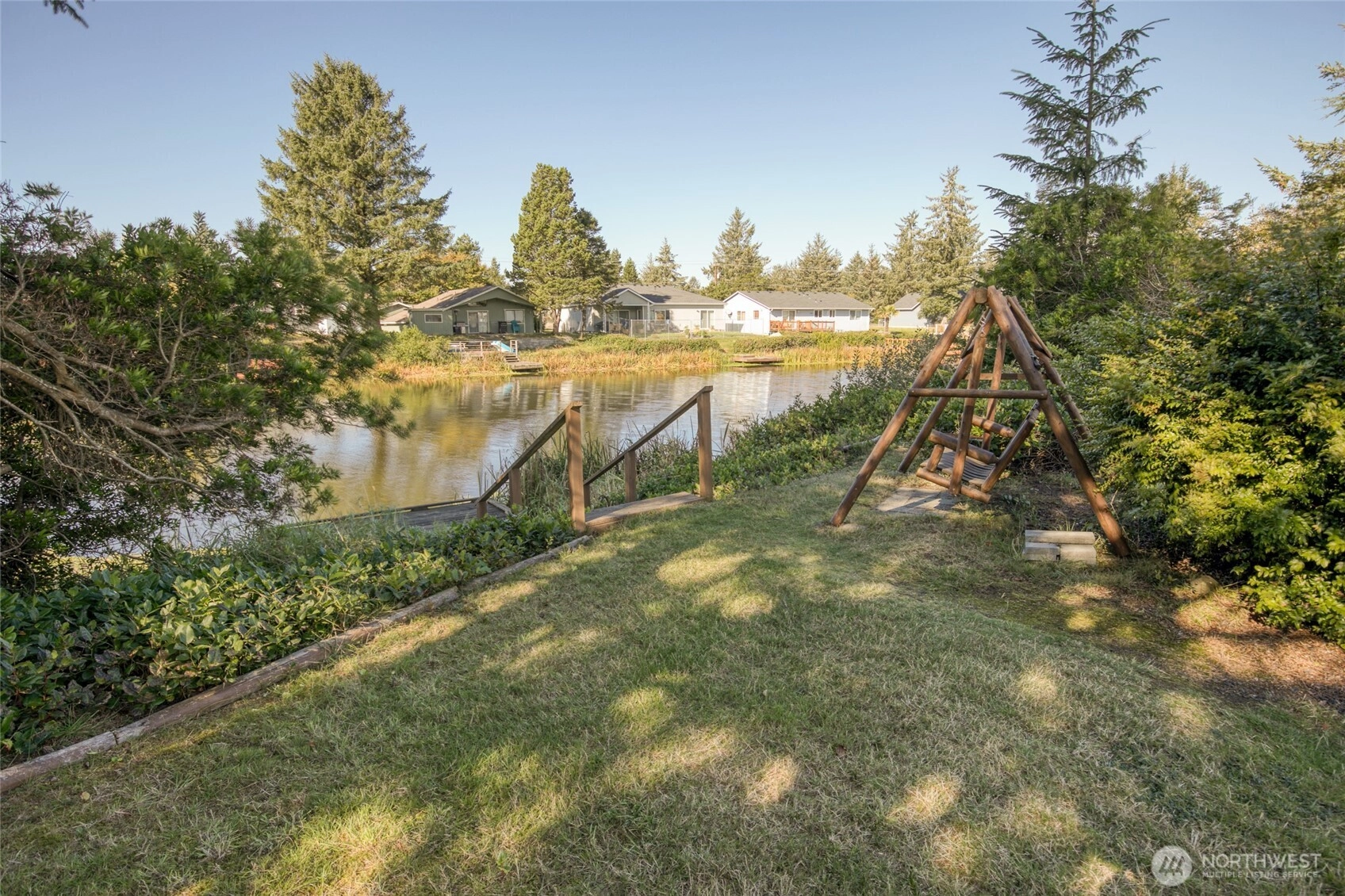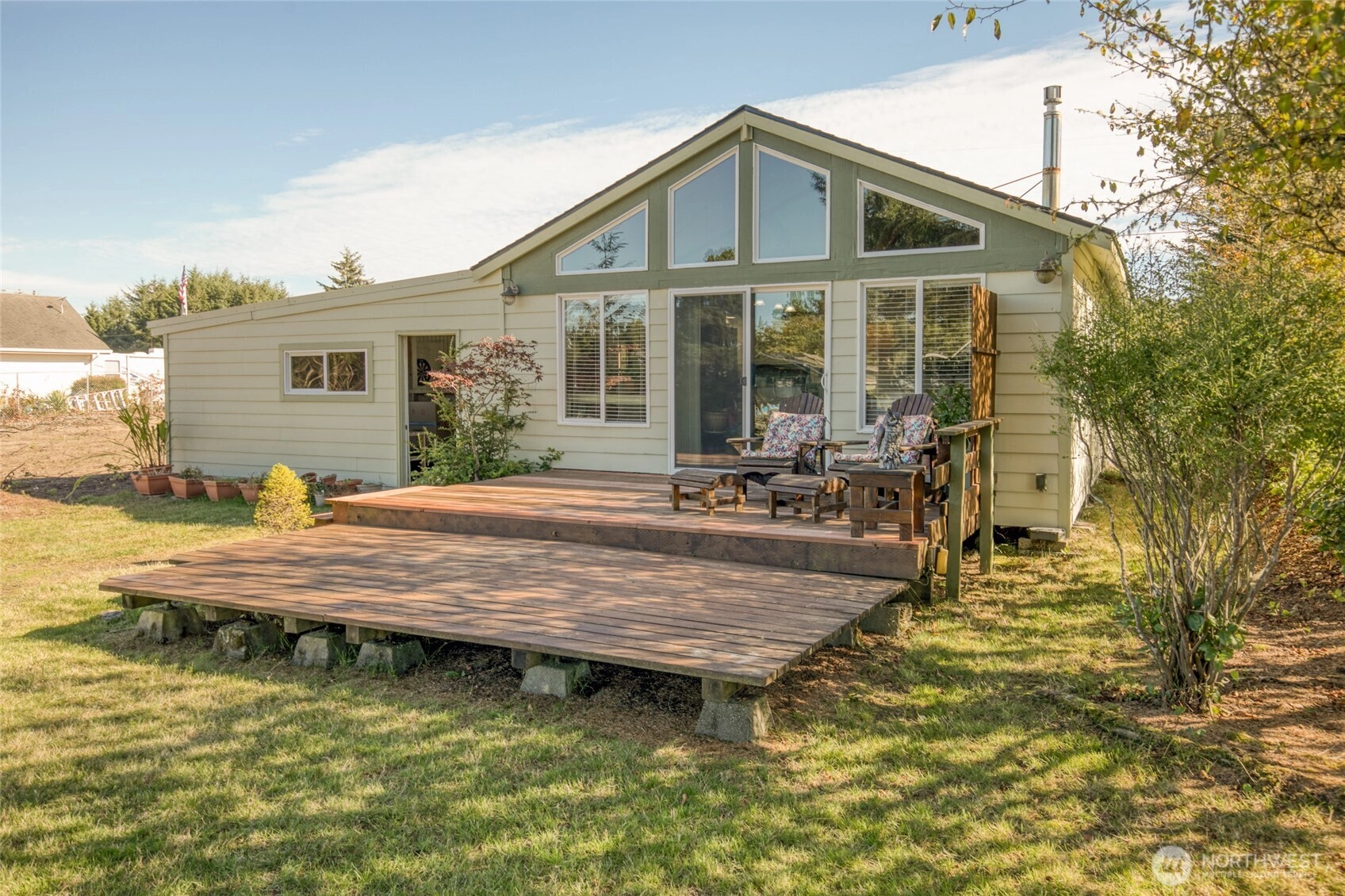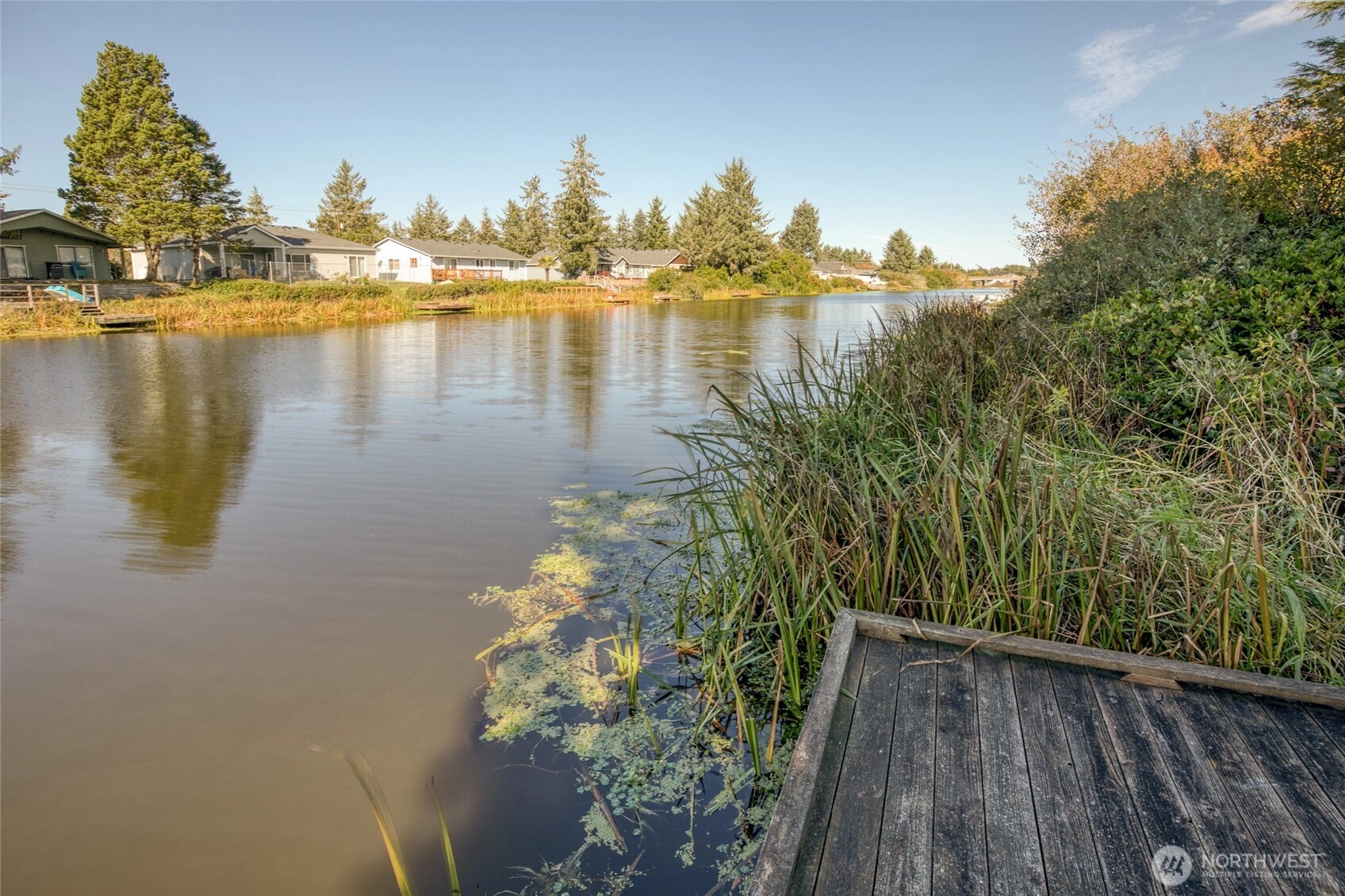 Waterfront! Situated on the Grand Canal & less than 1 mile from Public Beach Access & Community Pool - this charming home has been thoughtfully updated throughout the years including windows, roof, siding, kitchen & more! Interior features an open concept living space w/ vaulted ceilings & open beams + loft - kitchen has been fully updated w/ granite countertops, black SS appliances & beachy white cabinets. A wall of west-facing windows overlook the canal & backyard - enjoy evening sunsets & all of the wildlife that frequent our fresh waterways. Bedroom & bathroom with step-in shower. Outdoor living space includes large carport that is enjoyed year around for gardening, BBQ-ing & relaxation + 96SF of enclosed storage, oversized deck & dock.