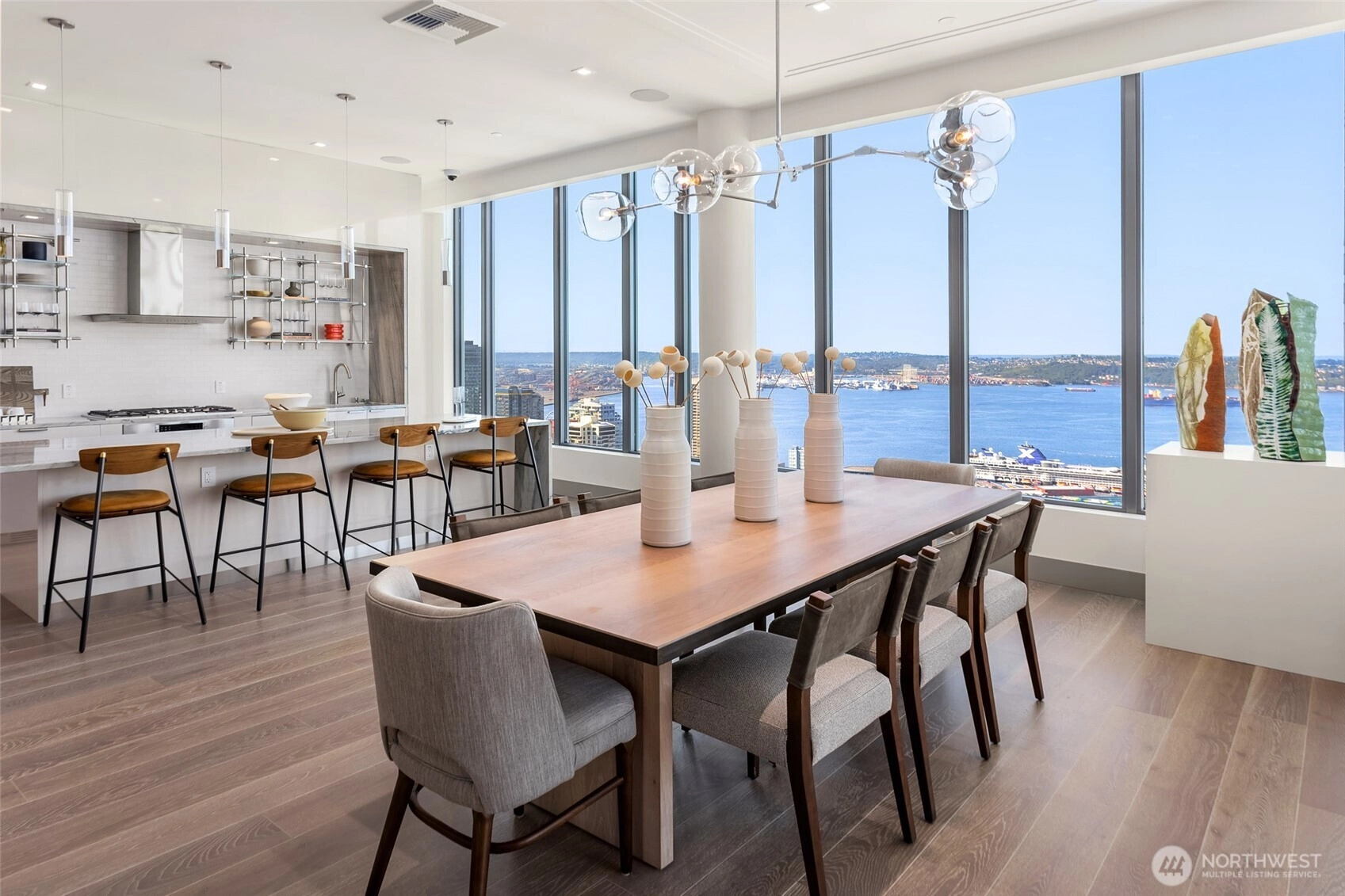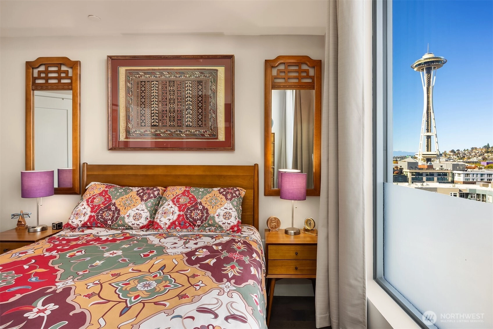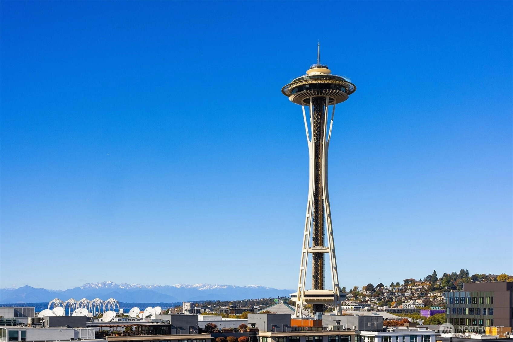 Welcome home to Spire and this lovely North facing, practically new one bedroom one bathroom home! Home #1109 has been gently loved by its owners and is in pristine condition with fresh paint. Home features custom kitchen lighting, Bosch appliances, large windows with BIG Space Needle views, a bedroom that fits king size bed with a large walk-in closet, and spacious walk through bathroom with access from entry and bedroom. Spire has top tier amenities with three floors to enjoy including a beautiful rooftop gym, private dining space, and almost 360 degree wrap around patio. Located conveniently next to South Lake Union, Belltown, and Queen Anne, Spire couldn't be closer to so many of Seattle's best restaurants, shopping, and entertainment.