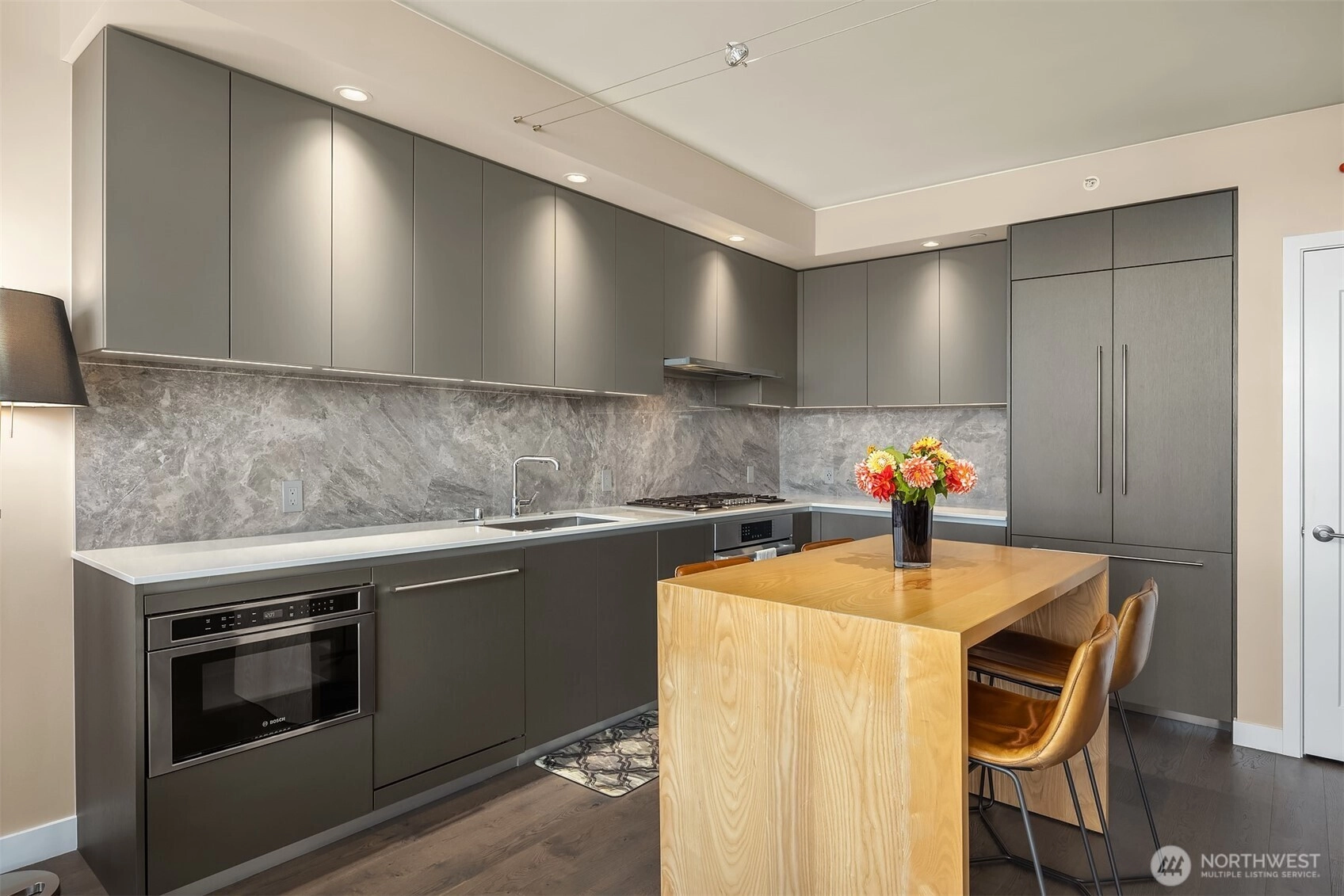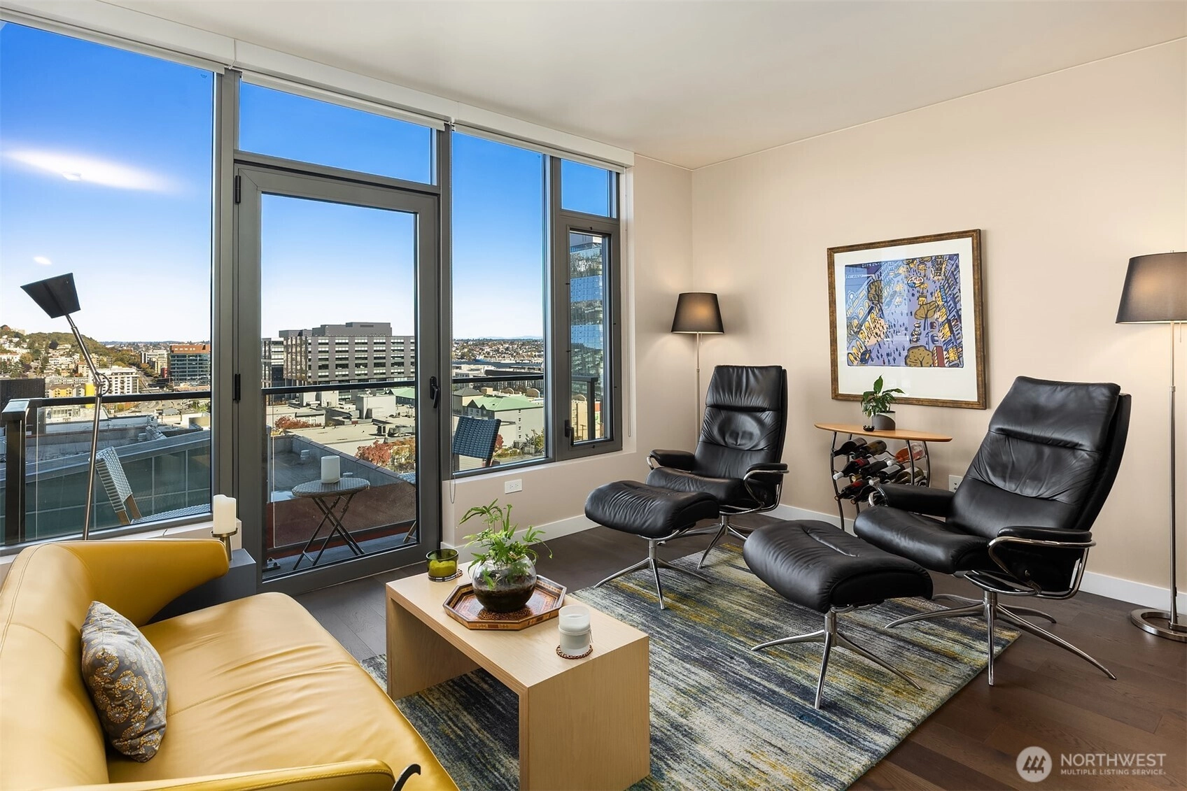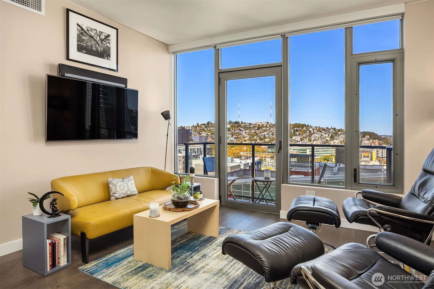 Welcome home to Spire and this lovely North facing, practically new one bedroom one bathroom home! Home #1109 has been gently loved by its owners and is in pristine condition with fresh paint. Home features custom kitchen lighting, Bosch appliances, large windows with BIG Space Needle views, a bedroom that fits king size bed with a large walk-in closet, and spacious walk through bathroom with access from entry and bedroom. Spire has top tier amenities with three floors to enjoy including a beautiful rooftop gym, private dining space, and almost 360 degree wrap around patio. Located conveniently next to South Lake Union, Belltown, and Queen Anne, Spire couldn't be closer to so many of Seattle's best restaurants, shopping, and entertainment.