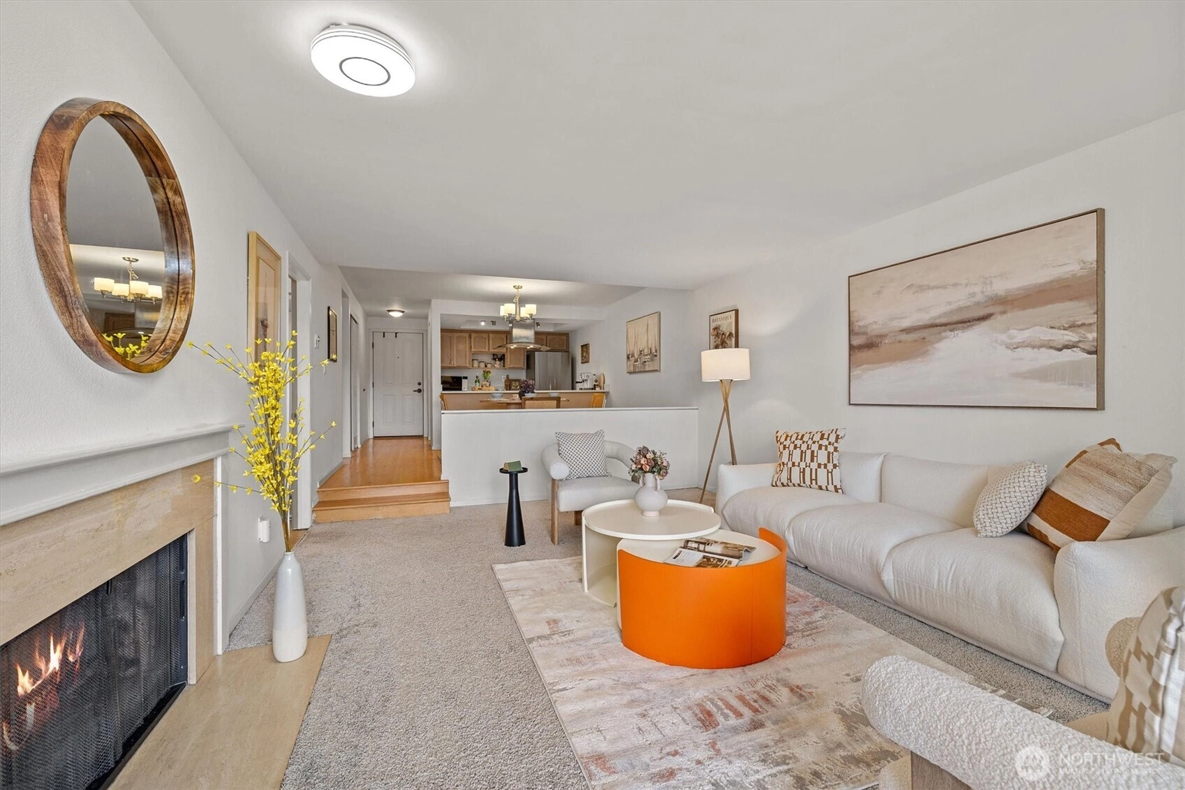 Enjoy peace of mind in this secure, gated building while experiencing the perfect blend of city convenience and quiet comfort in this west-facing home filled with natural light and open views. The spacious living area flows to a private balcony — perfect for morning coffee or sunset wine. Inside, find modern updates: quartz countertops, oak floors, newer carpet and refrigerator, plus a refreshed shower with marble-look tile. Everything you need is steps away — two storage spaces, recreation room, sauna, and outdoor pool are all on the same floor. With in-unit washer/dryer, covered & guest parking, HOA covering most utilities (even internet!), and close to tech hubs, Whole Foods, and Interbay Golf, this home makes everyday living effortless.
