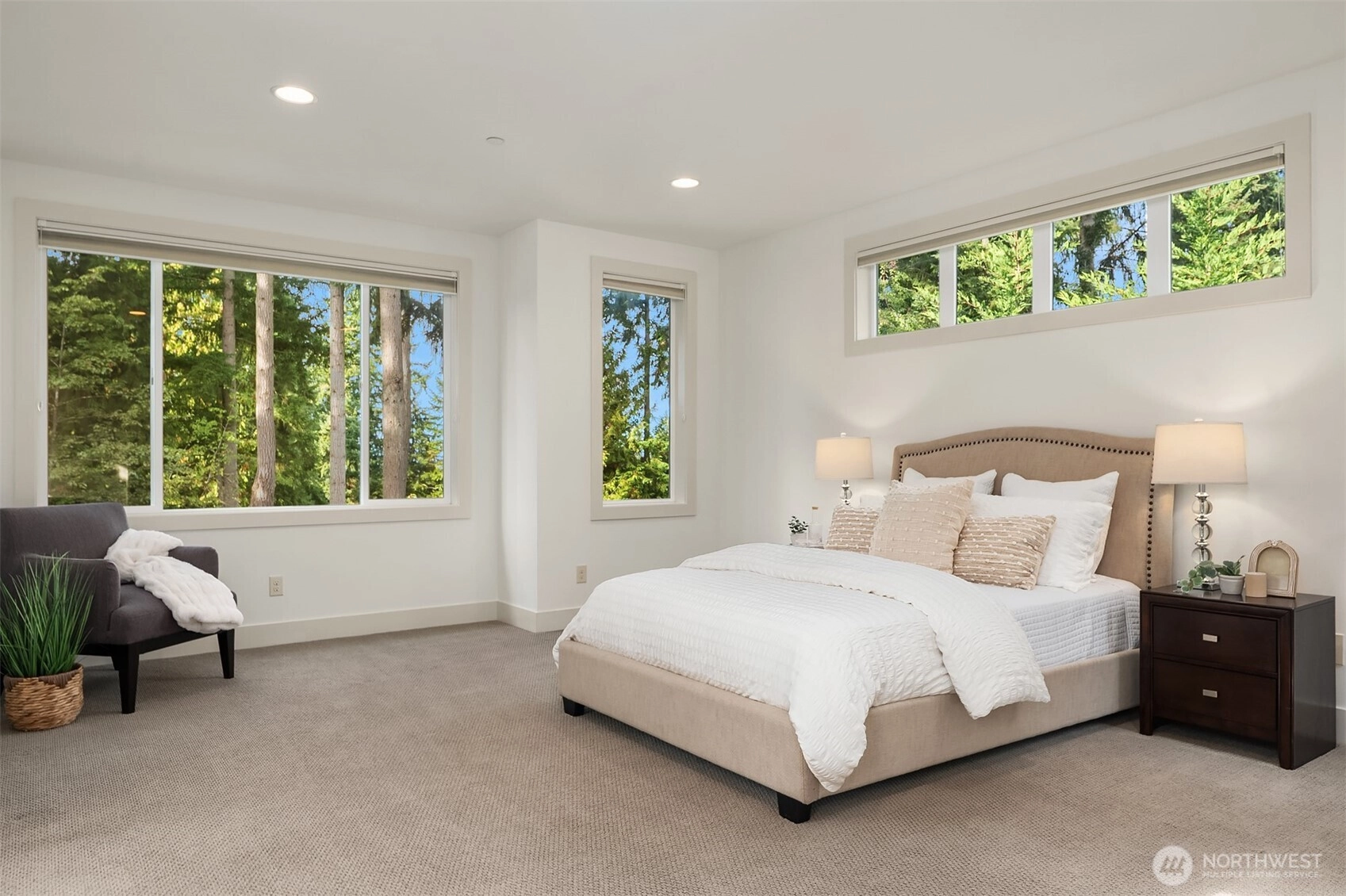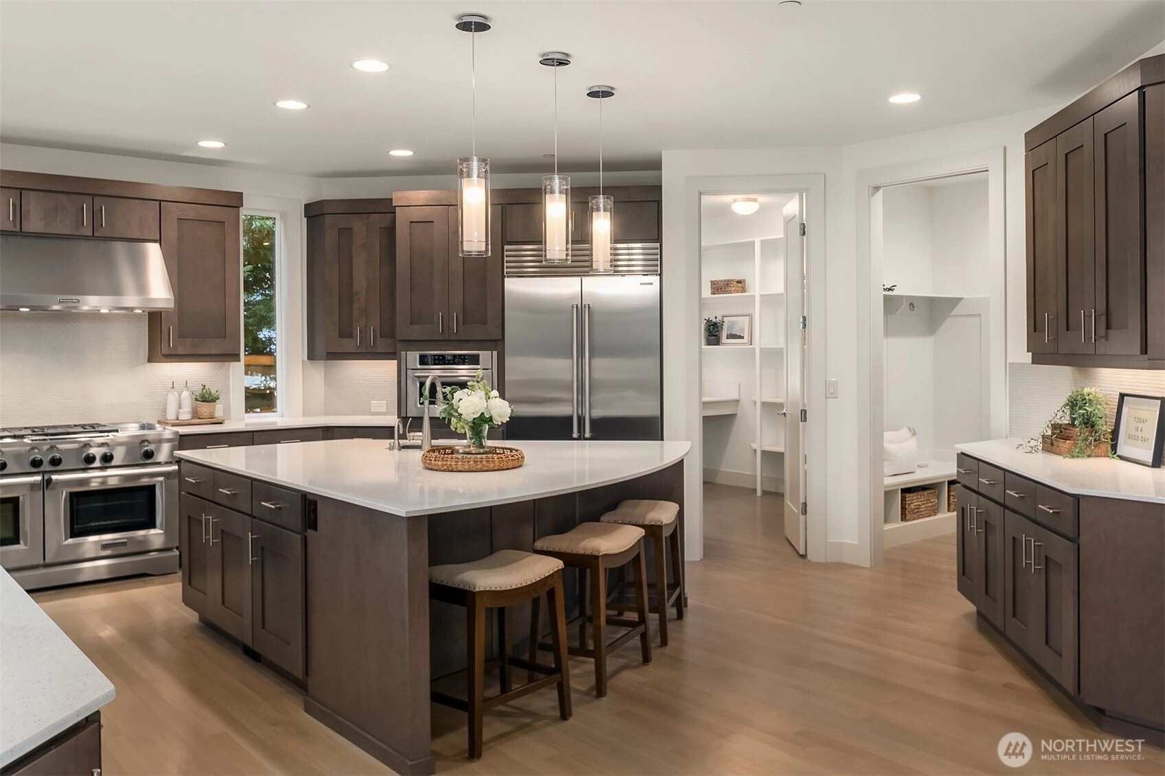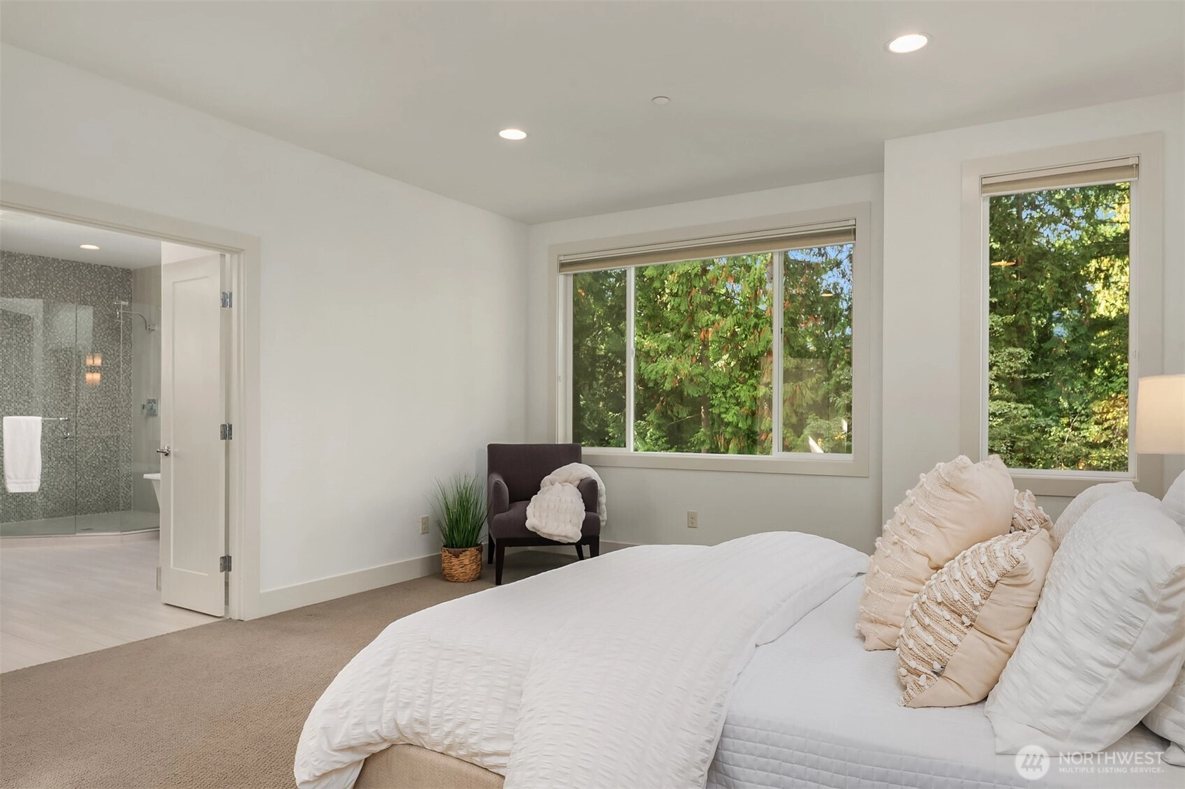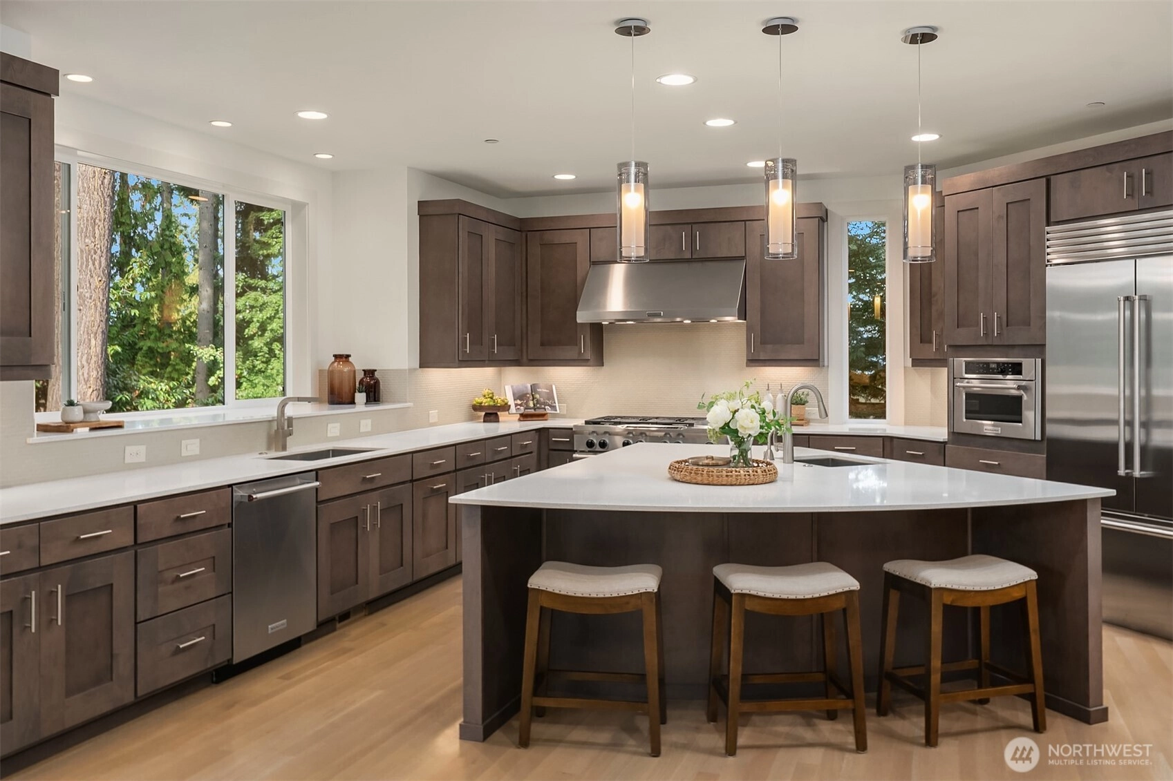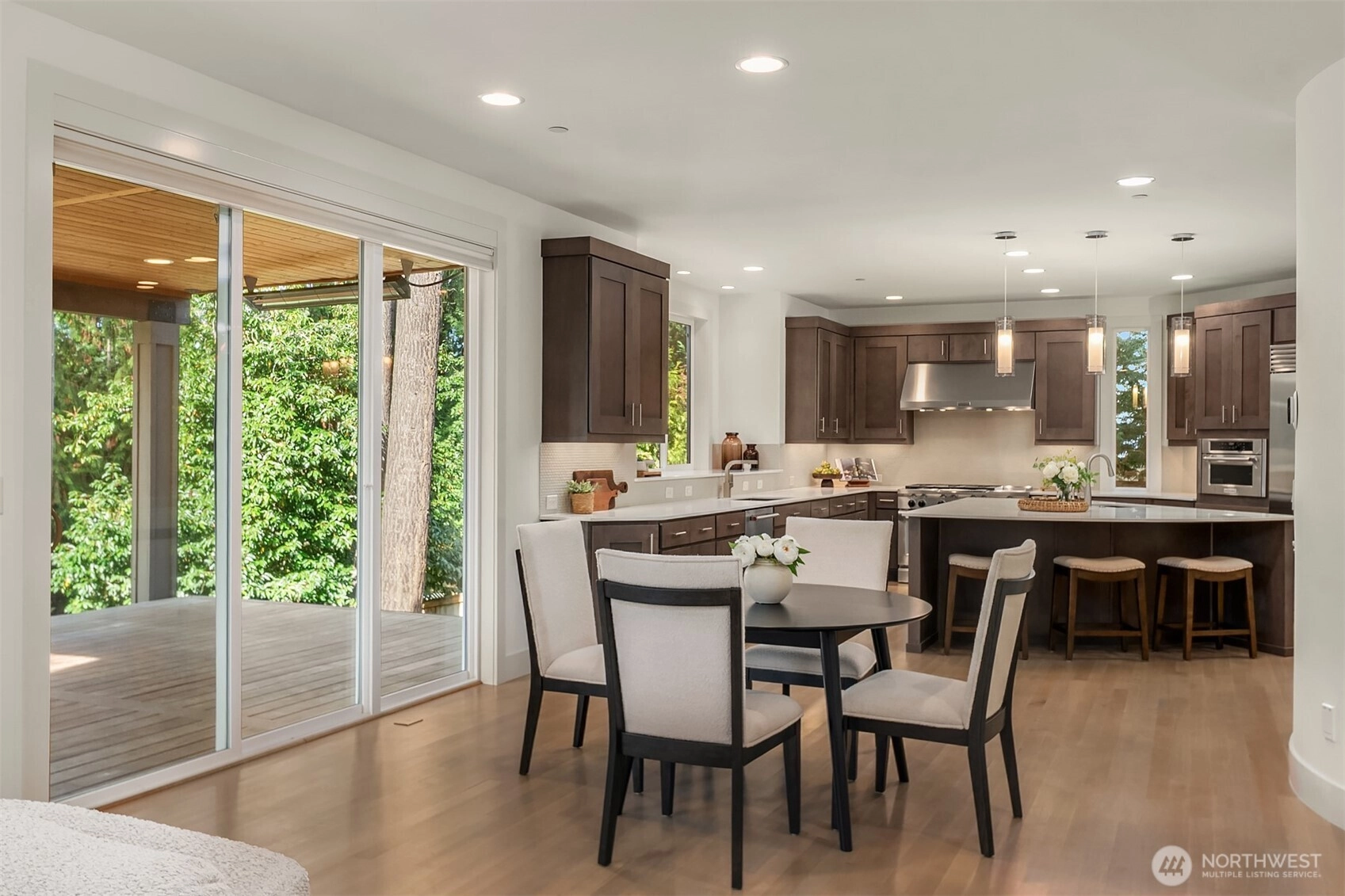 Immaculate Murray Franklyn resale in a quiet, no-thru-traffic neighborhood within coveted Bridle Trails—just minutes from I-405, Downtown Kirkland, Bellevue & Redmond. Showcasing a dramatic 2-story foyer, 9’ ceilings, walls of windows & covered heated deck providing easy year-round enjoyment. A chef-inspired kitchen w/ premium appliances opening to a spacious working pantry—an elegant prep space designed for seamless entertaining. Luxurious upstairs primary suite w/ spa-like bath & walk-in closet, plus main-floor guest suite, additional upper ensuite bedroom, bonus room, A/C, EV Charging, RARE 12K+ sqft lot & oversized 2-car garage with shop area. Top rated LWSD: Franklin Elem, Rose Hill MS, Lake Washington HS. No HOA.