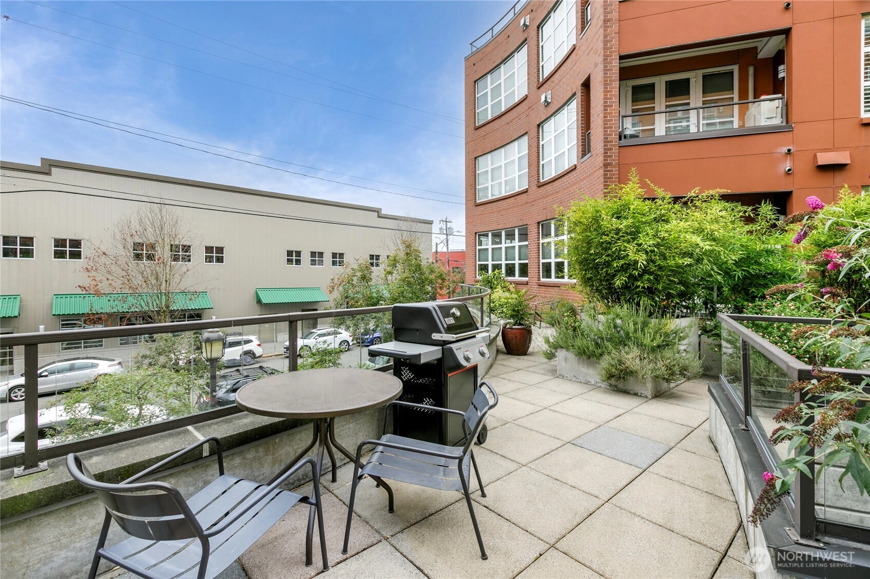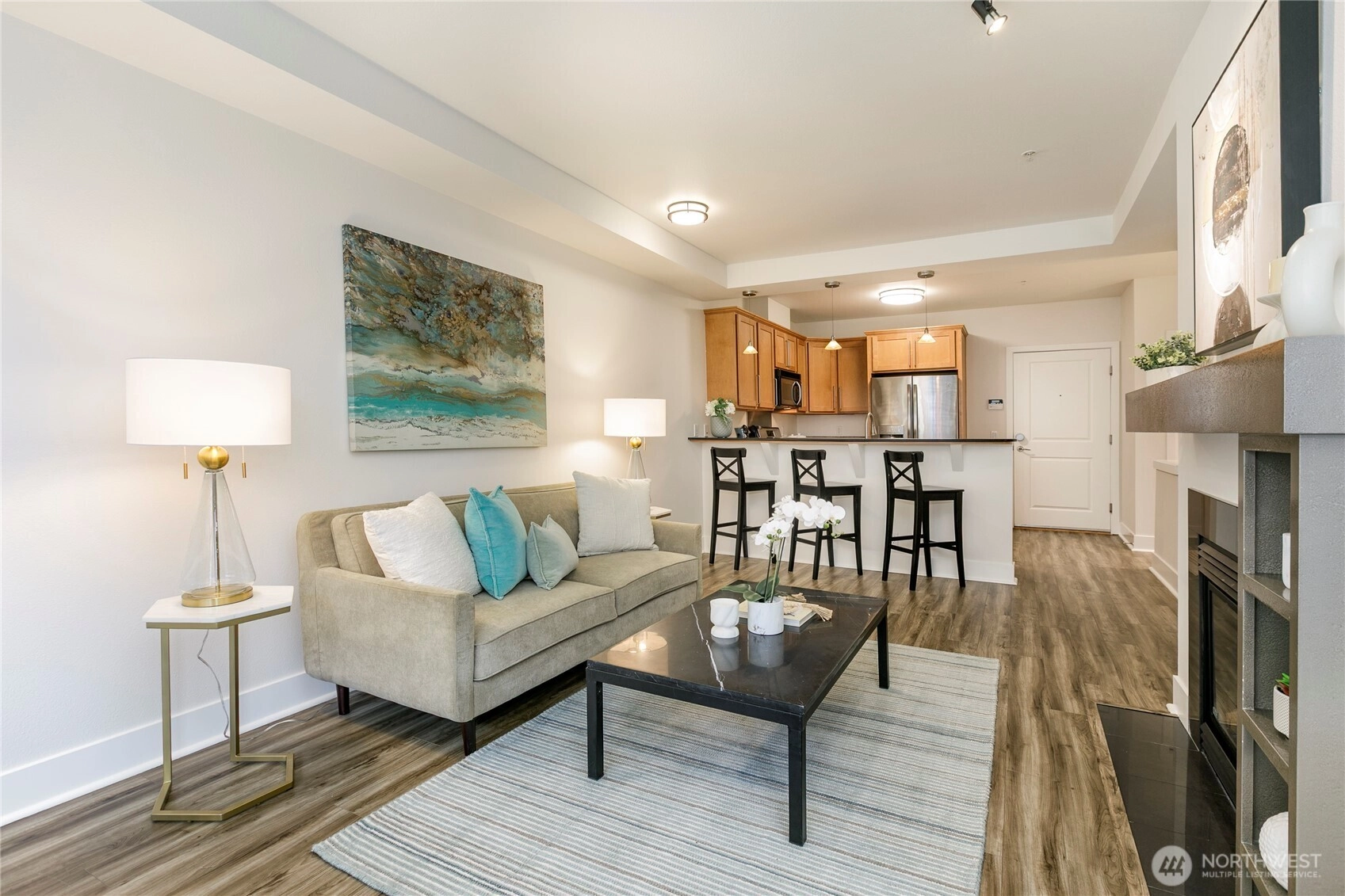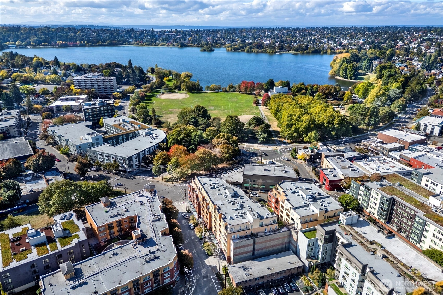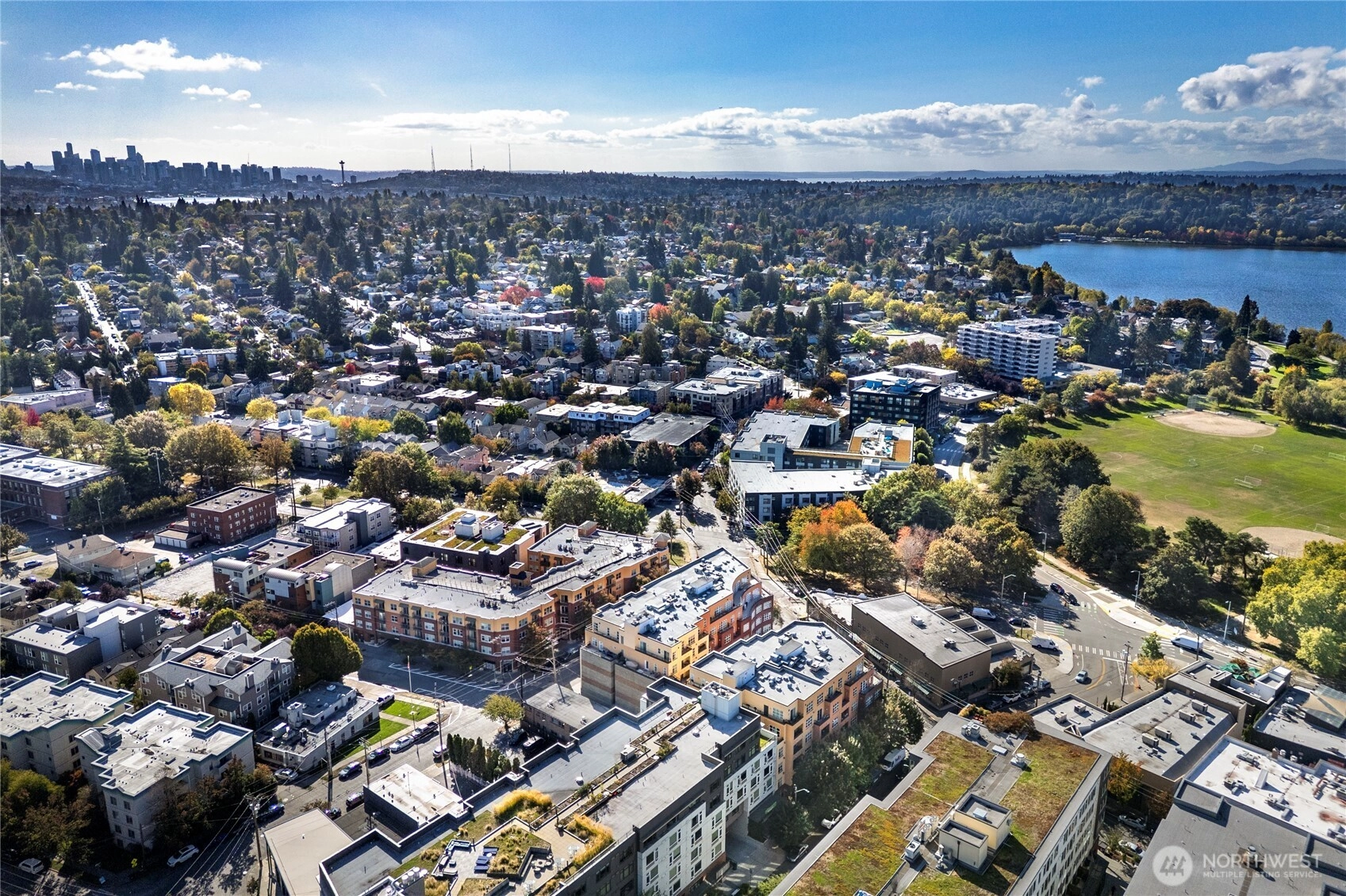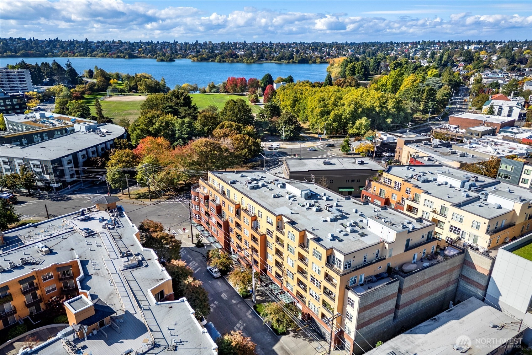 One of the most sought after areas in the city. Grab a local coffee or smoothie before your stroll around Green Lake, then the day is yours to enjoy shopping, a variety of amazing eateries, PCC, pubs, gyms, and all within steps of your front door. This chic, secure entry condo with elevator access has the perfect layout with high ceilings complimented by a wall of windows allowing in the natural light. Fresh paint, luxury plank flooring, kitchen bar seating, inviting living space with gas fireplace, huge walk-in closet, work station and a walk out deck. Extremely well run HOA with no history of special assessments. Secure garage parking and storage with owner option to purchase an EV upgrade. Convenient to I-5 & Light Rail. Pet Friendly!