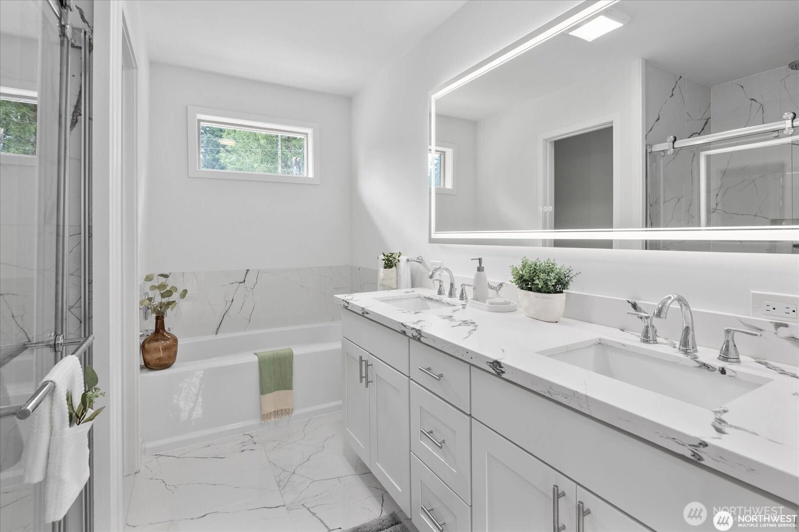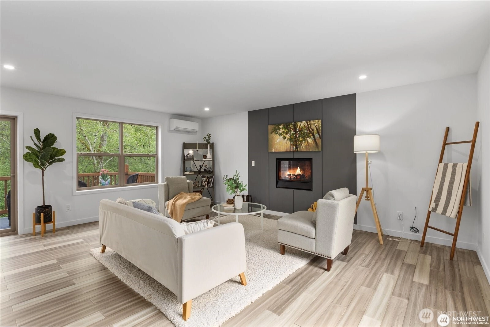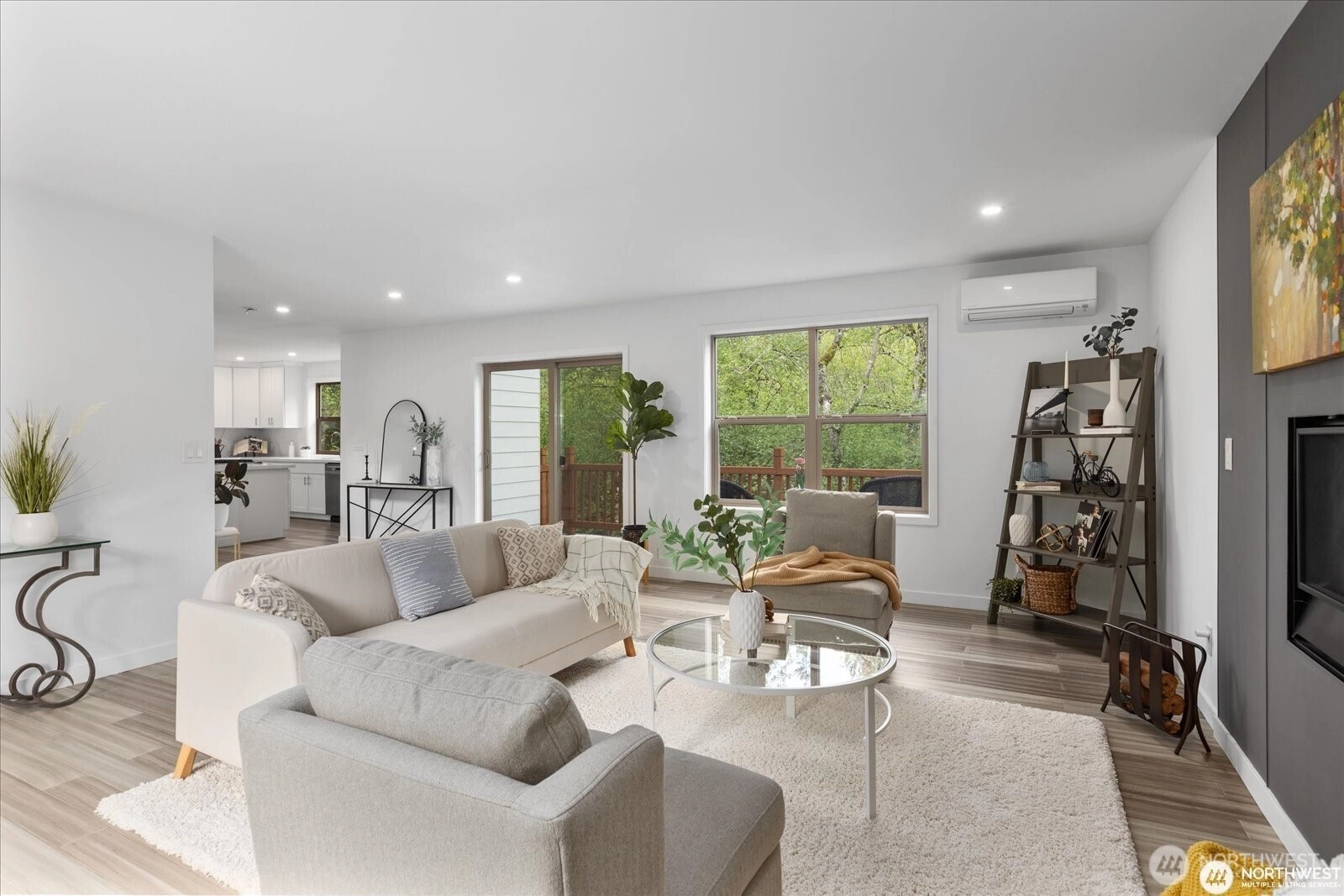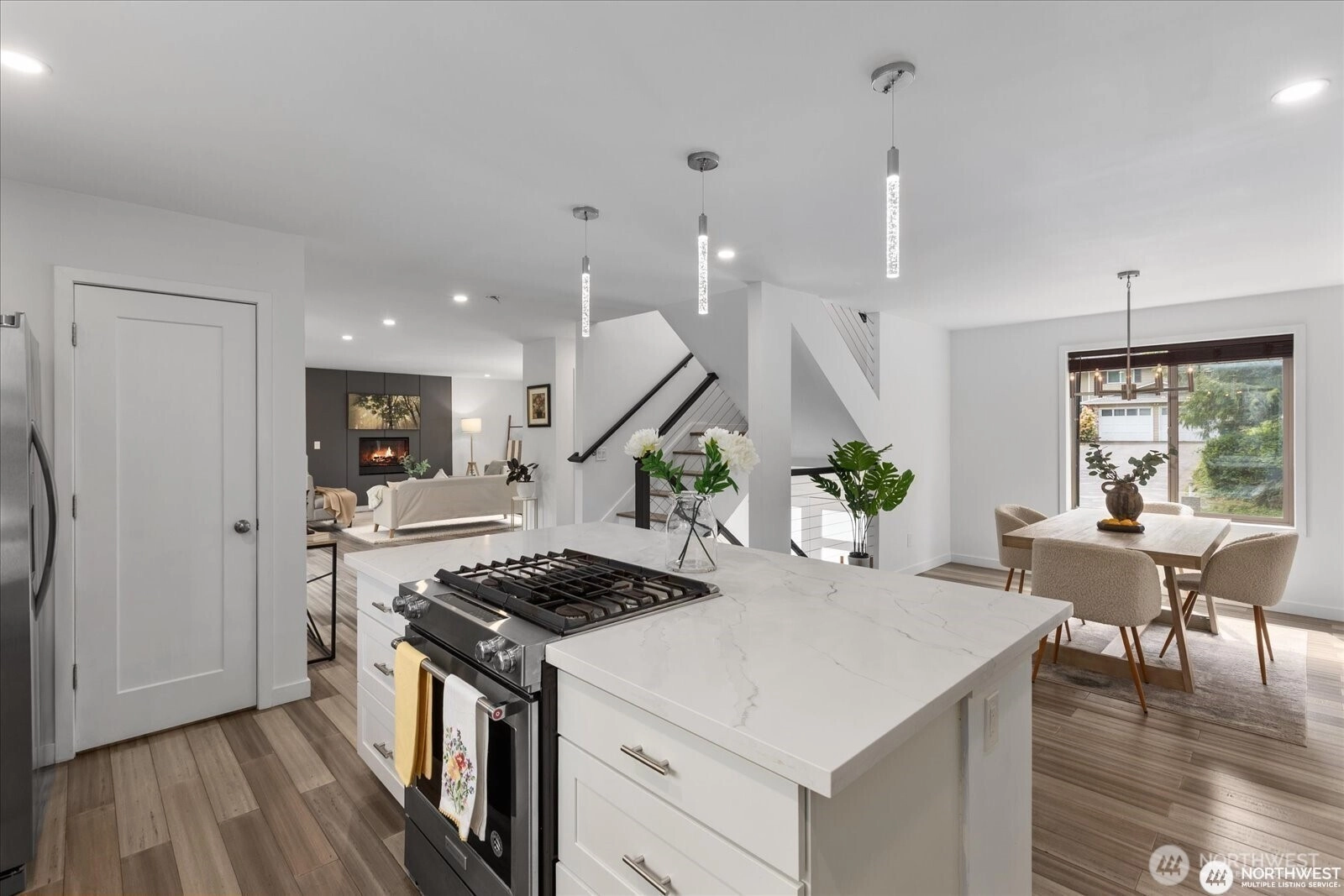 Experience elevated living in this nearly new home that blends modern luxury with Northwest charm. Open Floorplan: Chef’s dream kitchen with new stainless steel appliances, oversized island, quartz countertops, and soft-close cabinets. Spacious Living Area: Enjoy year-round comfort with A/C for summer and a cozy gas fireplace for cool nights. Primary Suite Retreat: Luxurious suite with custom lighting and a spa-inspired bath. Versatile Space: 4 bedrooms, including a flexible area for a home office or guest room. Outdoor Living: Deck with serene forest views, perfect for alfresco dining. Pre-inspected and move-in ready—this upscale home is ideal for multigenerational living with minimal yard maintenance!