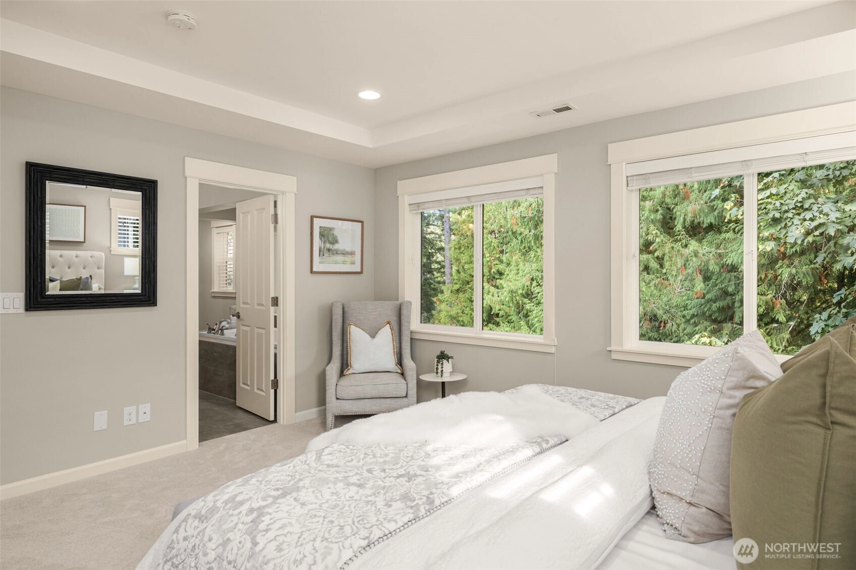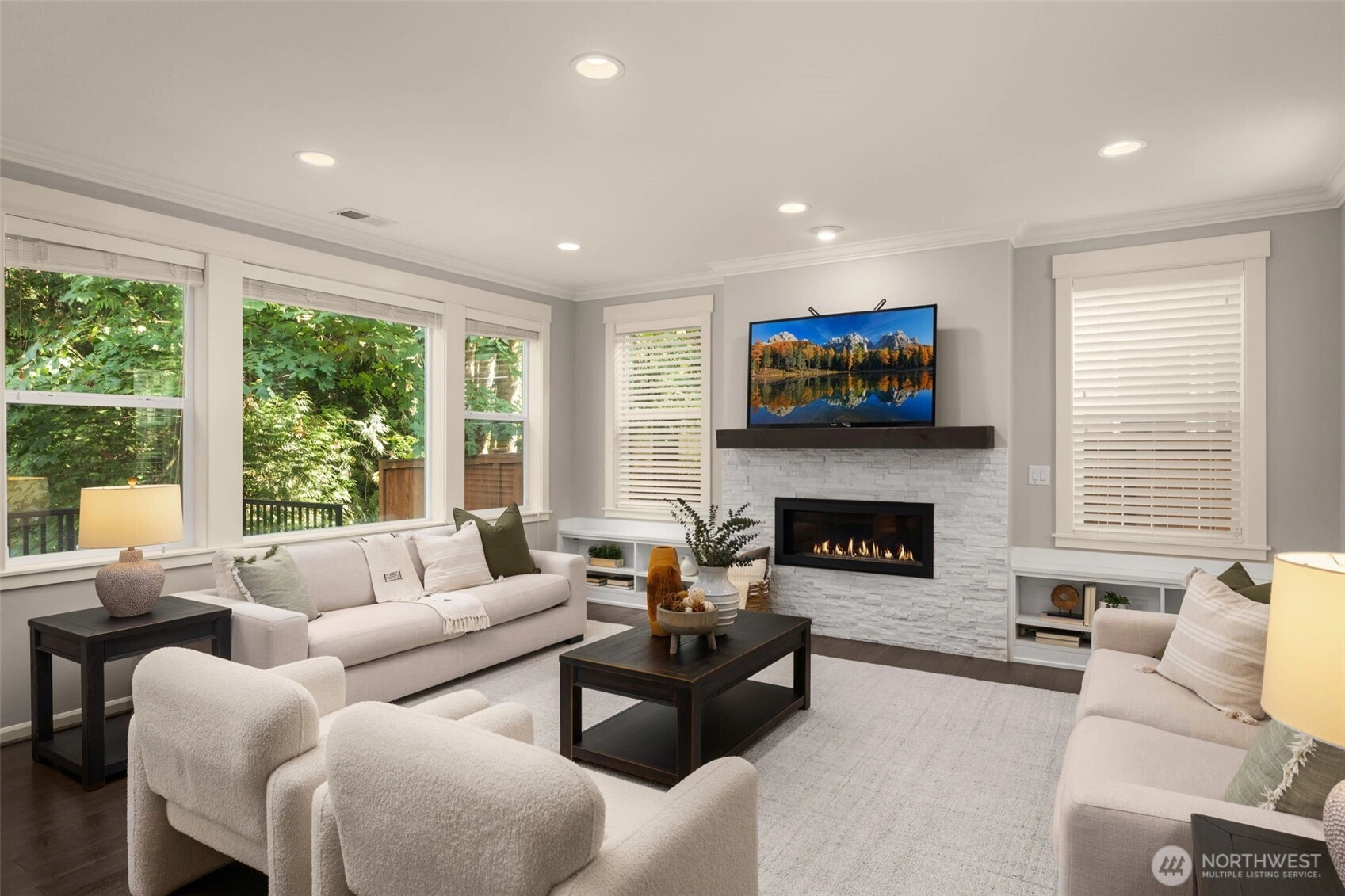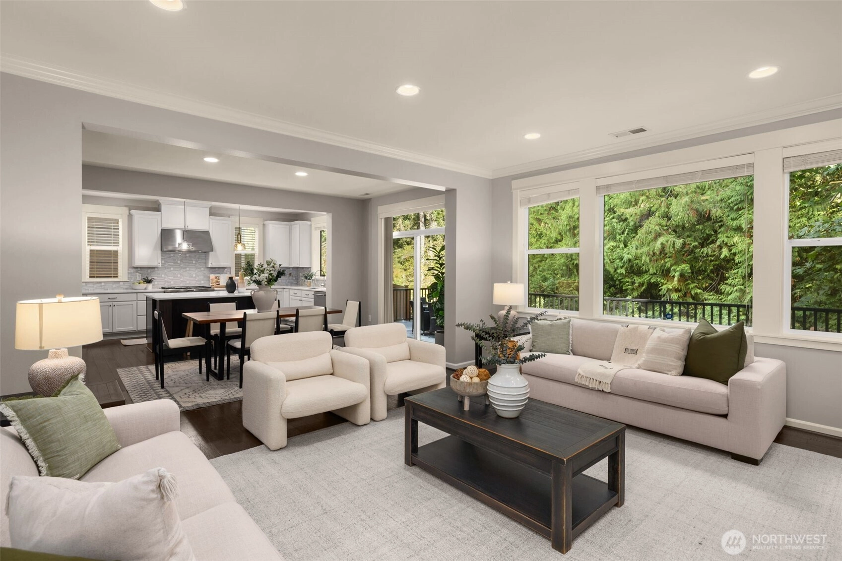 WoodHaven is a Toll Brothers community, and this beautifully maintained home backs to a protected greenbelt for ultimate privacy. Enjoy the freshly painted interior and new carpet throughout. The second floor features four bedrooms, a loft, laundry, and office area. The owner’s suite offers a spa-like bath and spacious California walk-in closet. The chef’s kitchen boasts high-end appliances, gas range, quartz counters, and tall cabinets—open to the living room and both formal and casual dining areas. Community includes two parks with play areas, picnic spaces, and grassy lawns. Lake Washington School District. Easy commute to Microsoft, Costco, and Downtown Redmond.