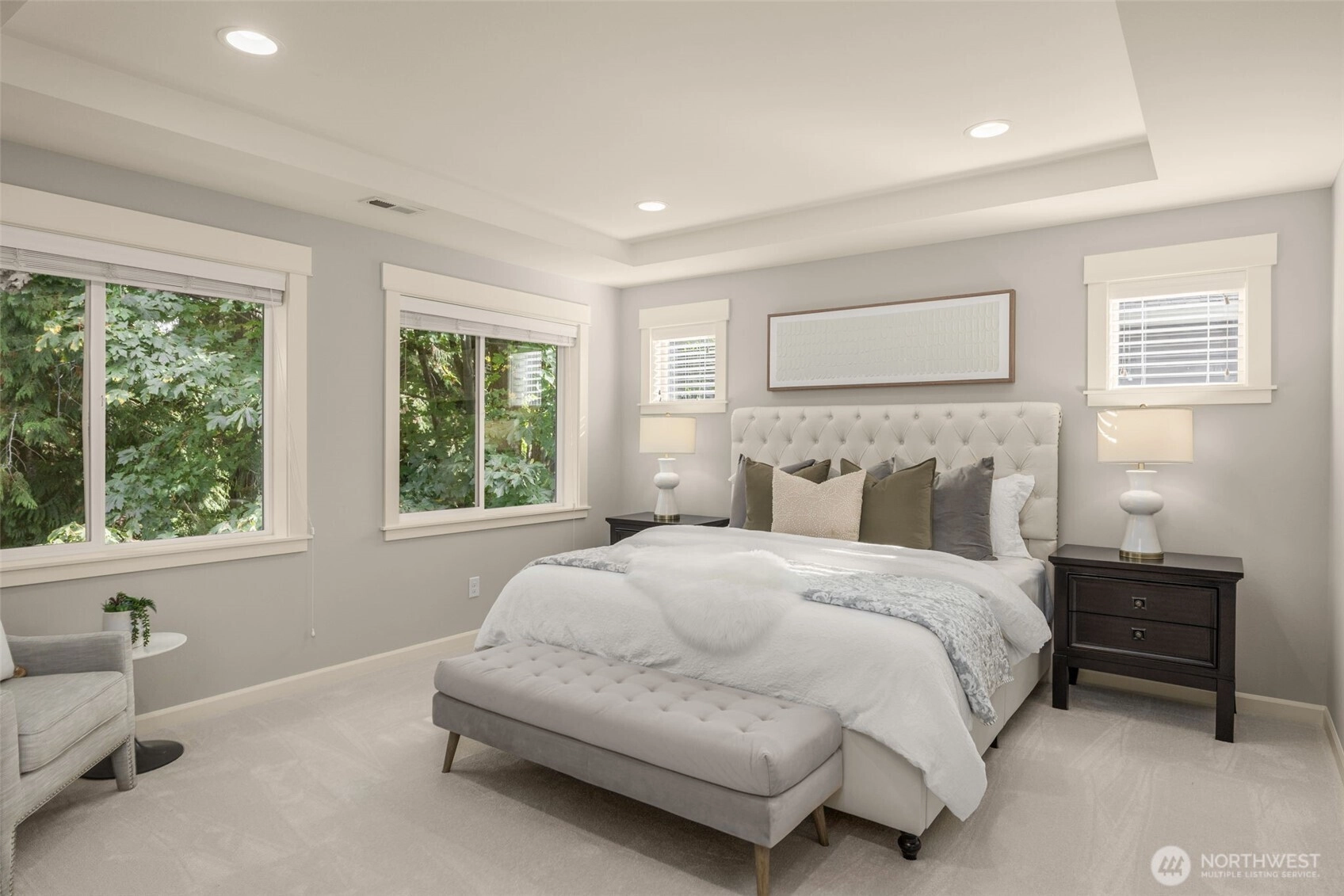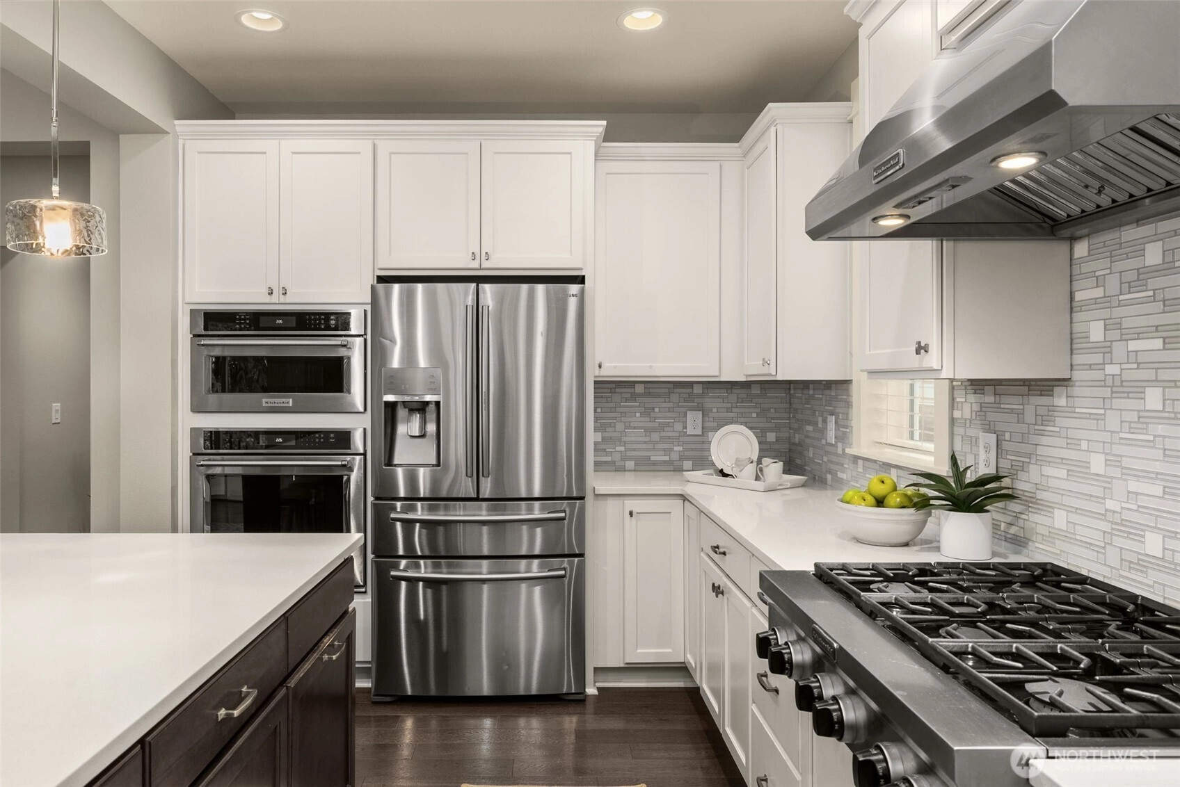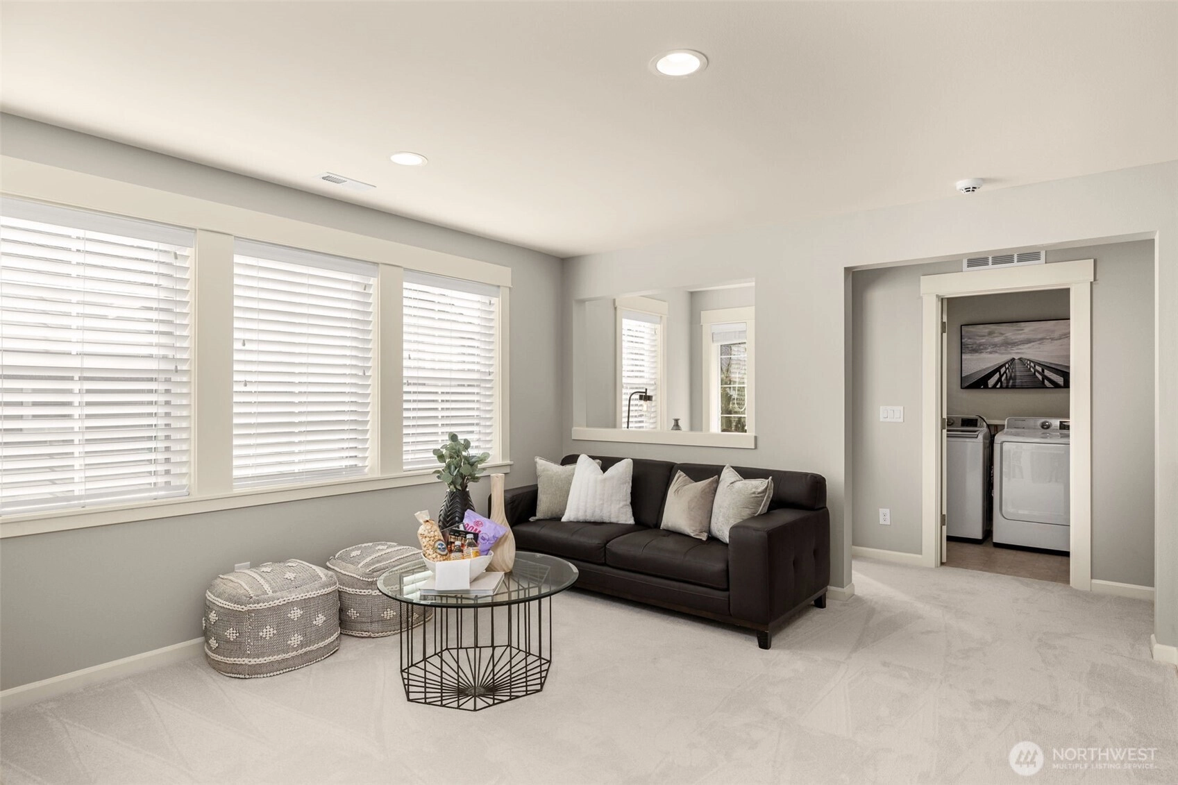 WoodHaven is a Toll Brothers community, and this beautifully maintained home backs to a protected greenbelt for ultimate privacy. Enjoy the freshly painted interior and new carpet throughout. The second floor features four bedrooms, a loft, laundry, and office area. The owner’s suite offers a spa-like bath and spacious California walk-in closet. The chef’s kitchen boasts high-end appliances, gas range, quartz counters, and tall cabinets—open to the living room and both formal and casual dining areas. Community includes two parks with play areas, picnic spaces, and grassy lawns. Lake Washington School District. Easy commute to Microsoft, Costco, and Downtown Redmond.