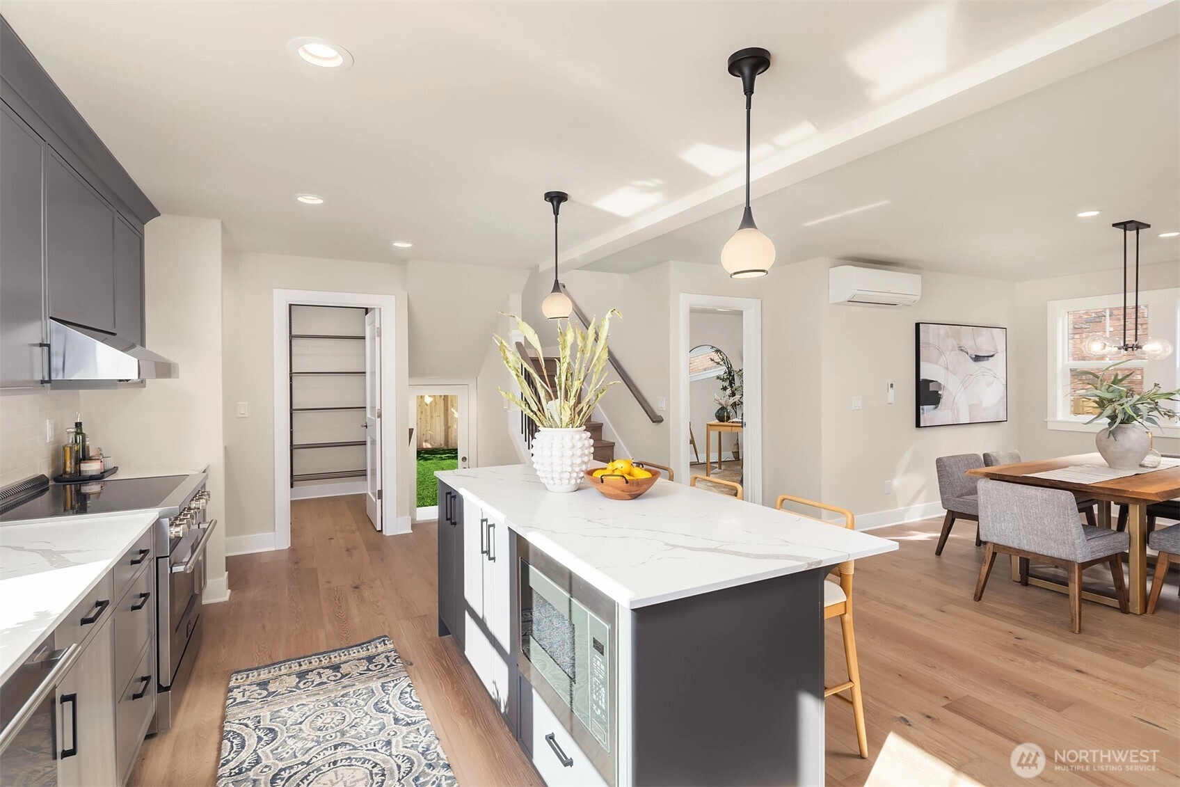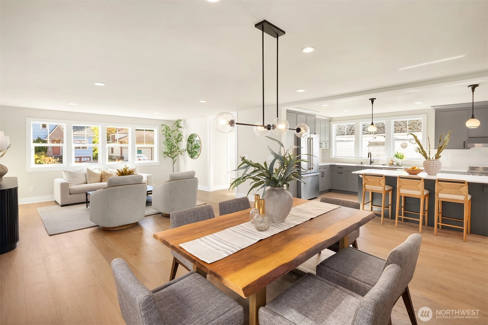 Just blocks north of Green Lake, this beautifully refreshed five-bedroom home perfectly blends timeless charm with modern comfort. The bright, open main level features a stunning open concept layout with spacious kitchen with walk-in pantry. Main floor also host ideal home office or guest room, and convenient powder bath for entertaining. Upstairs, discover three bedrooms including a serene primary suite with a stunning custom bath. The lower level offers a versatile bonus room, additional bedroom, and full bath. Enjoy a fully fenced sizable backyard, one-car garage, and inviting front yard with great curb appeal—all near Green Lake, Woodland Park, and top local dining.