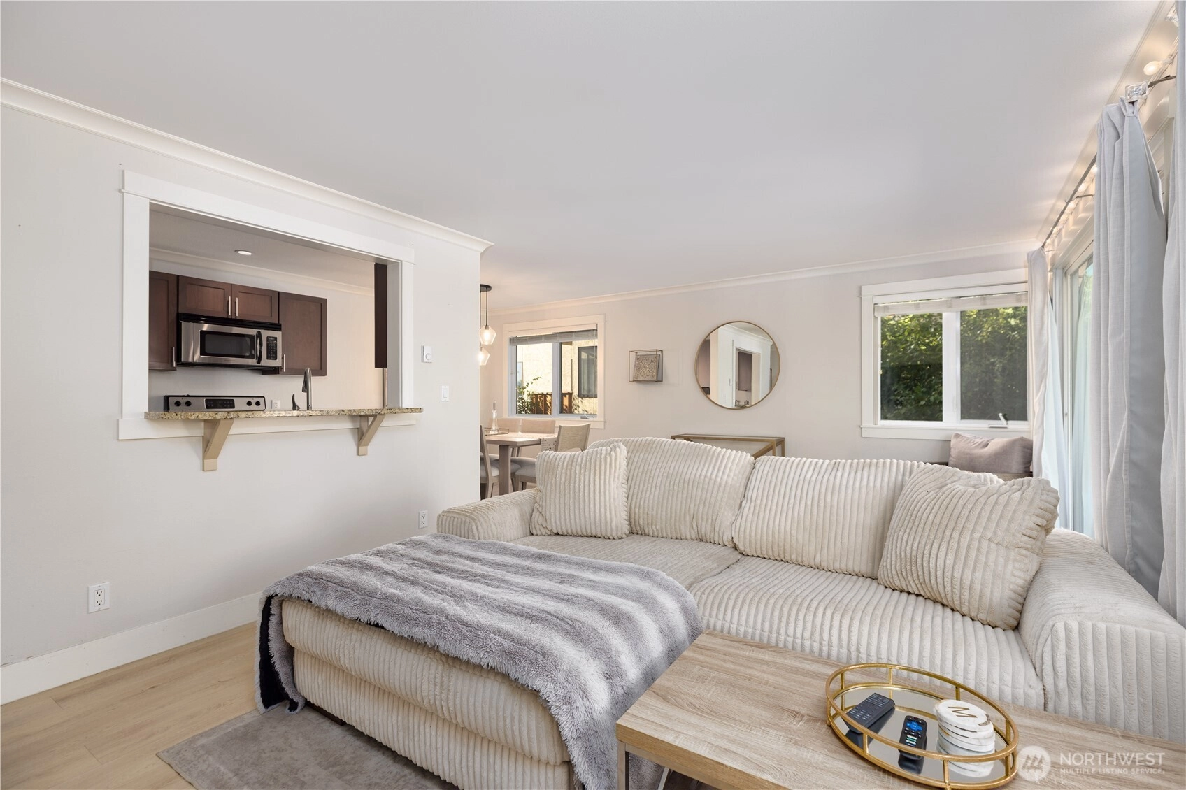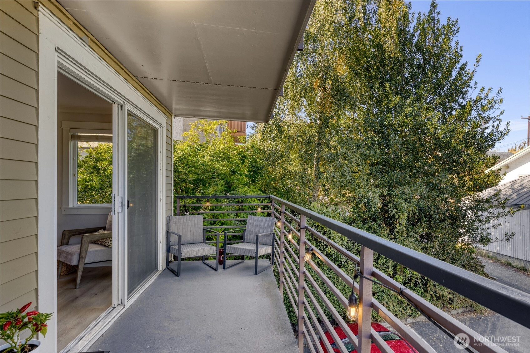 Welcome to this bright and stylish two-bedroom corner end-unit featuring 2022 LVP flooring, upgraded modern lighting, and only one shared wall for added privacy! The inviting living room flows into a kitchen with stainless steel appliances, granite countertops, and direct access to a spacious covered balcony—perfect for relaxing or entertaining. Enjoy the convenience of an in-unit washer/dryer and a designated parking space, with HOA covering WSG. Nestled in the heart of Ballard, a walker’s paradise, you’re moments from trendy shops, parks, the Sunday Market, and incredible dining!