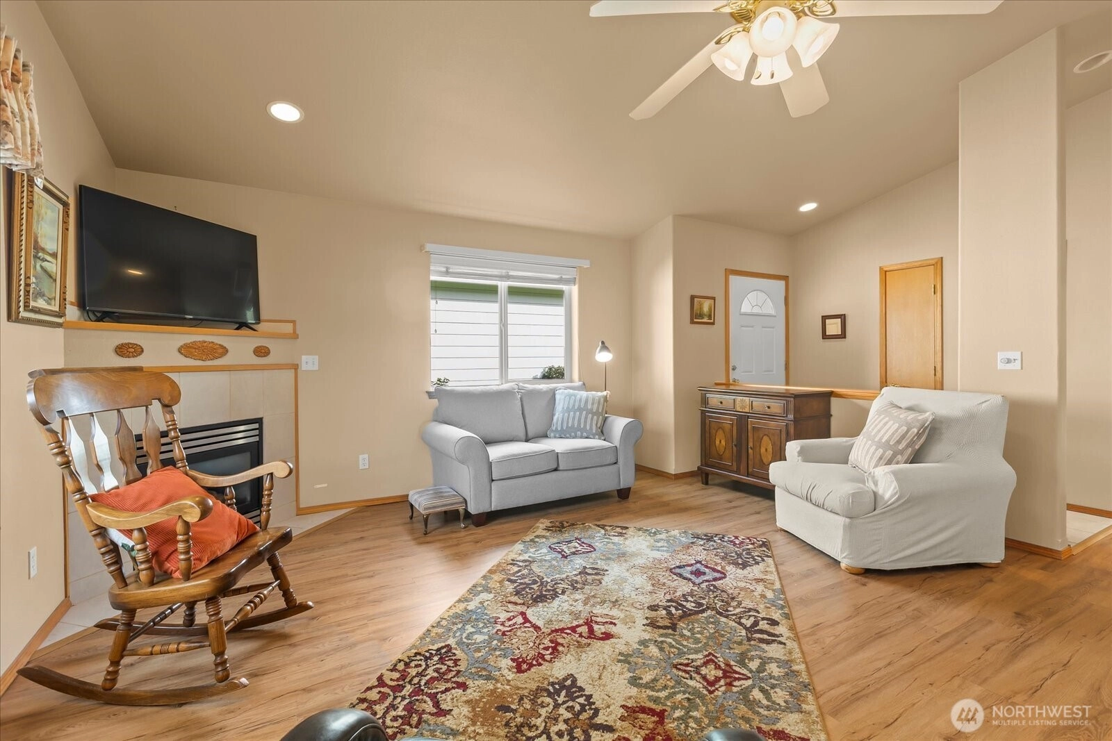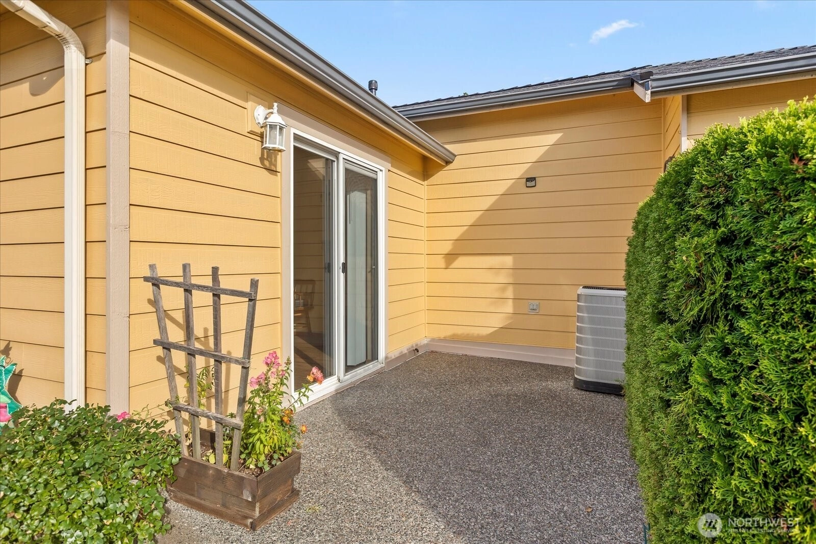 Charming 1-level cottage (no stairs!) in highly sought after 55+ community in Marysville! Centrally located, this light and bright 1,198 sq ft home features an open concept floor plan with vaulted ceilings, newer LVP flooring throughout, gas fireplace and A/C! Primary bedroom with ensuite, walk-in closet and access to private patio with room for a hot tub. The covered back patio overlooks a community park and partially fenced yard. Newer roof and exterior paint too! HOA includes lawn maintenance and onsite RV storage area! Community garden area with gazebo, firepit and horseshoes. Easy access to I-5 and amenities.