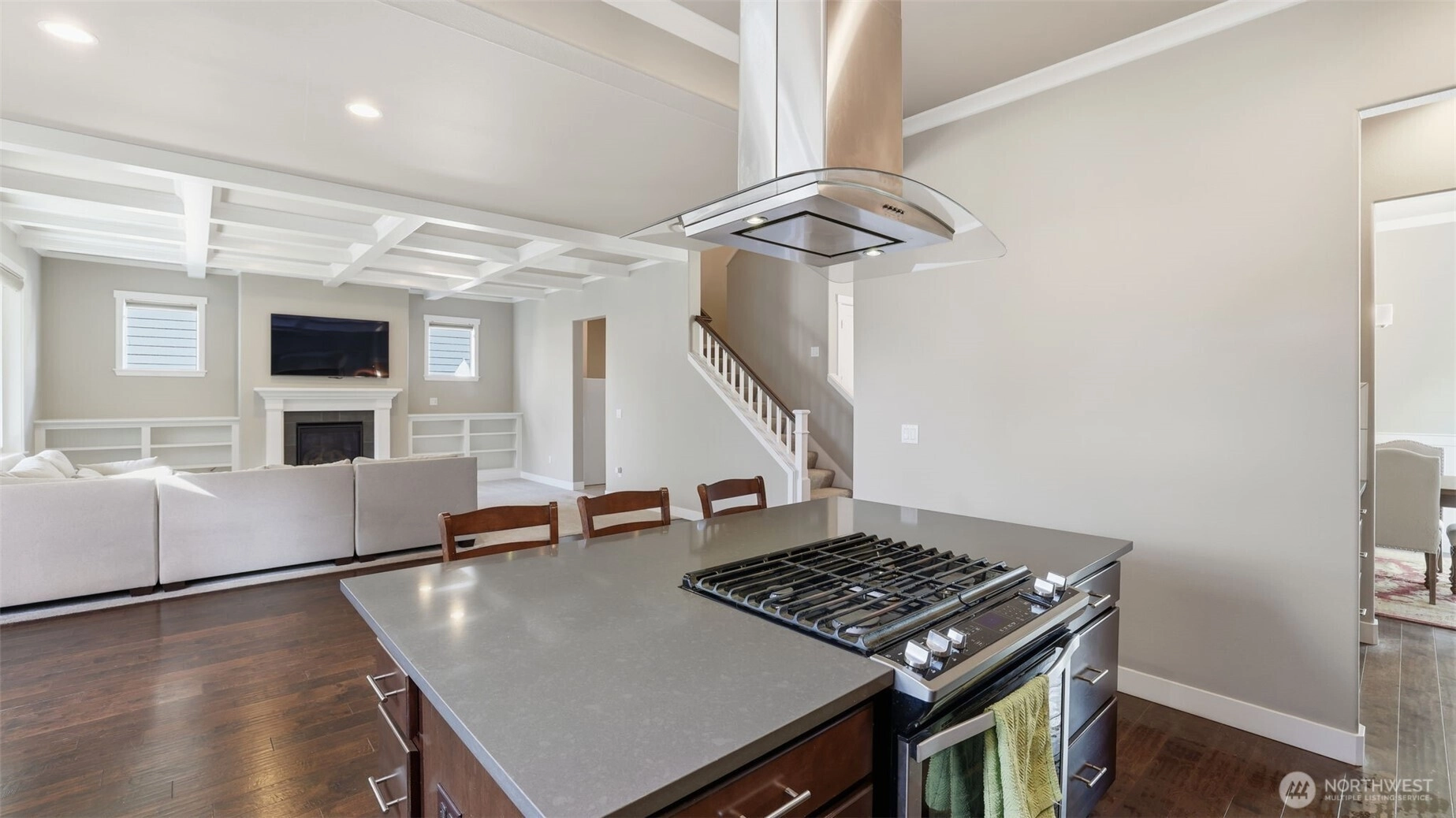 Welcome to this beautifully designed home w/ high-end finishes. Main level boasts 10’ ceilings, elegant crown molding, box beam ceilings, wainscoting wall panels, cozy gas fireplace surrounded w/ built-in shelving, office/den, formal dining room, & a mudroom. The chef’s kitchen is an entertainer’s dream, featuring quartz countertops, SS appliances, a butler’s pantry, & an open-concept layout that flows seamlessly into the main living space. Upstairs, you’ll find 9’ ceilings, laundry room w/ sink, bonus room & a loft area. The primary suite includes a second gas fireplace, a luxurious five-piece spa-style bathroom, & a spacious walk-in closet. Conveniently located minutes from freeways, shopping, dining, parks & downtown Covington. Must See!