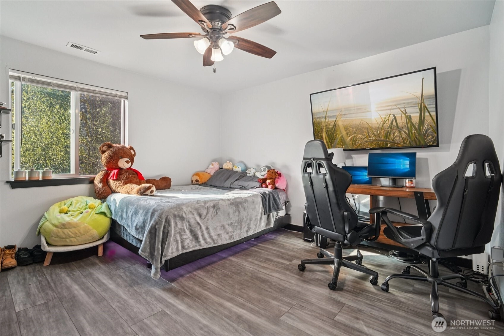 Step into this stunning home featuring an open, light-filled layout designed for comfort and versatility. The modern kitchen shines with shaker cabinets, stainless steel appliances, ample built in storage, and plenty of counter space. Enjoy a spacious primary suite with a luxurious 5-piece bath and walk-in closet. French doors open to a flexible den, office, or 6th bedroom, with three additional bedrooms and a full bath upstairs. The main level includes a guest bedroom, full bath, and convenient laundry room. A fully enclosed sunroom leads to the large backyard with a paved patio, basketball hoop, and a low-maintenance turf front yard plus a 3-car garage. Move in ready! Carpet on stairs to be replaced w/same flooring as remainder of home.