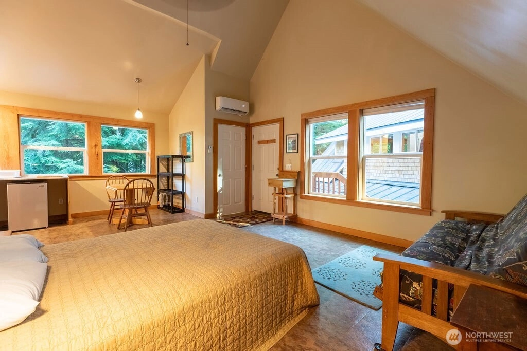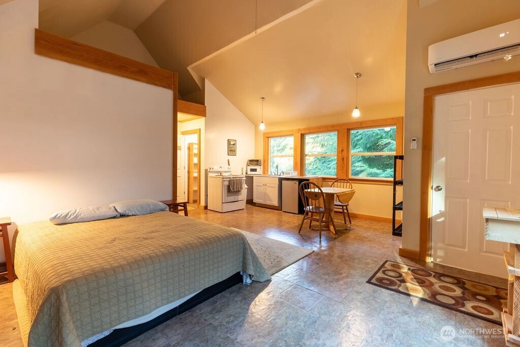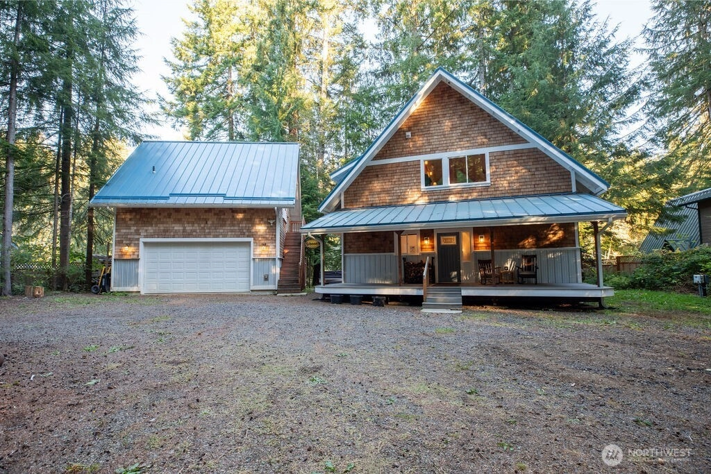 Gorgeous newer home on the Sol Duc River! Enjoy stunning high-bank river views from this beautifully designed residence featuring an upstairs primary suite with ensuite bathroom and a spacious open-concept living area filled with natural light. A detached garage includes a charming mother-in-law studio, perfect for guests or use as a short-term rental. Relax or entertain on the expansive deck with hot tub overlooking the river. just half a block from the boat launch for easy access to fishing, kayaking, and river adventures. The driveway accommodates boats and RVs with ease, making this at the perfect home base for northwest recreation and peaceful living along the Sol Duc.