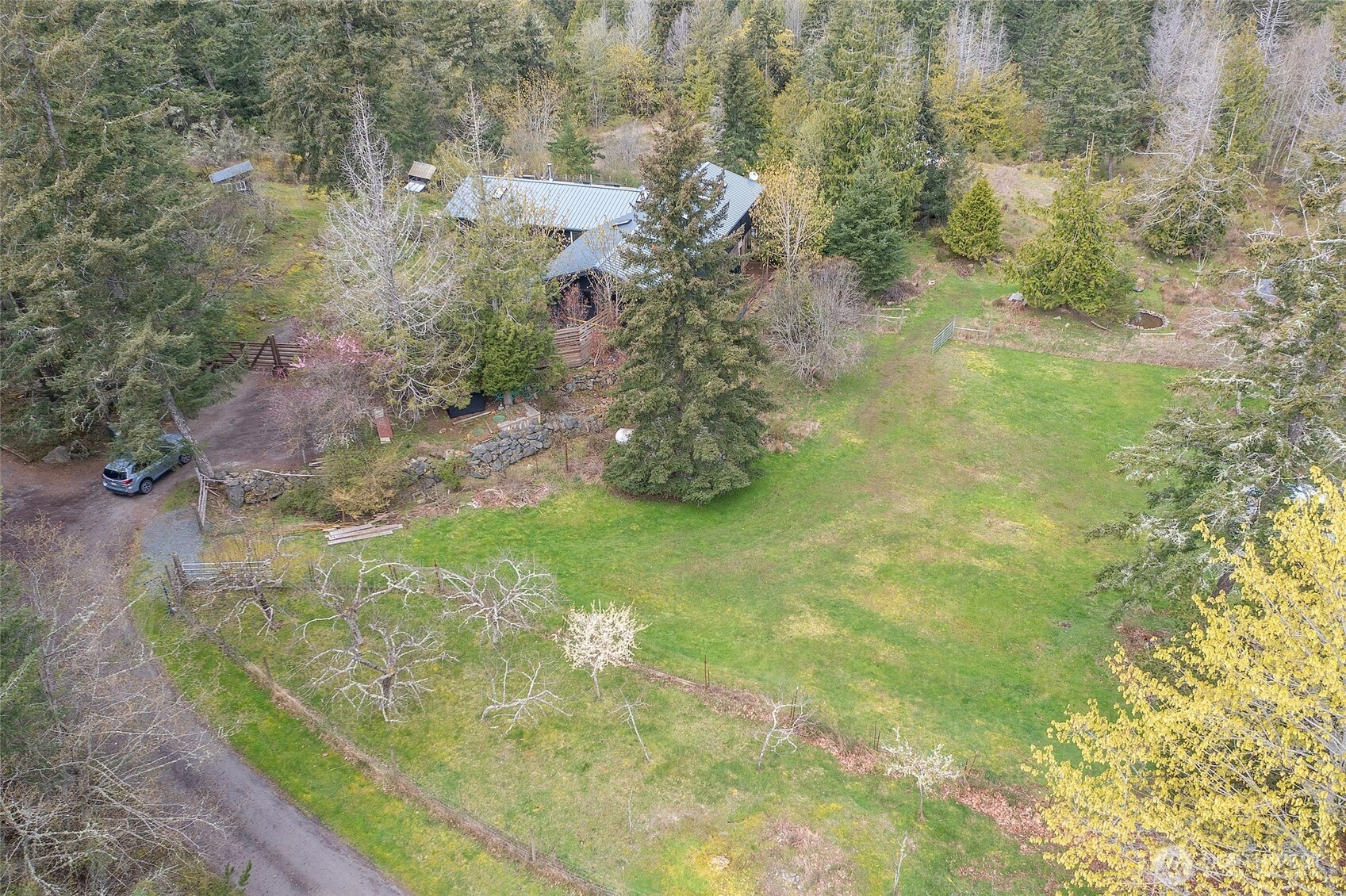 Discover serene farm living on this picturesque 6.5-acres, offering sun-drenched, west-facing views of Turtleback Mountain & Crow Valley. Charming 3-bedroom, 2-bath home features an open-concept great room, perfect for entertaining, w/ a large kitchen island and a cozy wood stove. The primary suite has been updated with new hardwood flooring and a refreshed bathroom. The property boasts excellent equestrian or small-farming potential with 2 acres of fenced pasture, a pond, and an established orchard (pears, peaches, and plums). Additional features include a detached tiny writer's cabin, 2 car garage, a drilled well that syncs with rainwater catchment. The seller is motivated and open to all offers. Come see this idyllic island retreat!