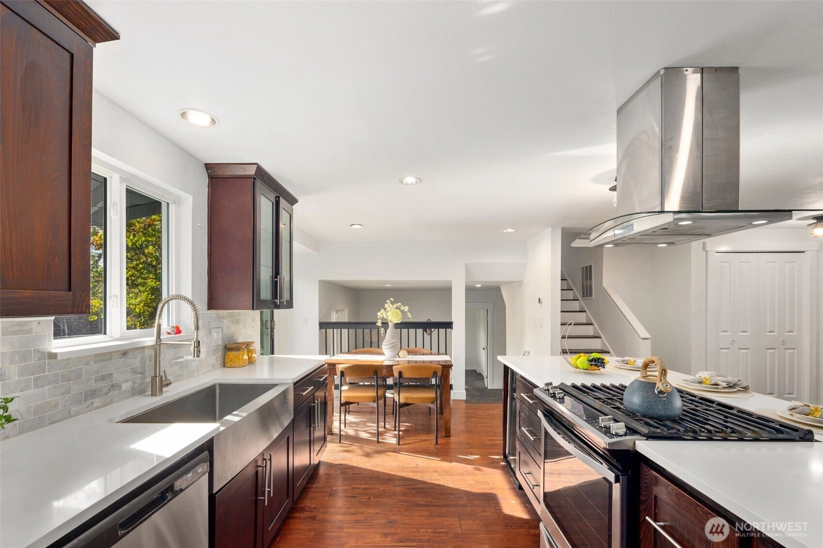 Beautifully updated home tucked in a quiet cul-de-sac in Renton Highlands! Fresh new paint, open layout with modern finishes, and a stylish kitchen with quartz counters and stainless appliances. Main-floor office can easily convert to a bedroom. Spacious living areas, remodeled baths. Prime location with ultimate privacy-backyard fully shielded by the community park—plus a hidden path right next door for easy access, perfect for play or pets. Convenient access to parks, shops, and I-405!