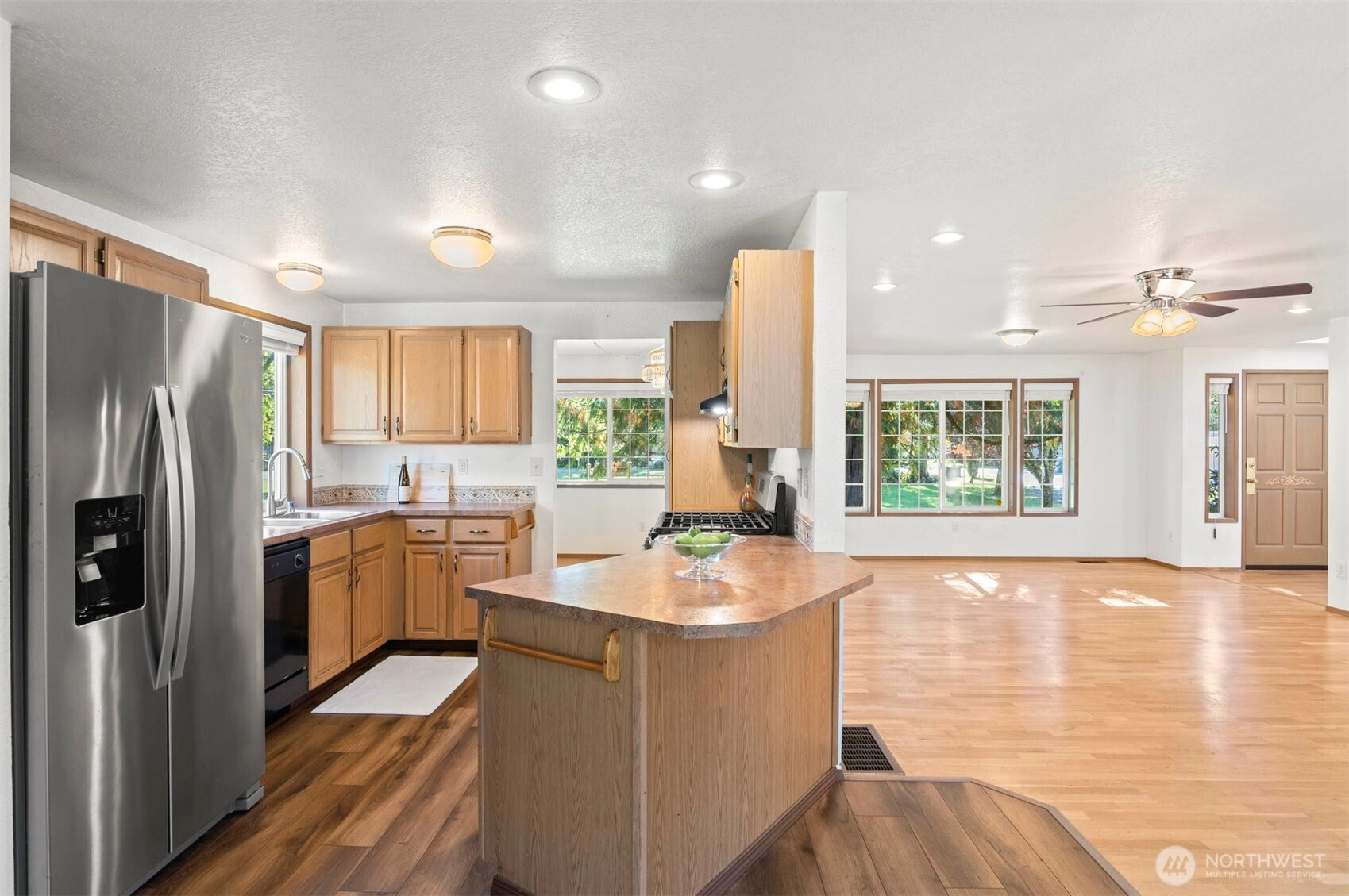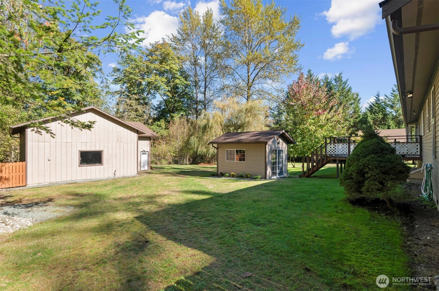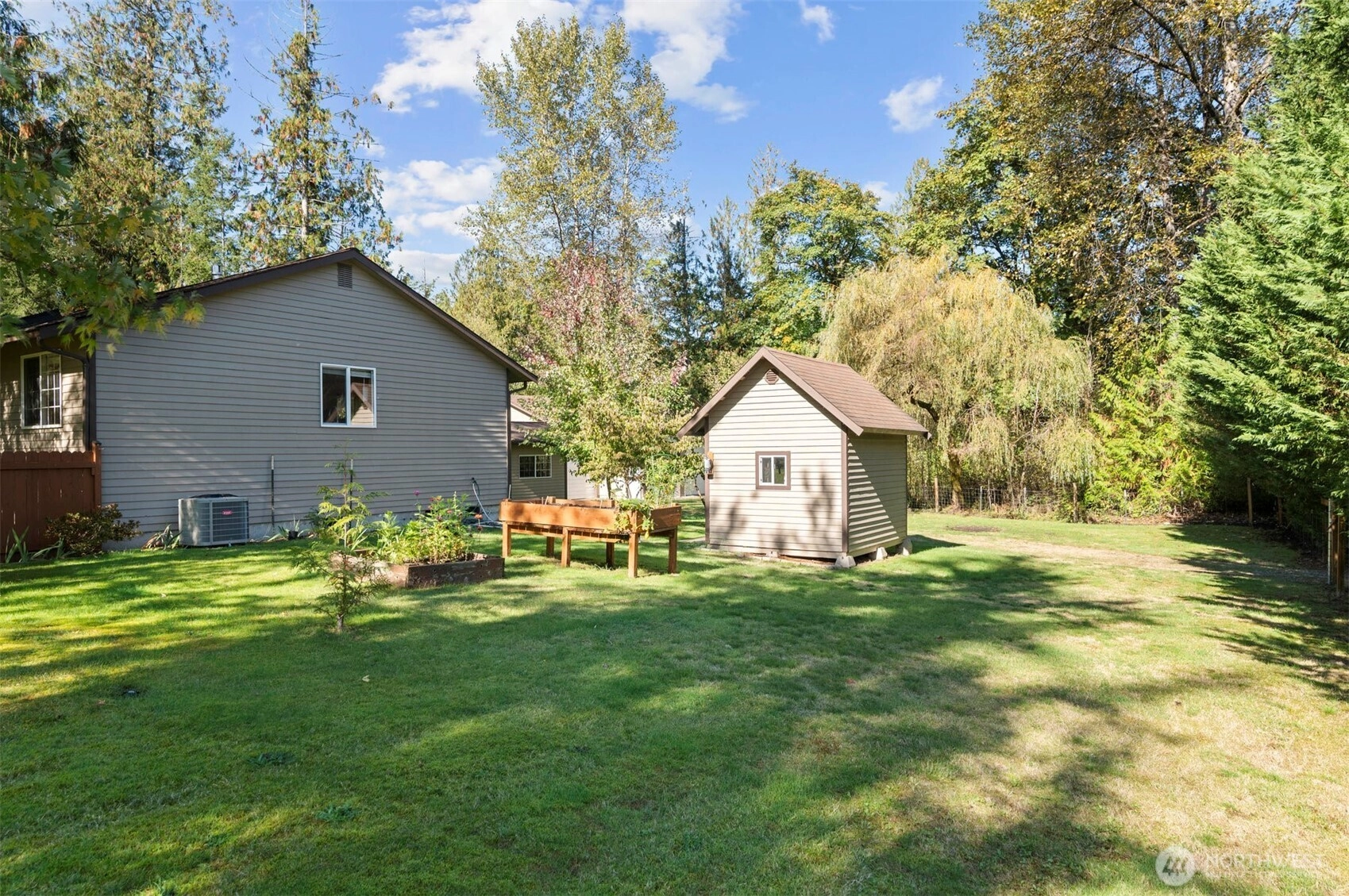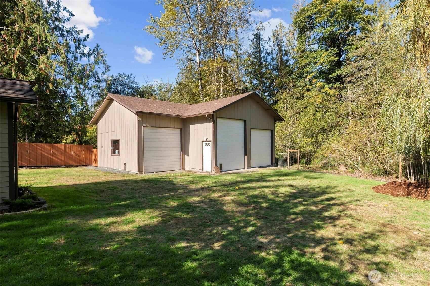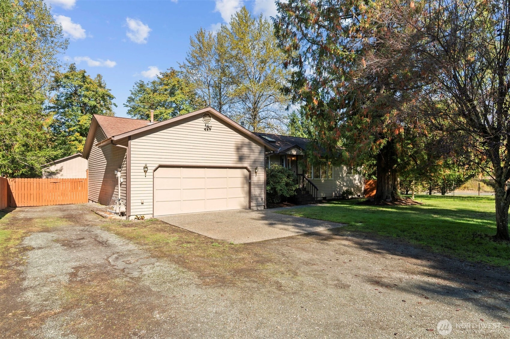 The gem you’ve been waiting for! This beautifully maintained 3-bed, 1.75-bath rambler sits on a private, level 1.10-acre lot, offering the perfect blend of comfort and functionality. Features include lifetime vinyl windows, central A/C, hardwood floors, whole-house generator and central vac system. Enjoy the outdoors year-round with a private gazebo ready for your hot tub, fully fenced, masterfully landscaped yard, sprinkler system, garden area, storage shed, and a new drain field. The true highlight is the impressive 1,000+ sq. ft. detached 3-bay shop—ideal for your RV, boat, or custom projects. This home truly checks all boxes! Located minutes from Hwy 2, this estate balances peaceful seclusion and accessibility. A must-see—Welcome home!
