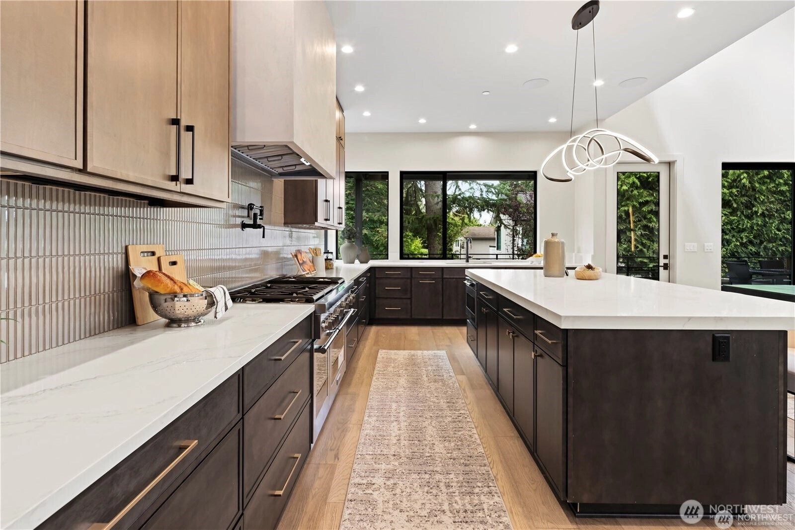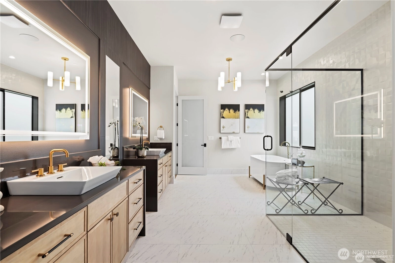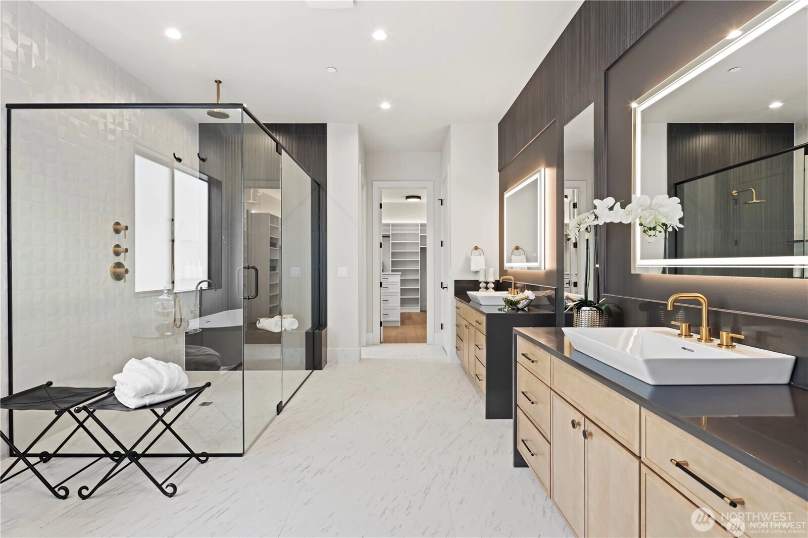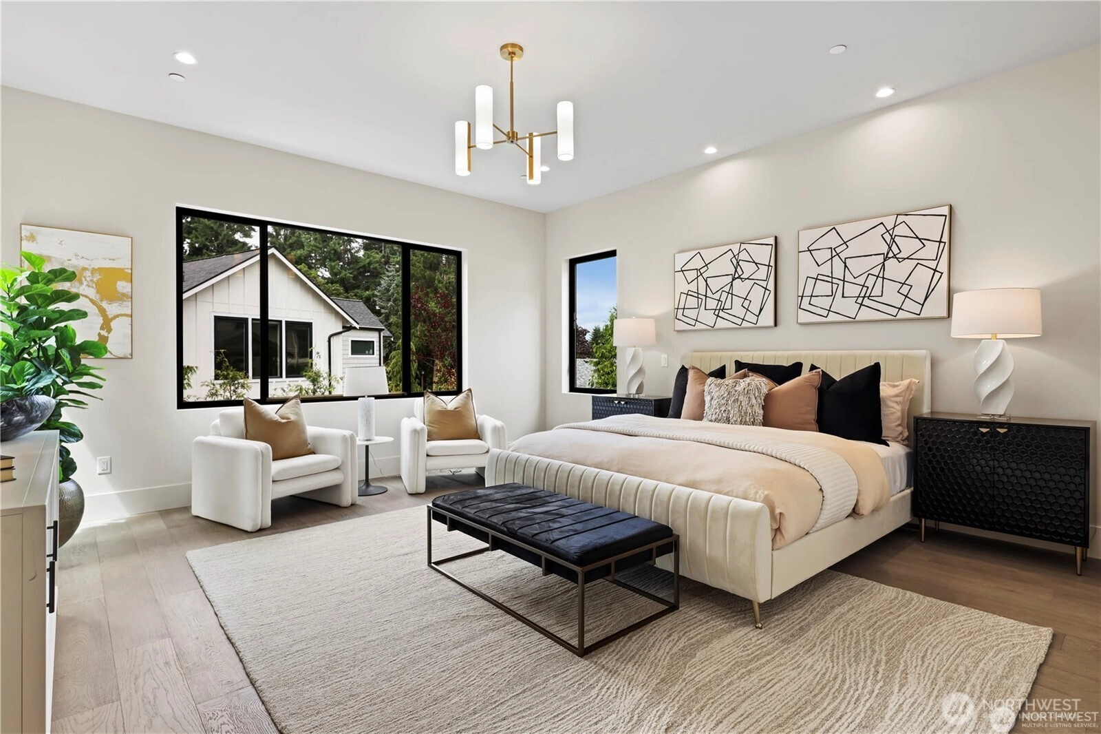 JUST COMPLETED NEW CONSTRUCTION! Grand Primary Suite on Main Floor w/Level Entry! New 5 BD/5 BA custom home by premier builder Serena Construction, sophisticated luxury in every detail. Coveted central Houghton location! Open concept blends Great Room w/85" fireplace, dining area w/entertainer’s buffet & gourmet kitchen w/high end appliances & walk-in pantry. 480 sqft outdoor covered deck w/heaters & speakers. Also on main, guest suite, office, laundry rm & mud rm. 3BD, 2BA on upper w/ bonus/media rm & 2nd laundry. Built-in gas-fueled generator, smart tech for lighting-heating-security, 2 gas furnaces & 2 heat pump/hot water heaters. Expansive 826 sqft 3-car garage & EV charging conduit. Solar panels & fully fenced back yard.