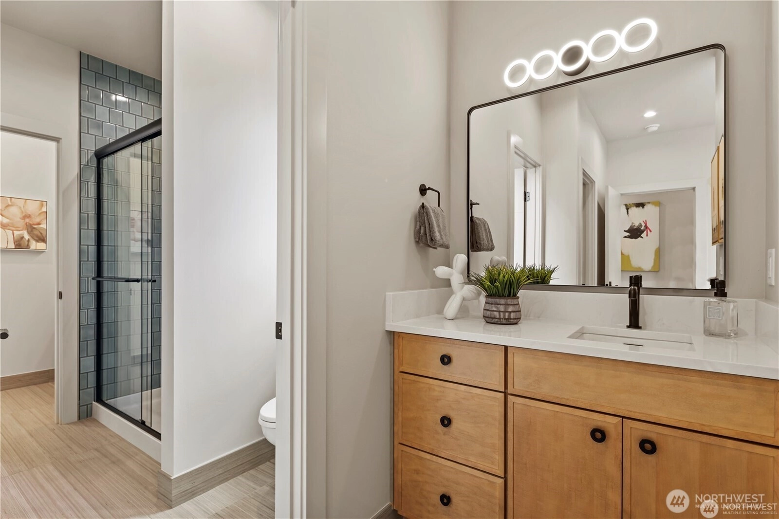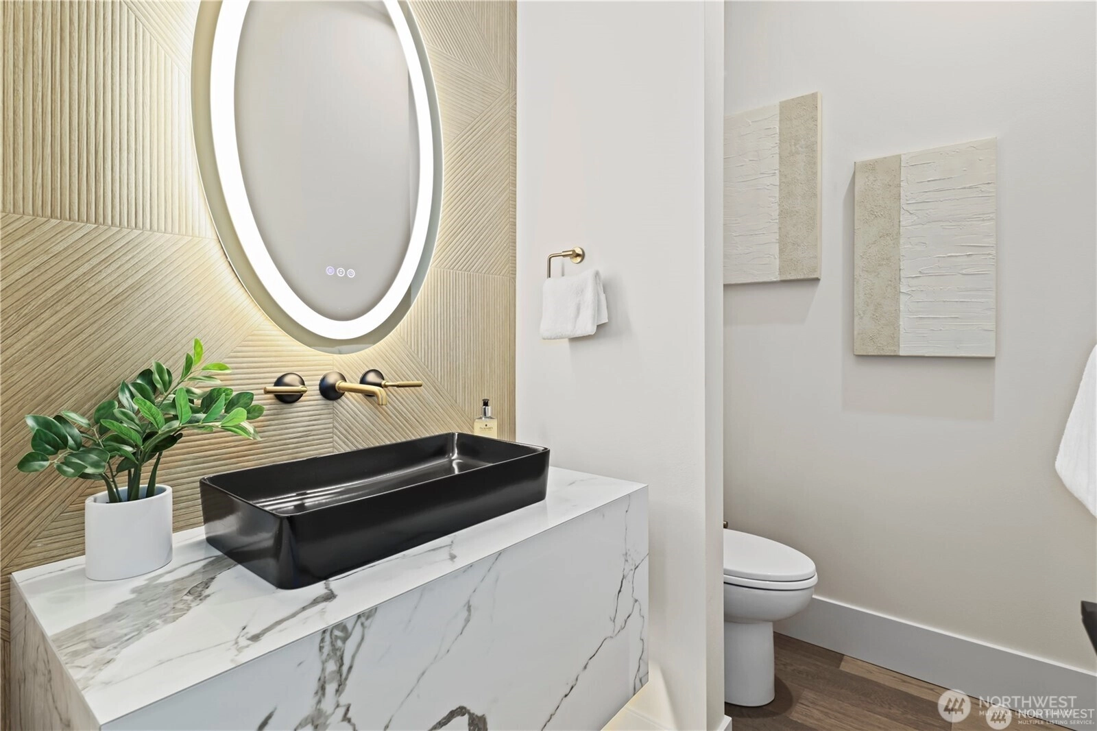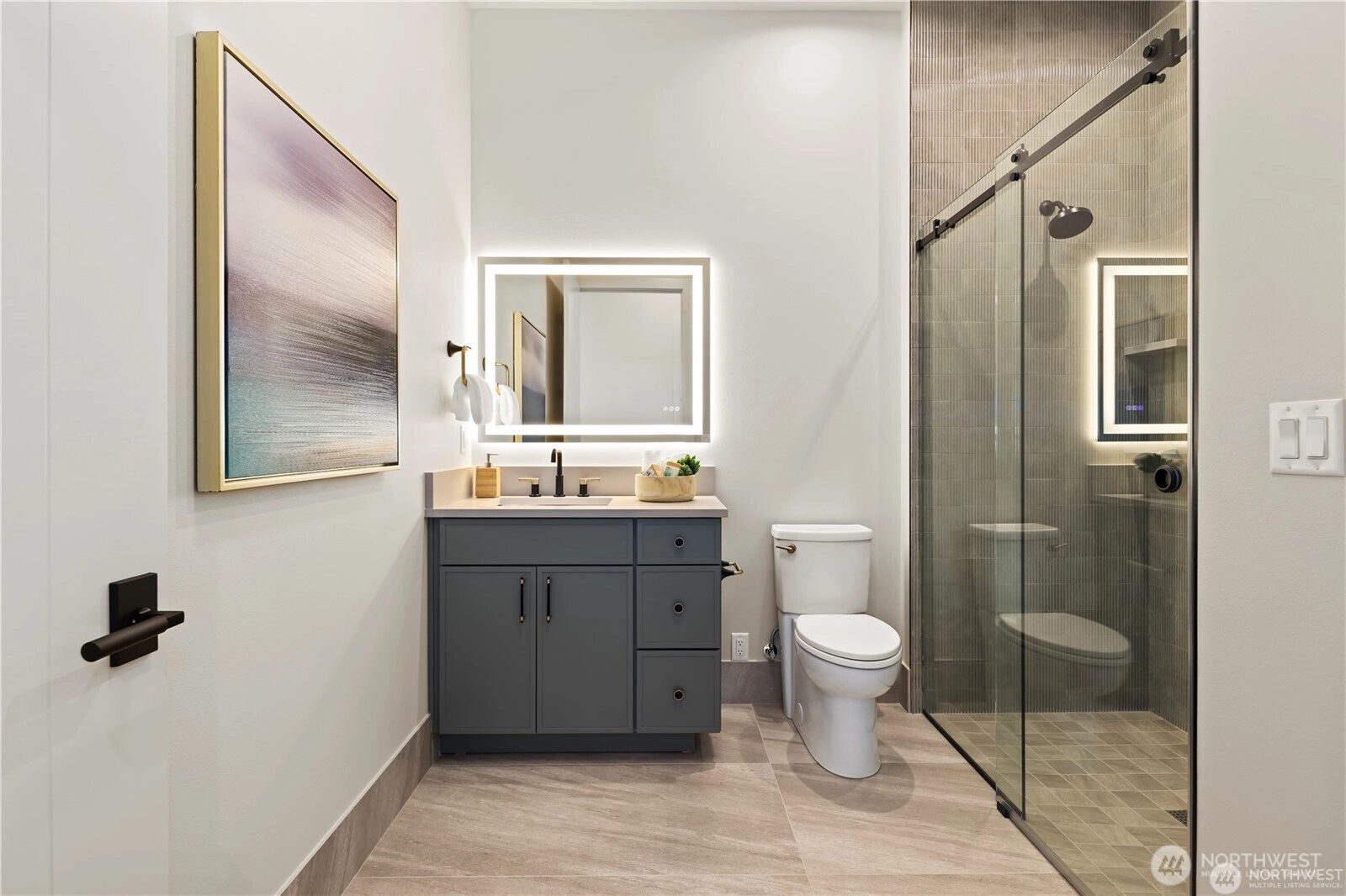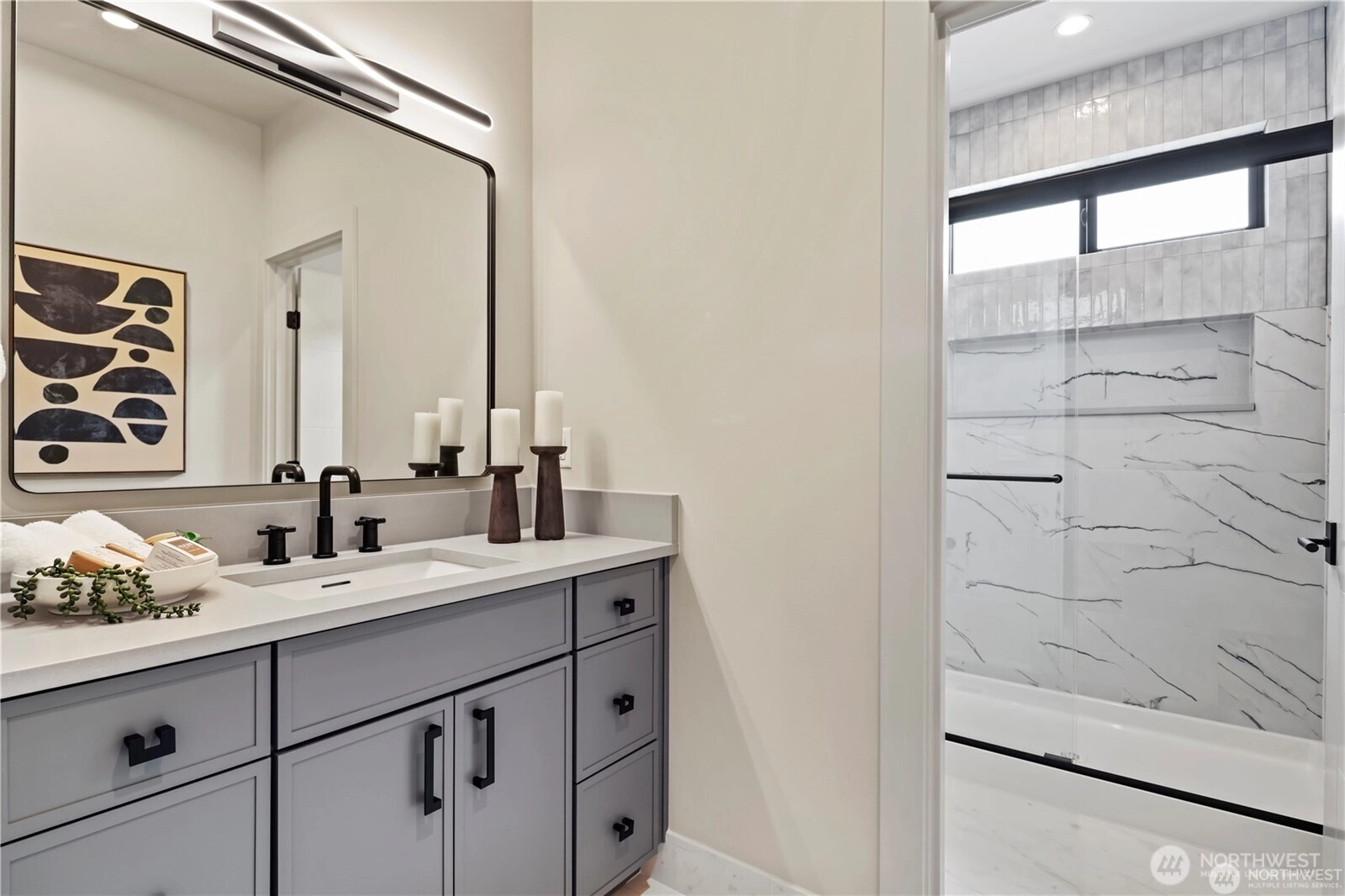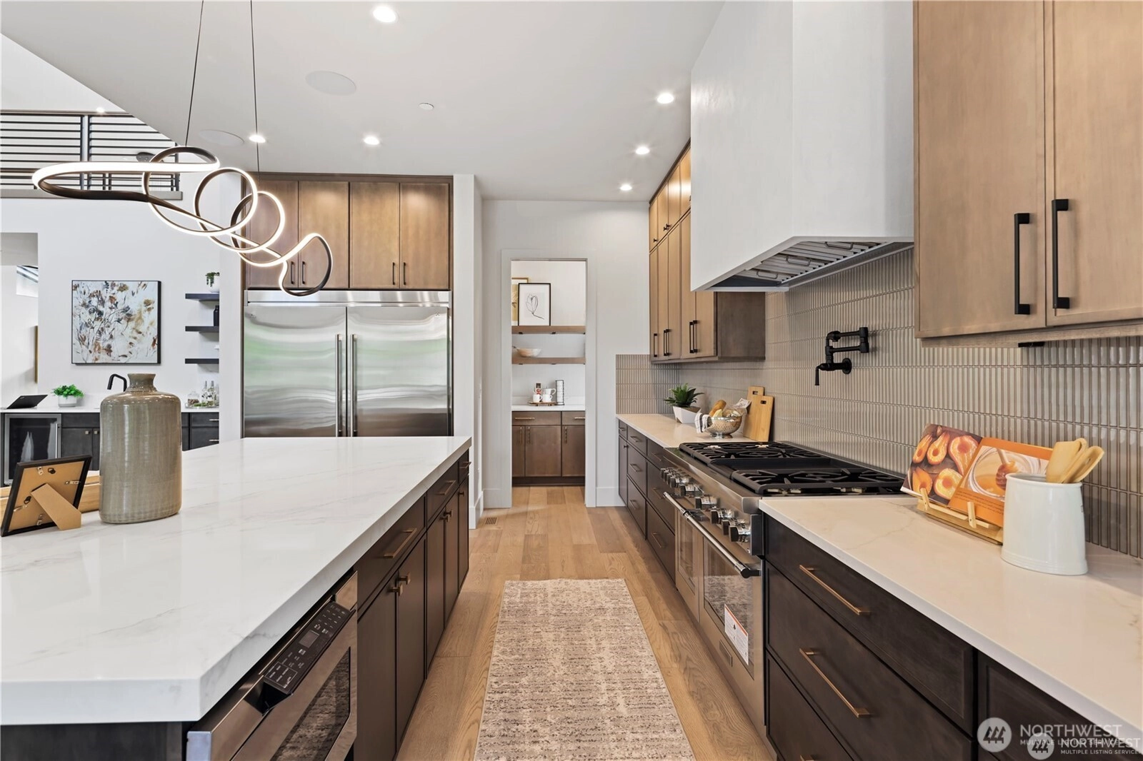 JUST COMPLETED NEW CONSTRUCTION! Grand Primary Suite on Main Floor w/Level Entry! New 5 BD/5 BA custom home by premier builder Serena Construction, sophisticated luxury in every detail. Coveted central Houghton location! Open concept blends Great Room w/85" fireplace, dining area w/entertainer’s buffet & gourmet kitchen w/high end appliances & walk-in pantry. 480 sqft outdoor covered deck w/heaters & speakers. Also on main, guest suite, office, laundry rm & mud rm. 3BD, 2BA on upper w/ bonus/media rm & 2nd laundry. Built-in gas-fueled generator, smart tech for lighting-heating-security, 2 gas furnaces & 2 heat pump/hot water heaters. Expansive 826 sqft 3-car garage & EV charging conduit. Solar panels & fully fenced back yard.