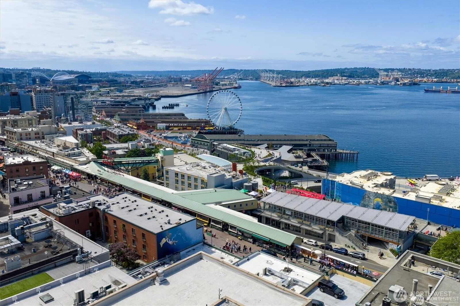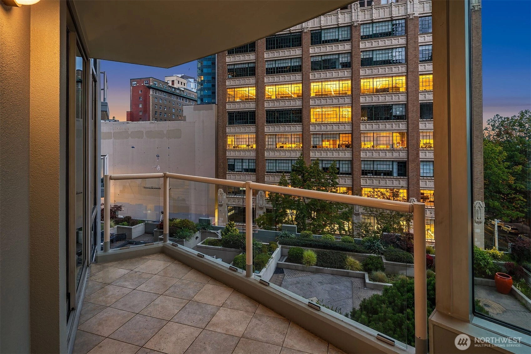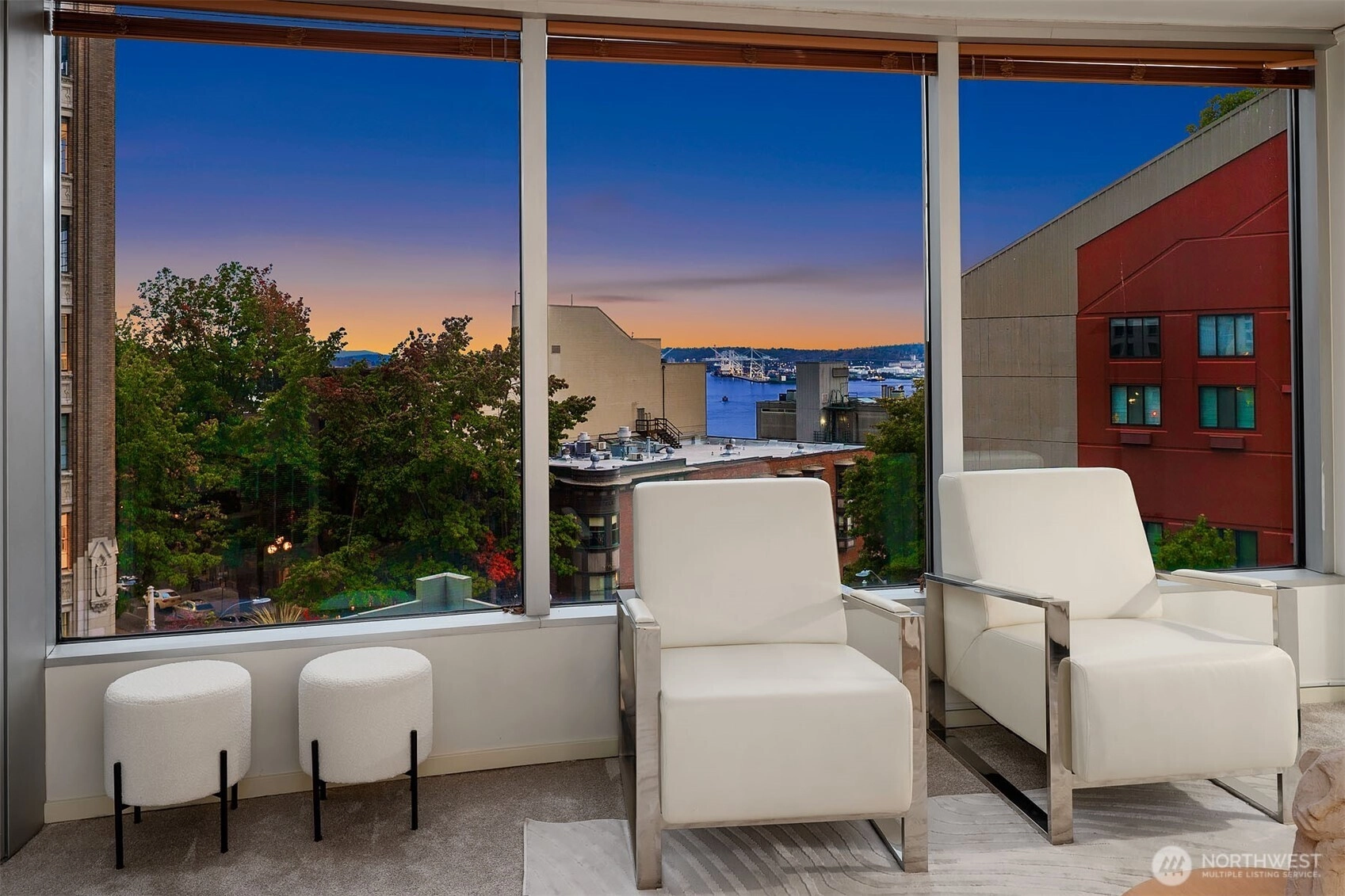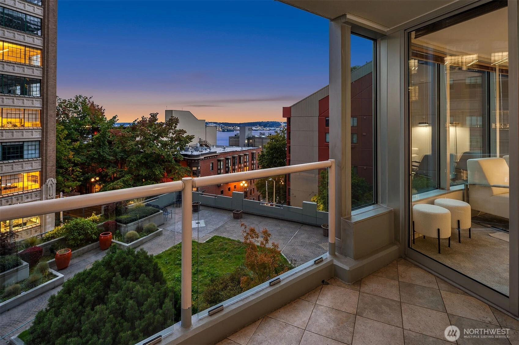 Best value available in Downtown Seattle! Spacious 1BR+DEN, which could double as a 2nd BR w/ its own bath. Steps to Pike Place & the revamped waterfront. This SW-facing home is drenched in natural light through oversized windows framing tranquil views of the garden terrace & protected views of Elliott Bay, visible from both main room & bedroom. Features incl. Central A/C, newly refinished patio, Sub-Zero fridge, granite kitchen counters/floors, fresh paint/carpet, limestone entry. Versatile den w/pocket doors doubles as guest room/flex space. Primary BR offers full en-suite bath + separate 3/4 bath for guests. Amenities: 24/7concierge, indoor pool/spa, gym, event room, view terrace. Garage parking. No rental cap & well-managed building!