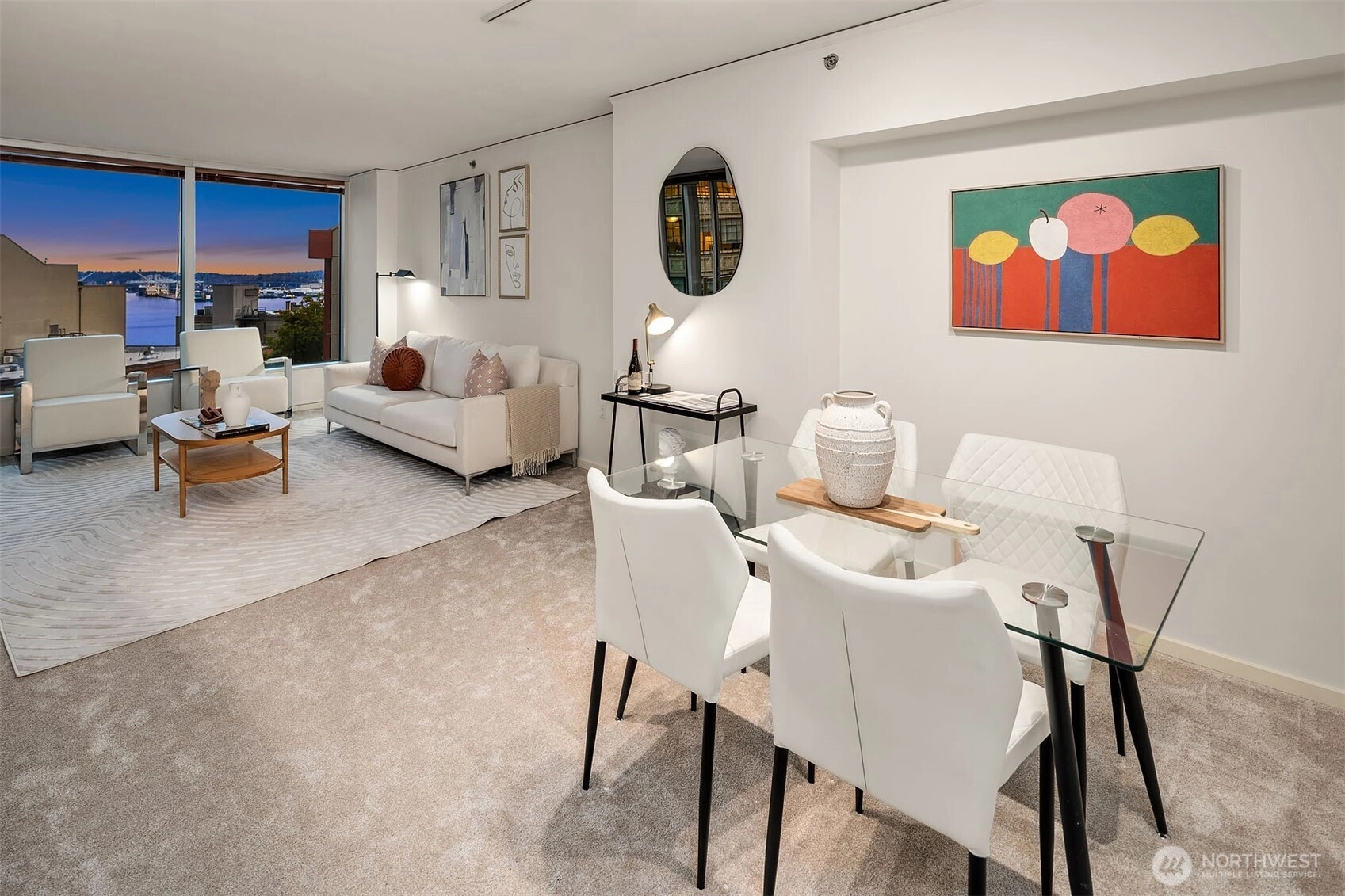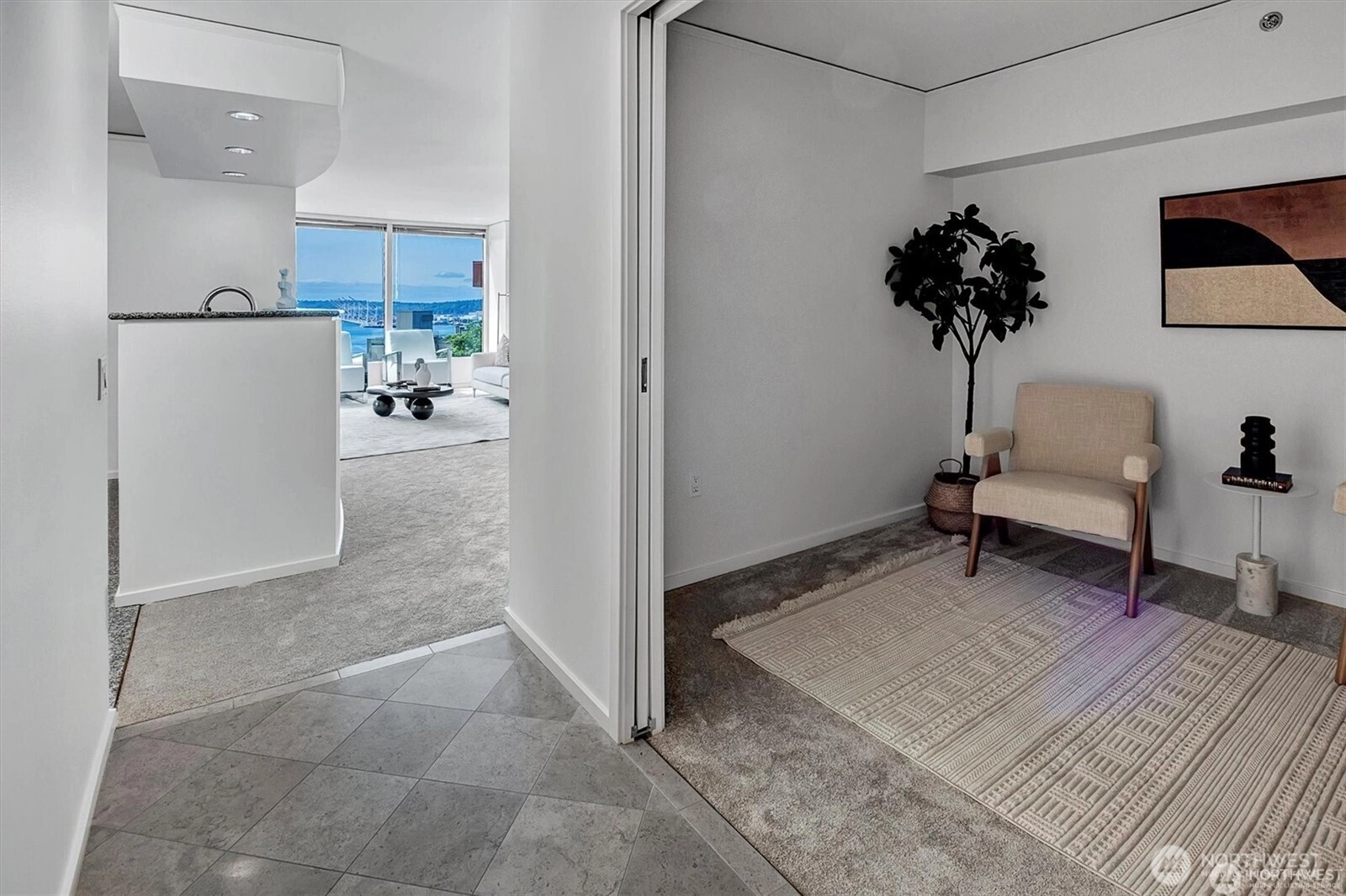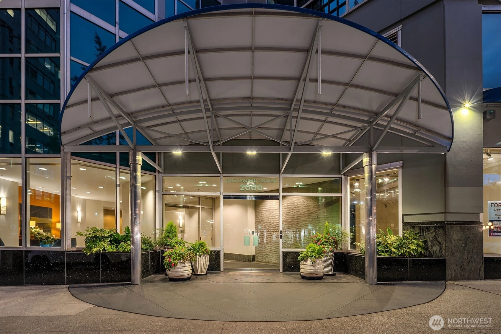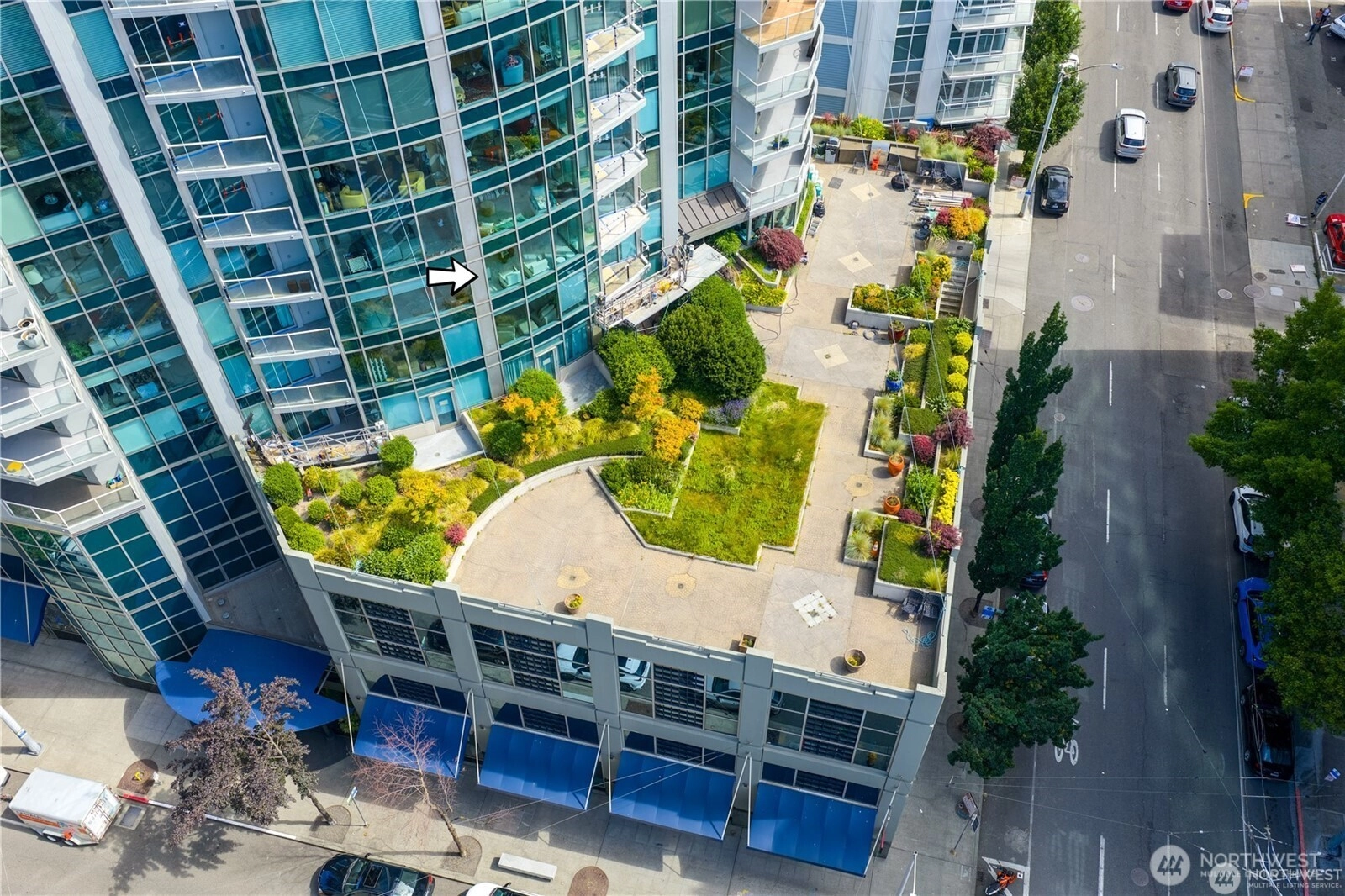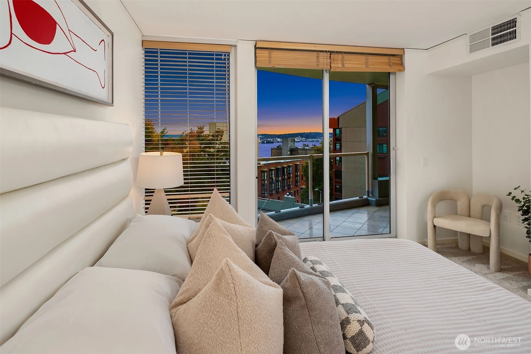 Best value available in Downtown Seattle! Spacious 1BR+DEN, which could double as a 2nd BR w/ its own bath. Steps to Pike Place & the revamped waterfront. This SW-facing home is drenched in natural light through oversized windows framing tranquil views of the garden terrace & protected views of Elliott Bay, visible from both main room & bedroom. Features incl. Central A/C, newly refinished patio, Sub-Zero fridge, granite kitchen counters/floors, fresh paint/carpet, limestone entry. Versatile den w/pocket doors doubles as guest room/flex space. Primary BR offers full en-suite bath + separate 3/4 bath for guests. Amenities: 24/7concierge, indoor pool/spa, gym, event room, view terrace. Garage parking. No rental cap & well-managed building!