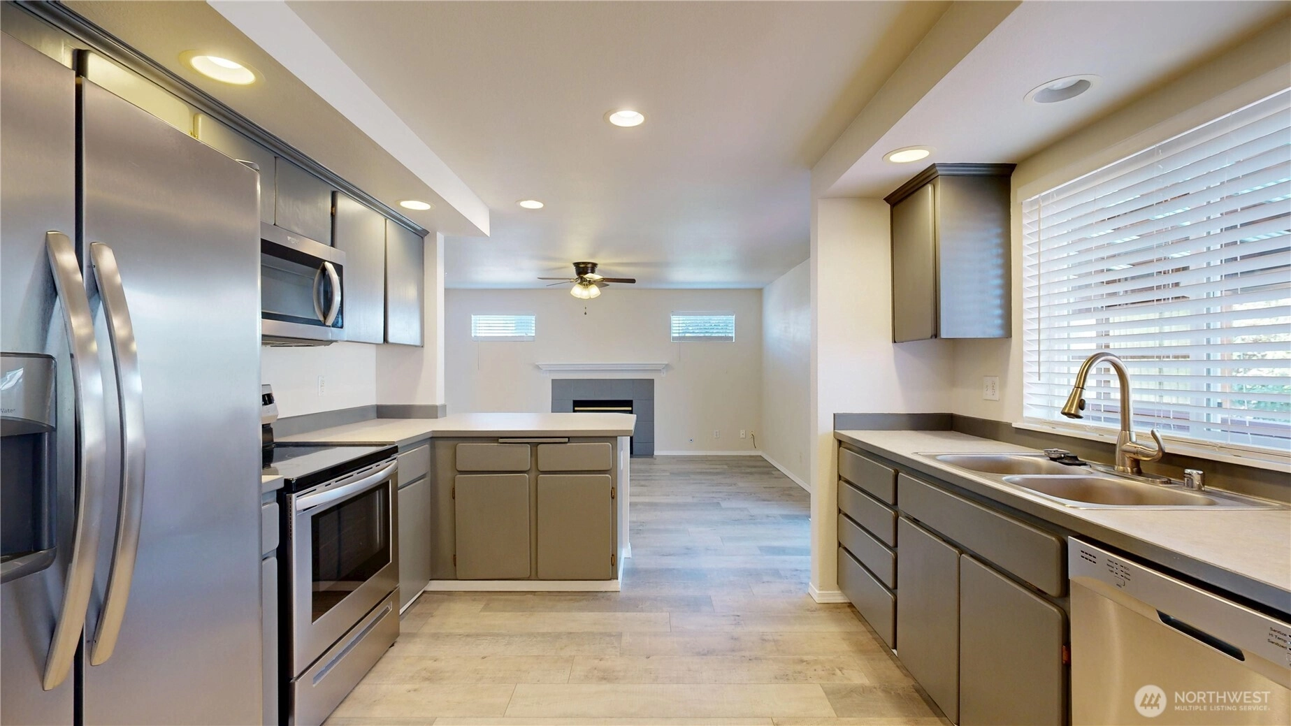 You are going to want to see this home before it is gone! 1,559 square feet spread over 3 bedrooms and 2.5 bathrooms. Living room, dining room, & additional recreational room with gas fireplace provide plenty of space to enjoy. Kitchen with stainless steel appliances, newly painted cabinets & plenty of counter space. This home was just updated with new laminate flooring throughout the entire downstairs, new wall to wall carpet throughout the bedrooms & upstairs spaces, new interior paint including trim, & new exterior trim paint. Fully fenced backyard featuring a large deck, which has been updated & newly painted for entertaining. Close to amenities & within minutes of I-5. Get your showing scheduled today!