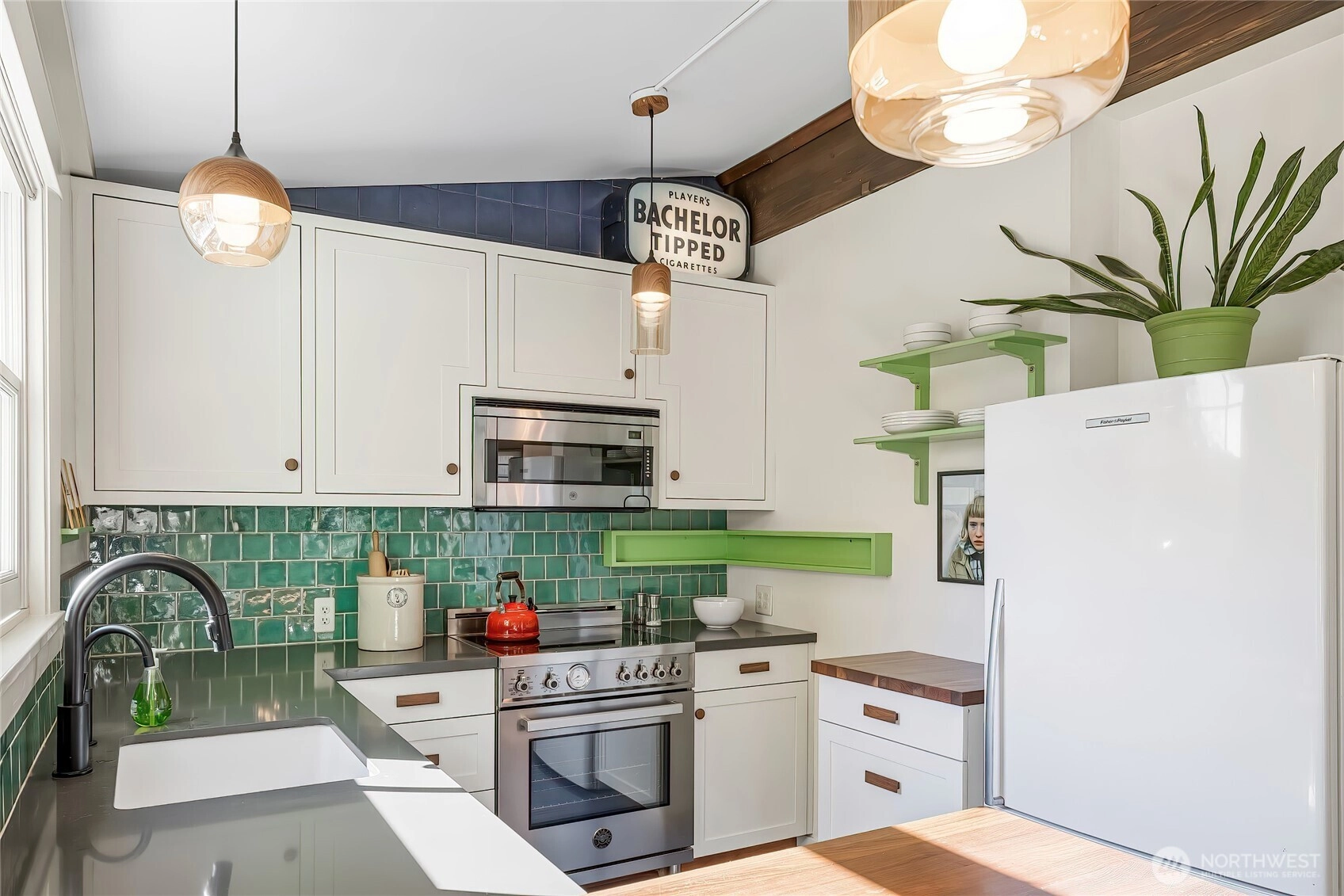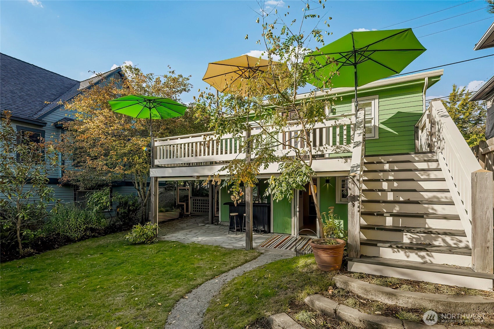 Soaring ceilings, deliberate finishes, & inspired craftsmanship define this Central Area home. The grand living area, anchored by a handsome built-in bookshelf w/ ladder, flows to a generous south-facing deck. The kitchen is a study in elegance & function, featuring induction cooking, custom cabinetry, & thoughtful detailing. A permitted lower-level ADU offers heated concrete floors, unique finishes & flexible living. The detached studio is open to endless possibilities. All systems updated, including electric, plumbing, heat, windows & more. Curated gardens create a rare in-city sanctuary, with a surprise waiting around every turn. Pre-inspected! This home blends thoughtful design with everyday ease just moments from downtown & light rail.